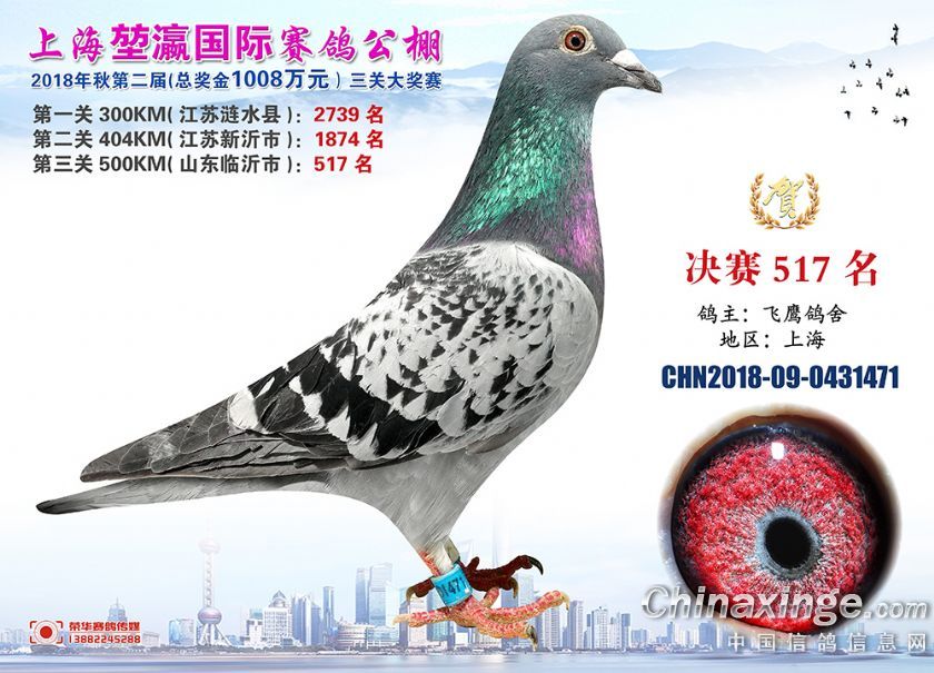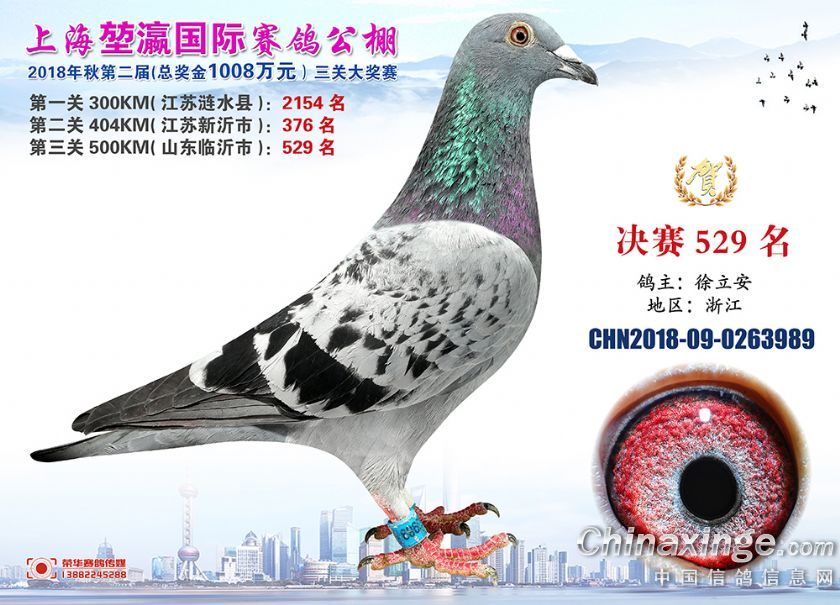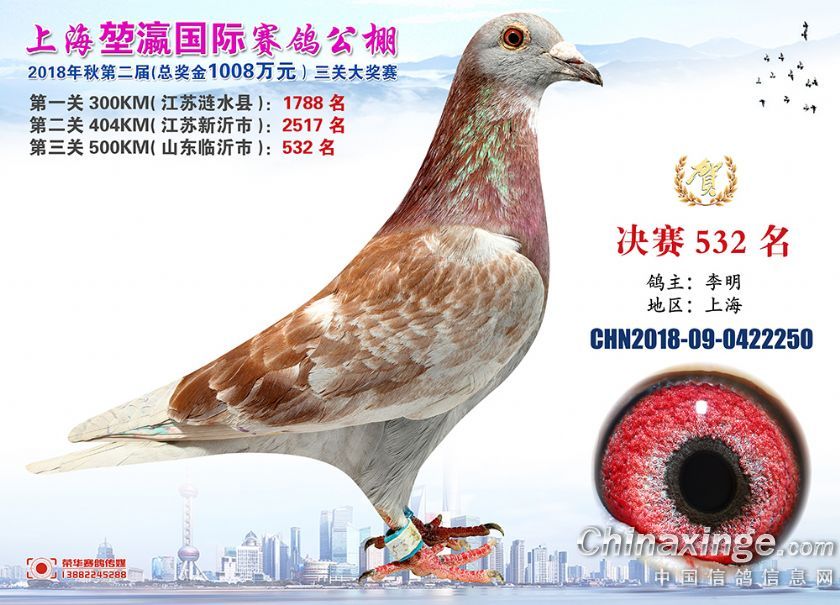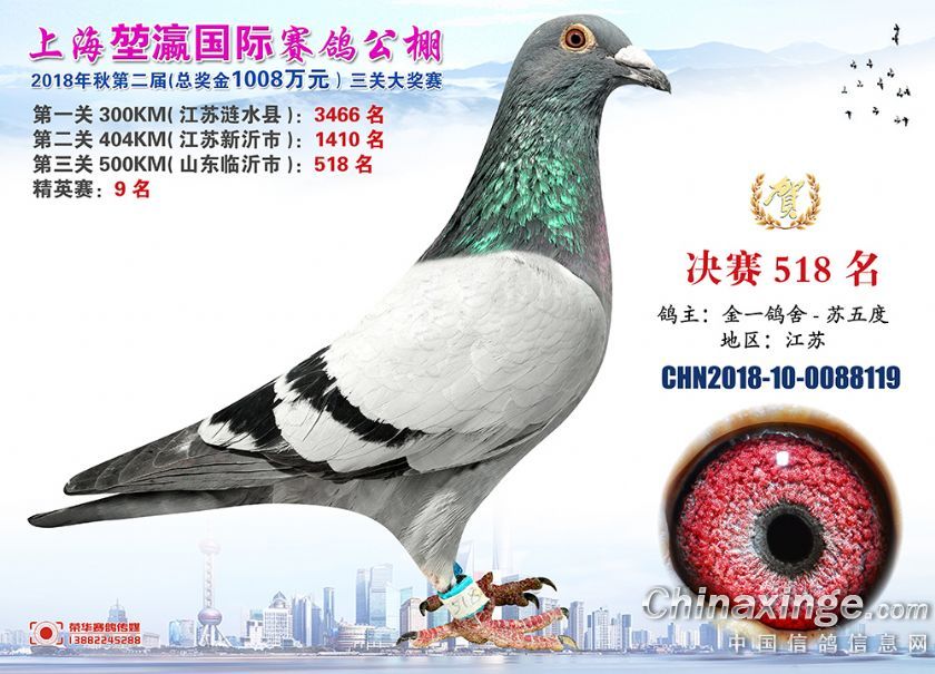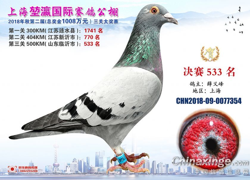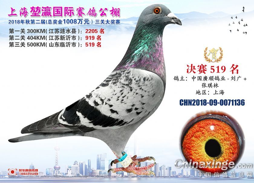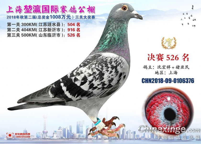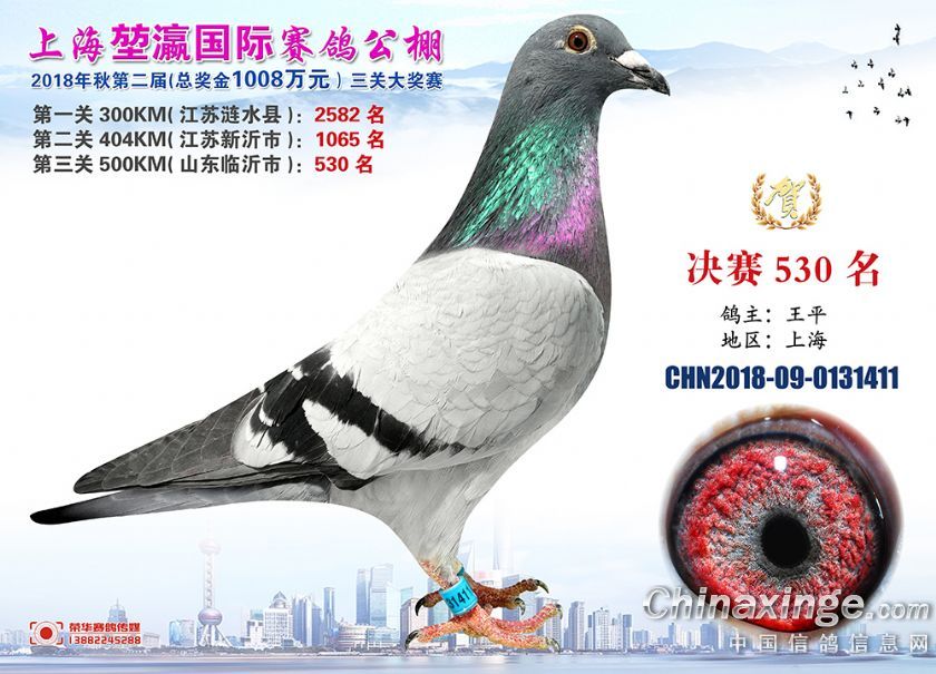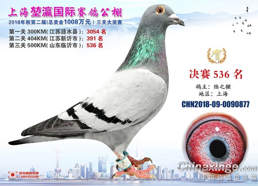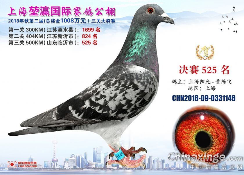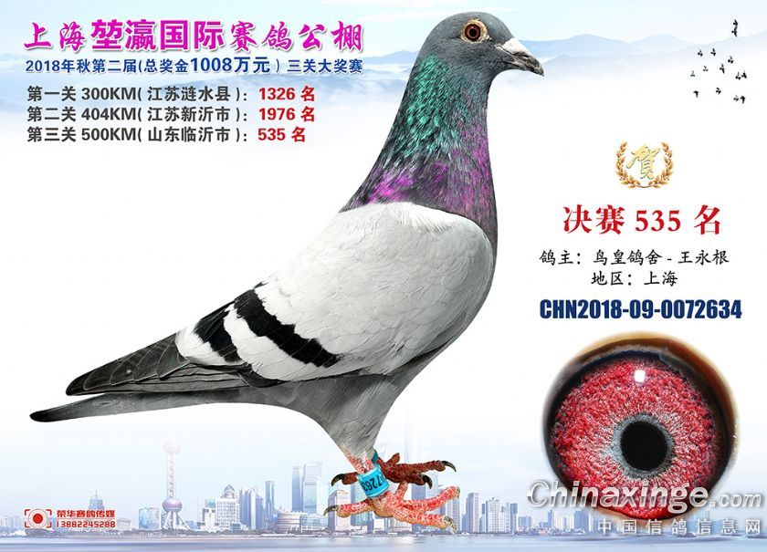 2018年上海堃瀛国际赛鸽俱乐部公棚获奖鸽照片511--540名