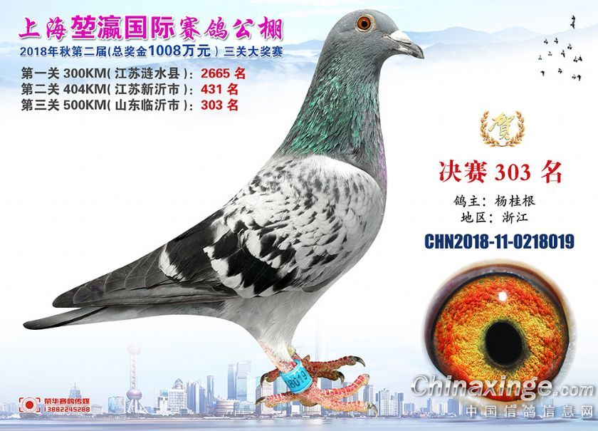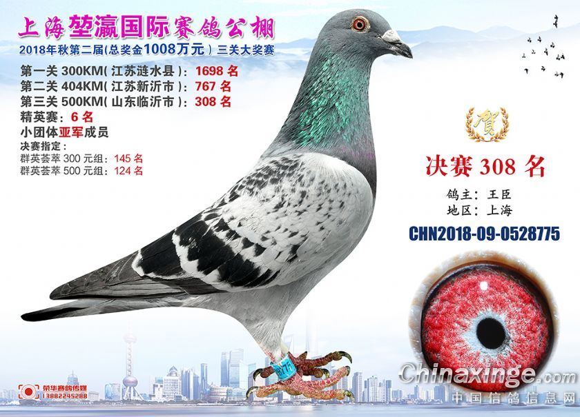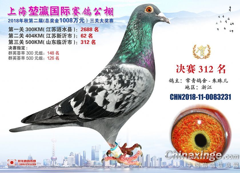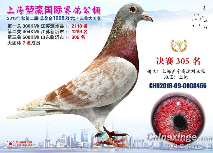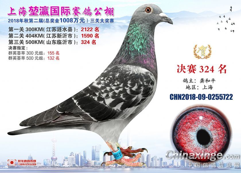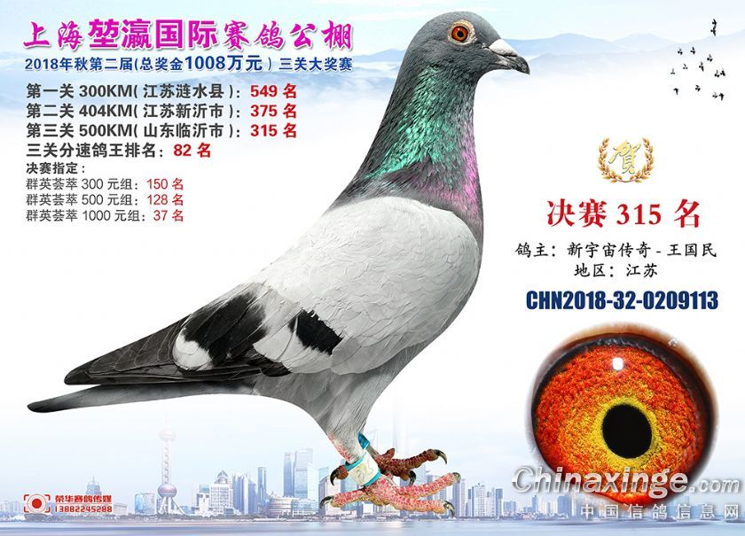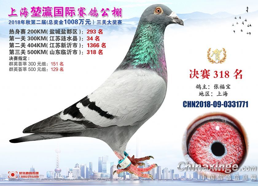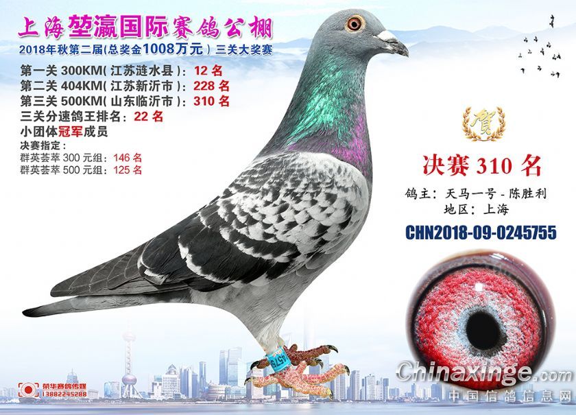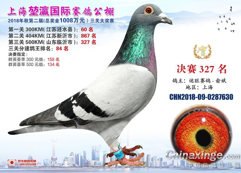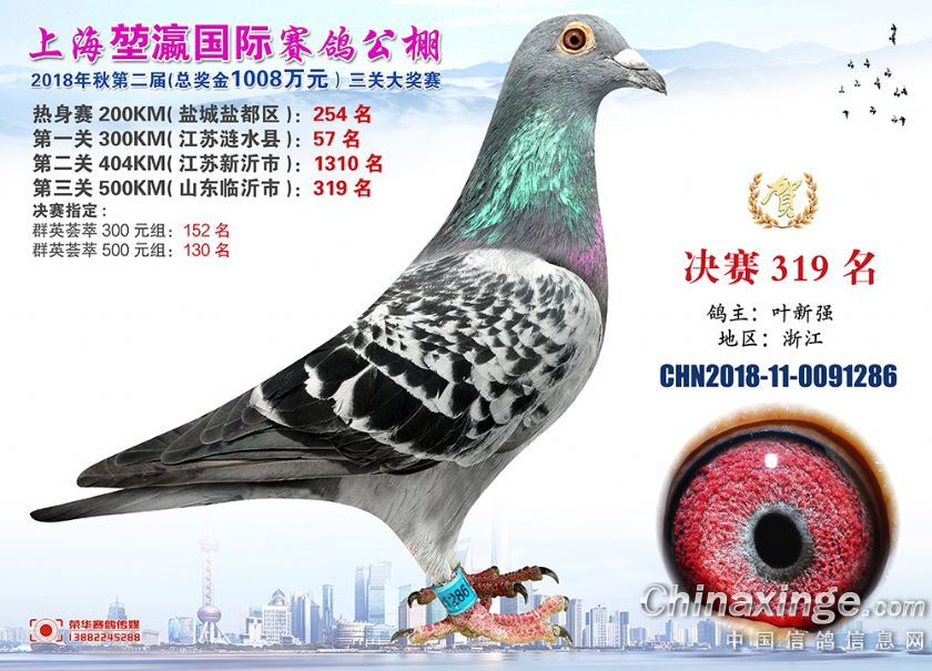 2018年上海堃瀛国际赛鸽俱乐部公棚获奖鸽照片301-330名