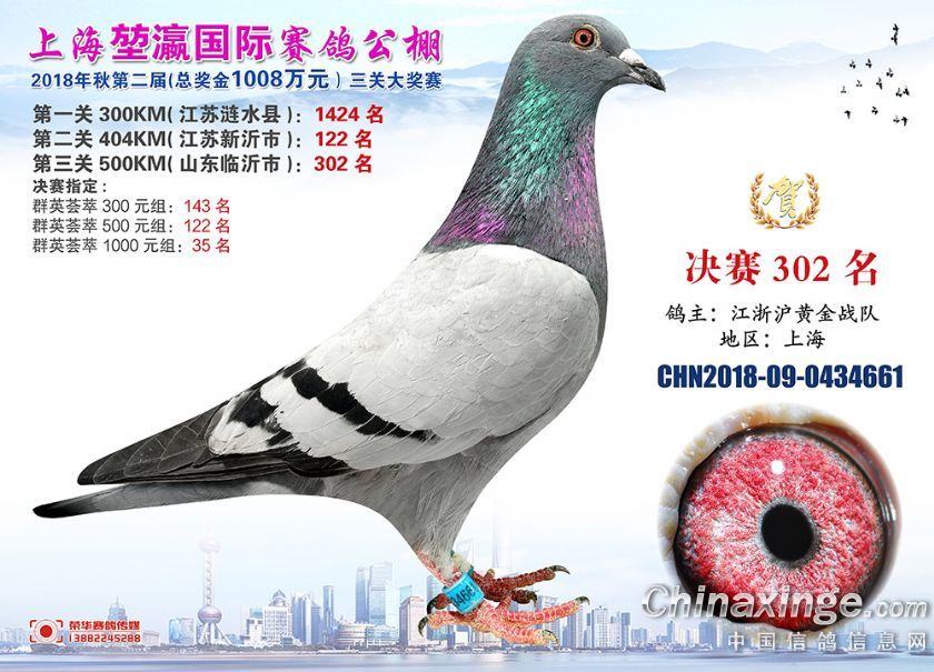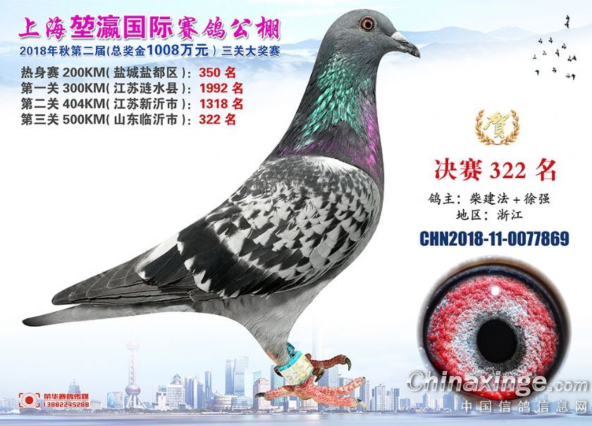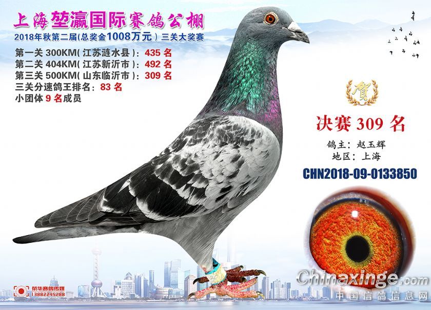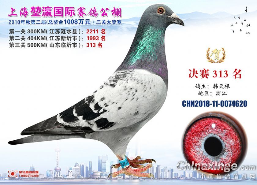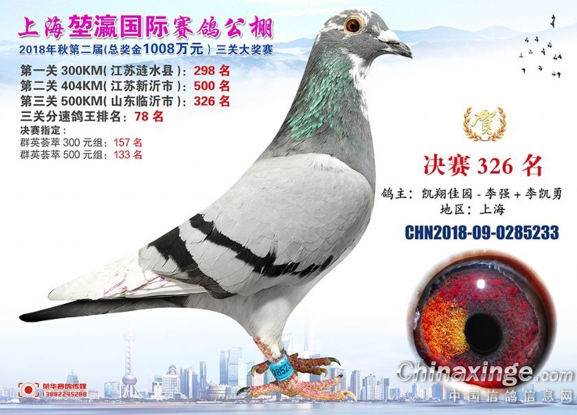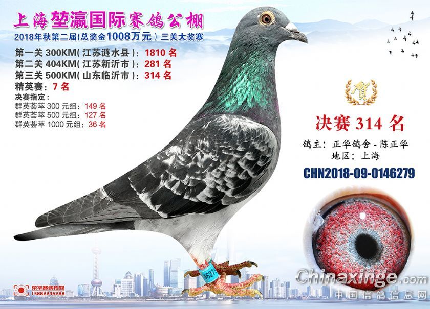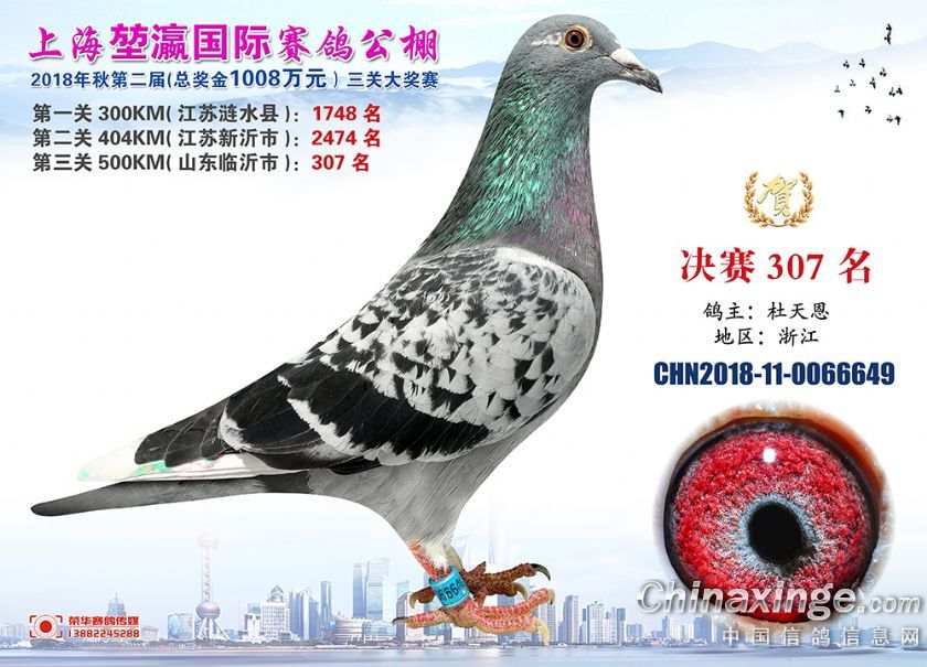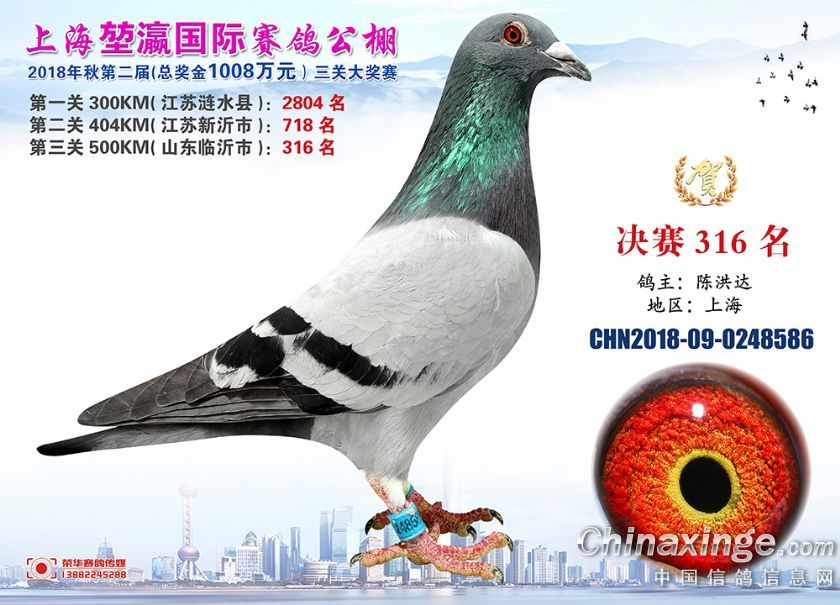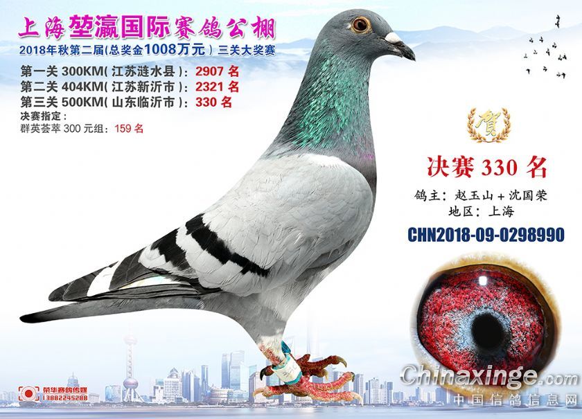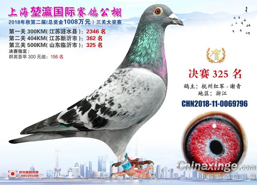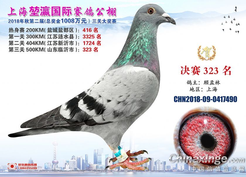 2018年上海堃瀛国际赛鸽俱乐部公棚获奖鸽照片301-330名