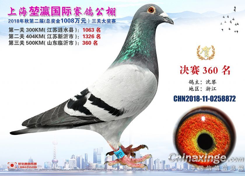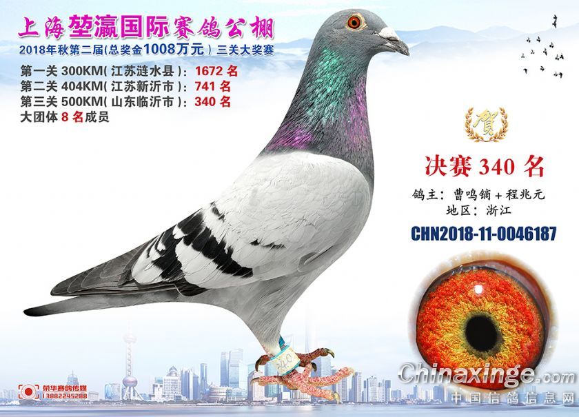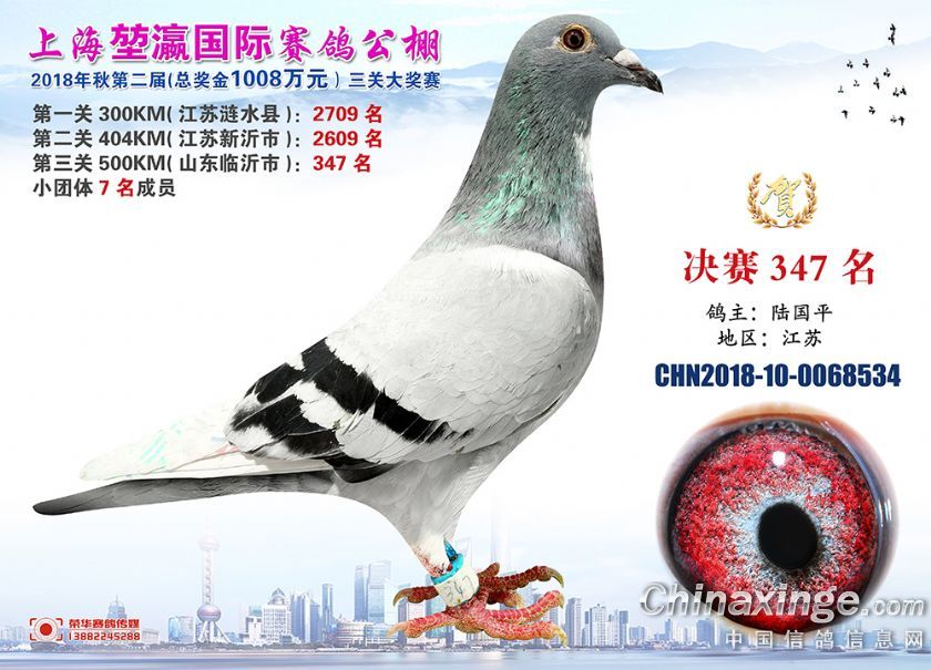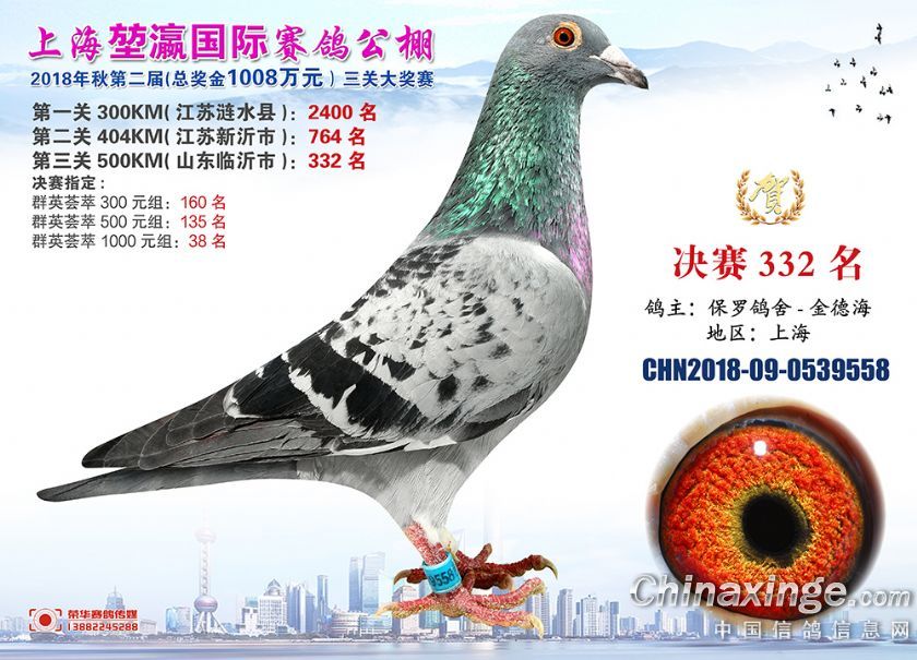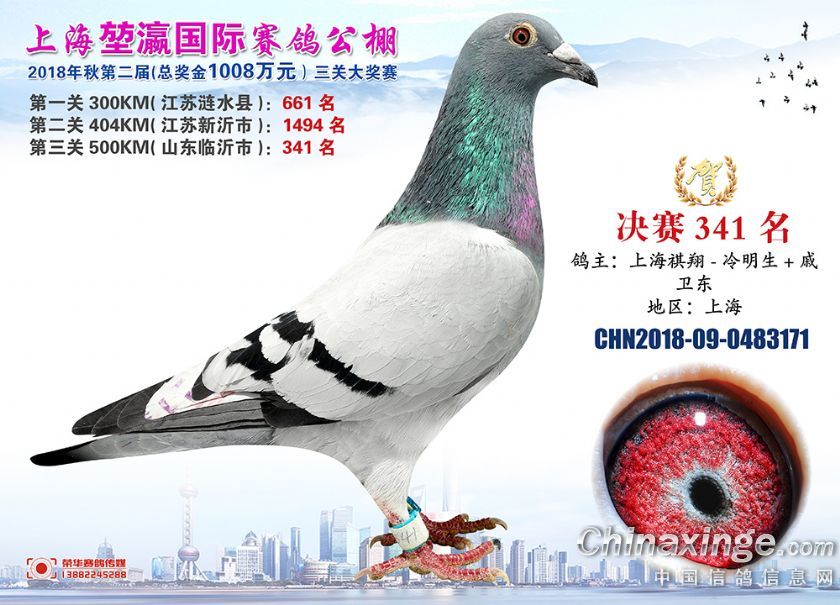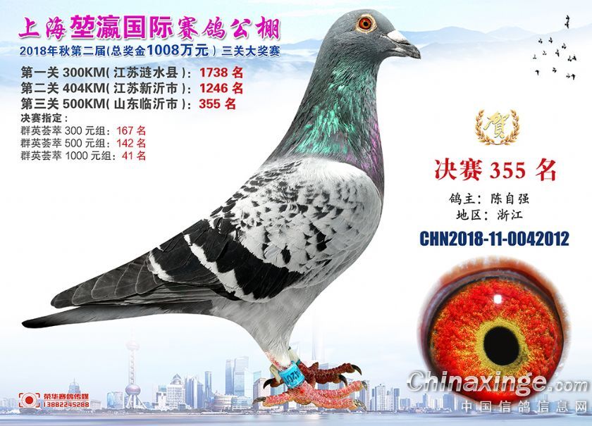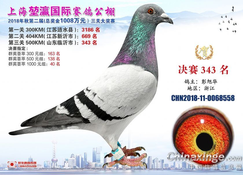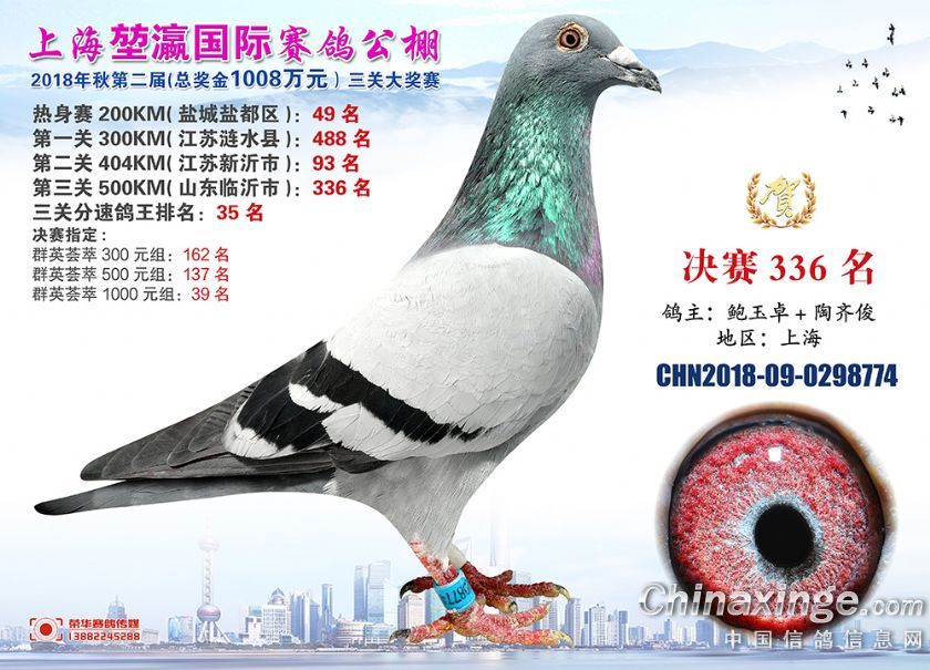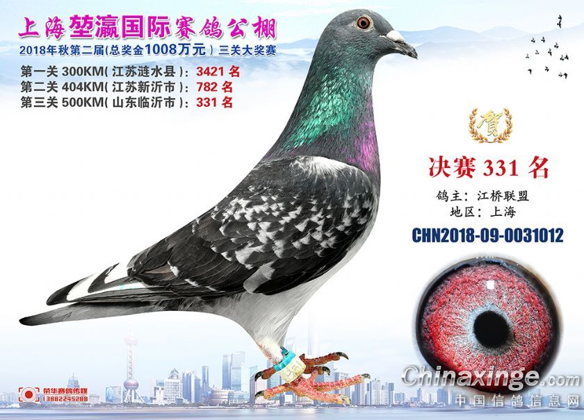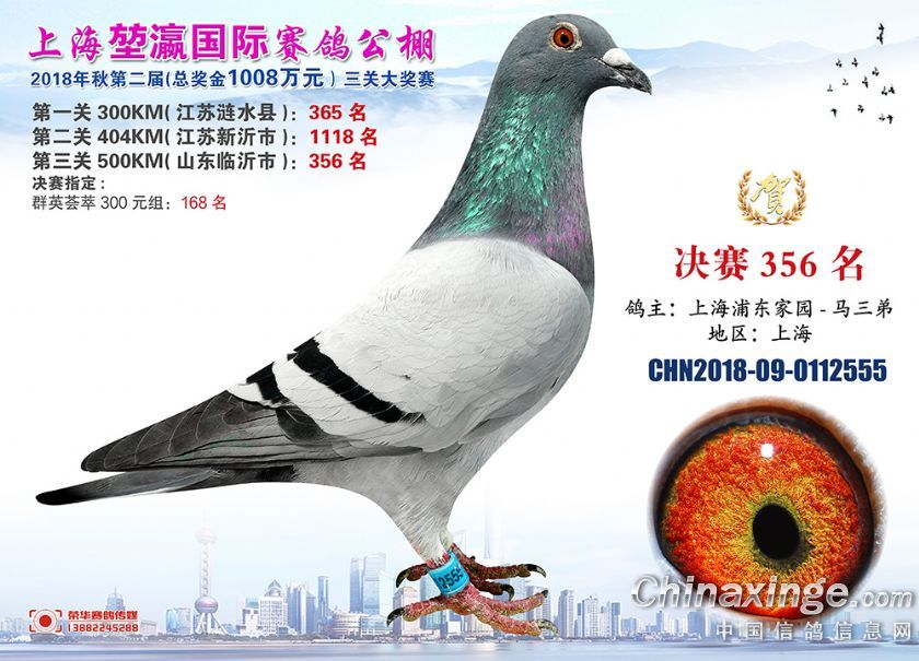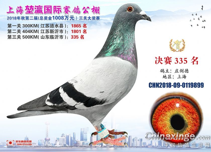 2018年上海堃瀛国际赛鸽俱乐部公棚获奖鸽照片331-360名