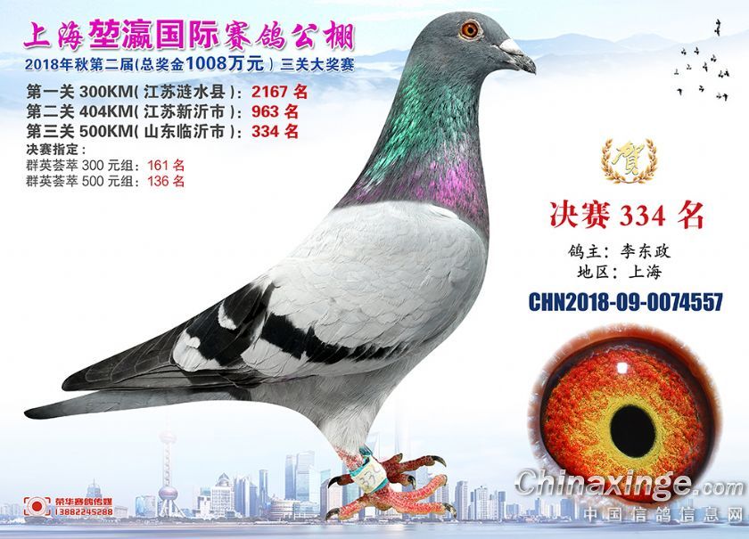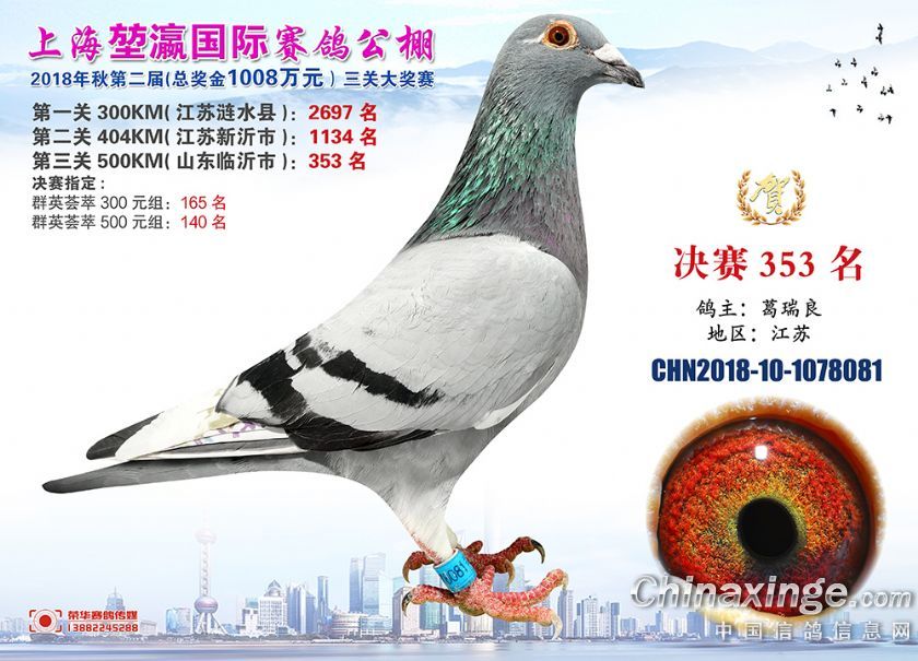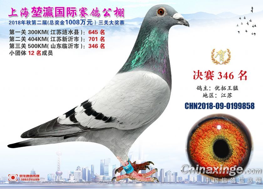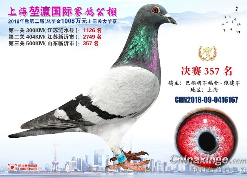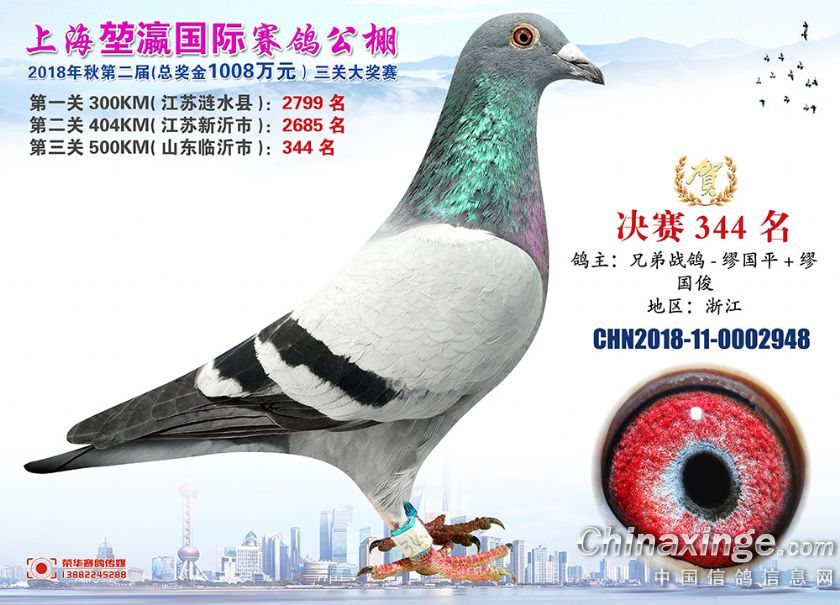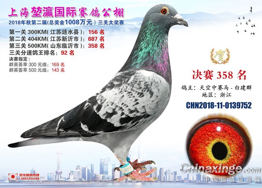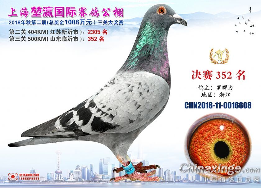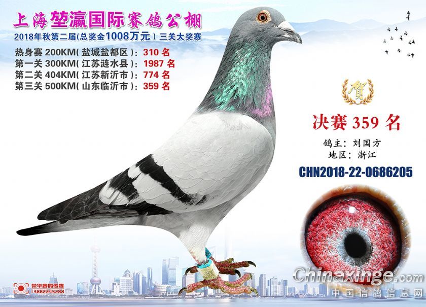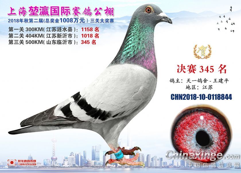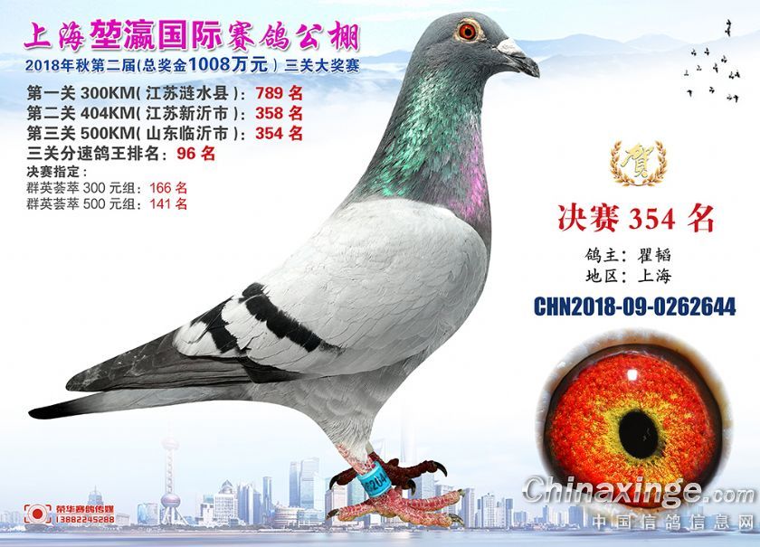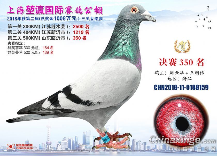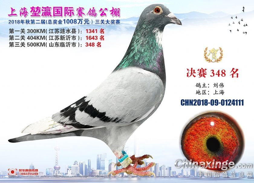 2018年上海堃瀛国际赛鸽俱乐部公棚获奖鸽照片331-360名