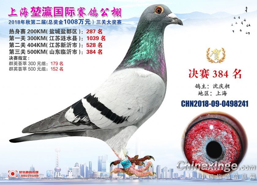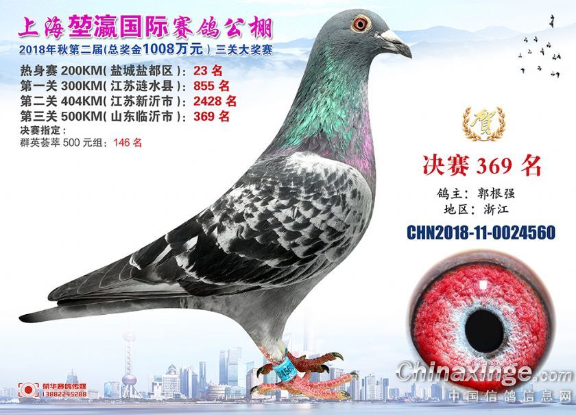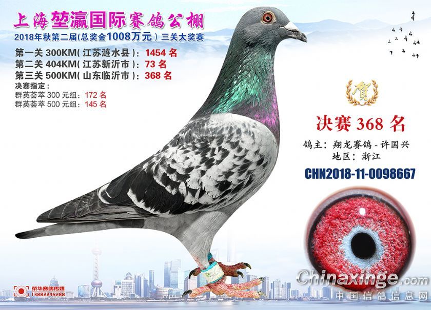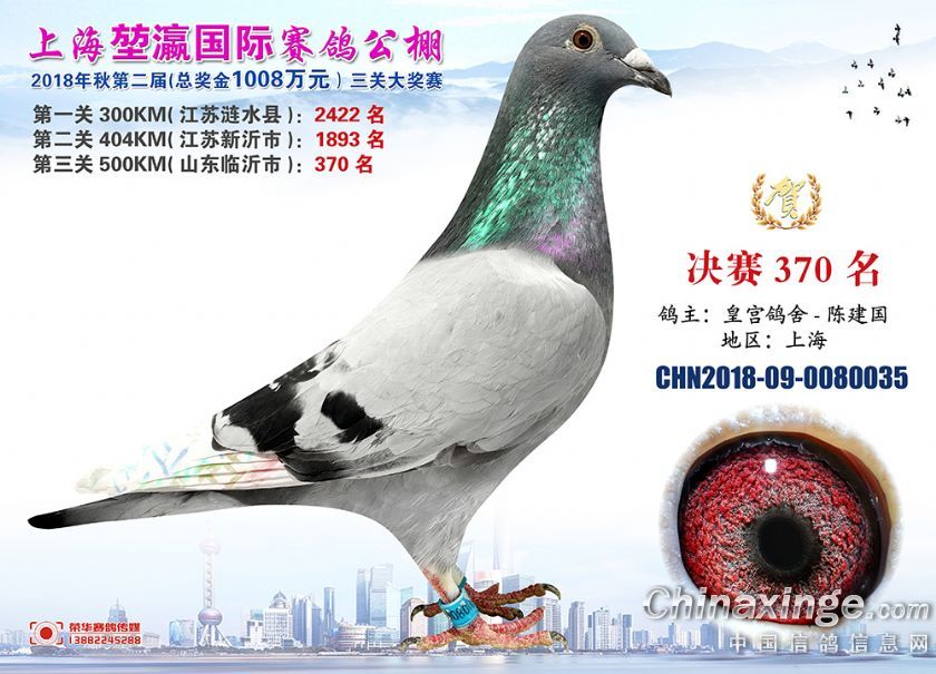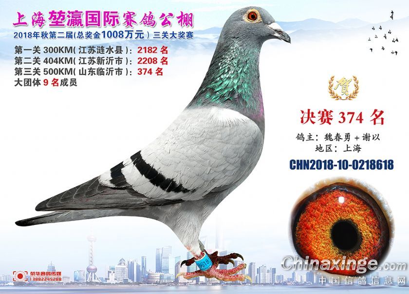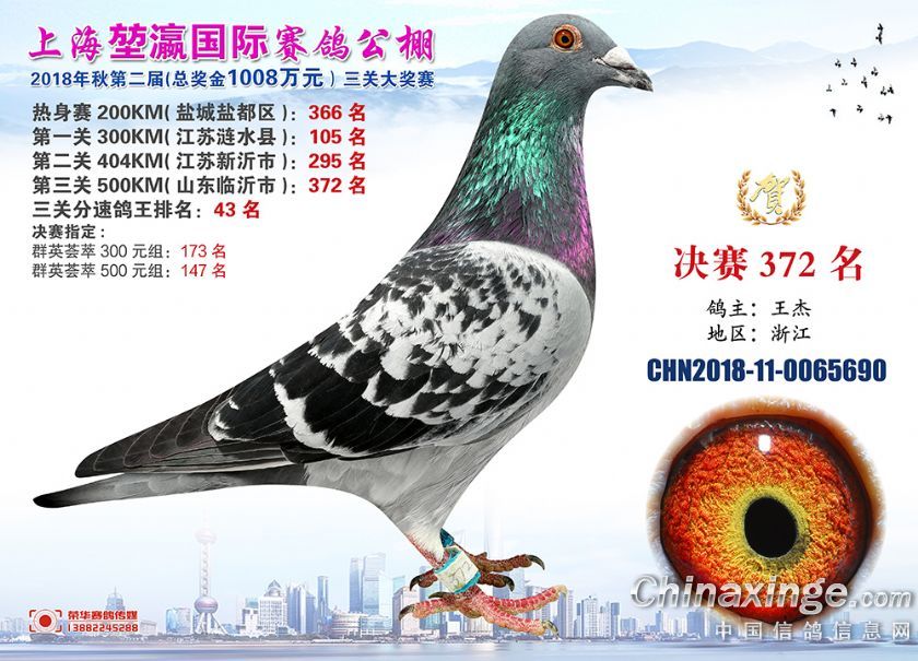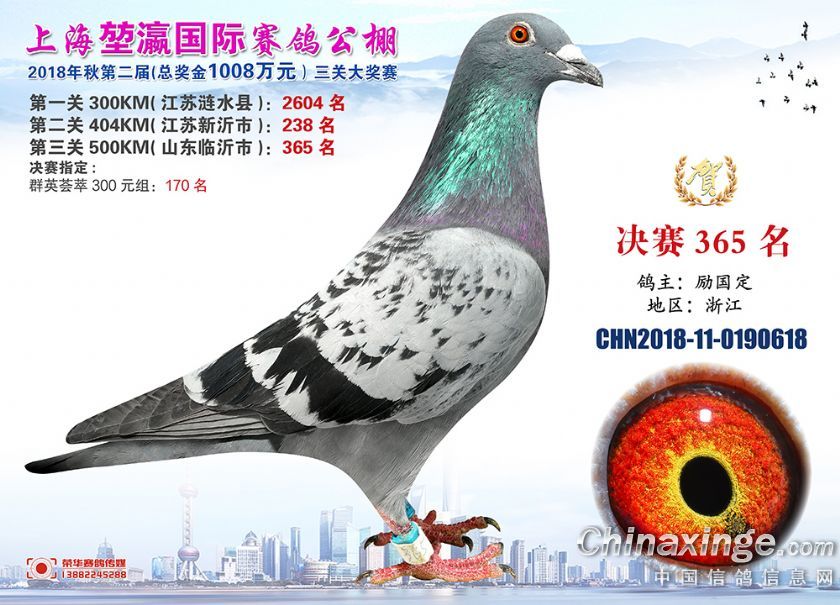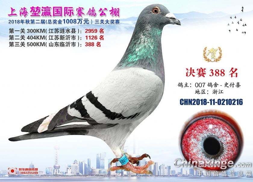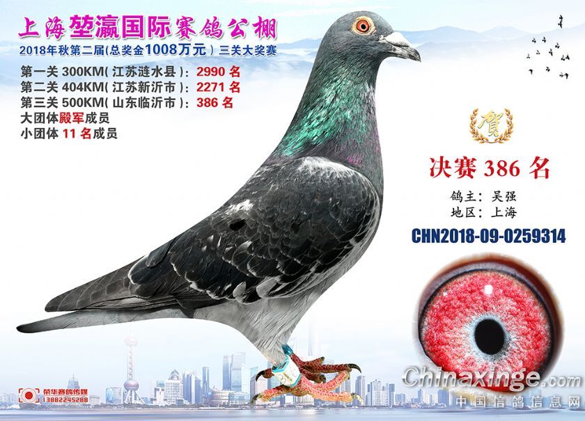 2018年上海堃瀛国际赛鸽俱乐部公棚获奖鸽照片361-390名