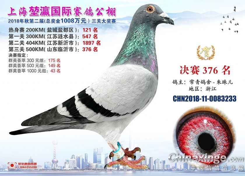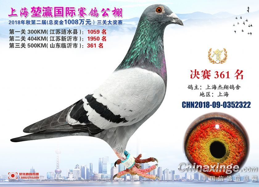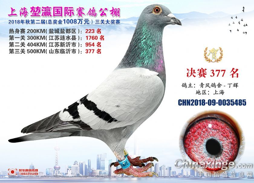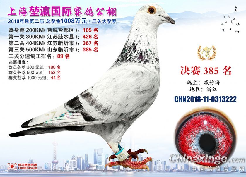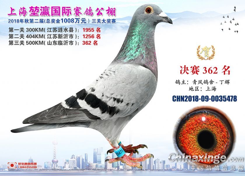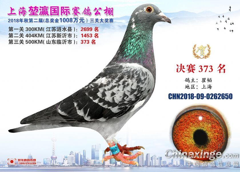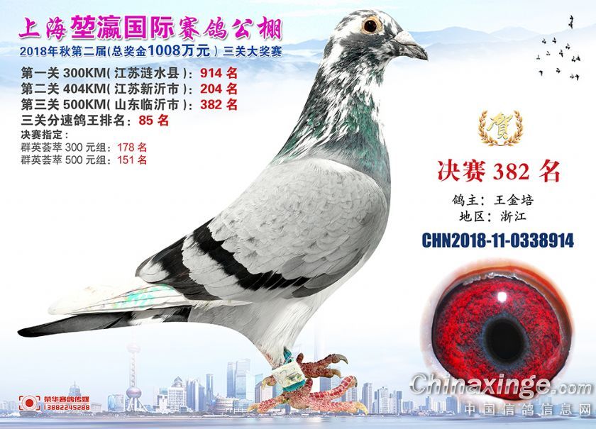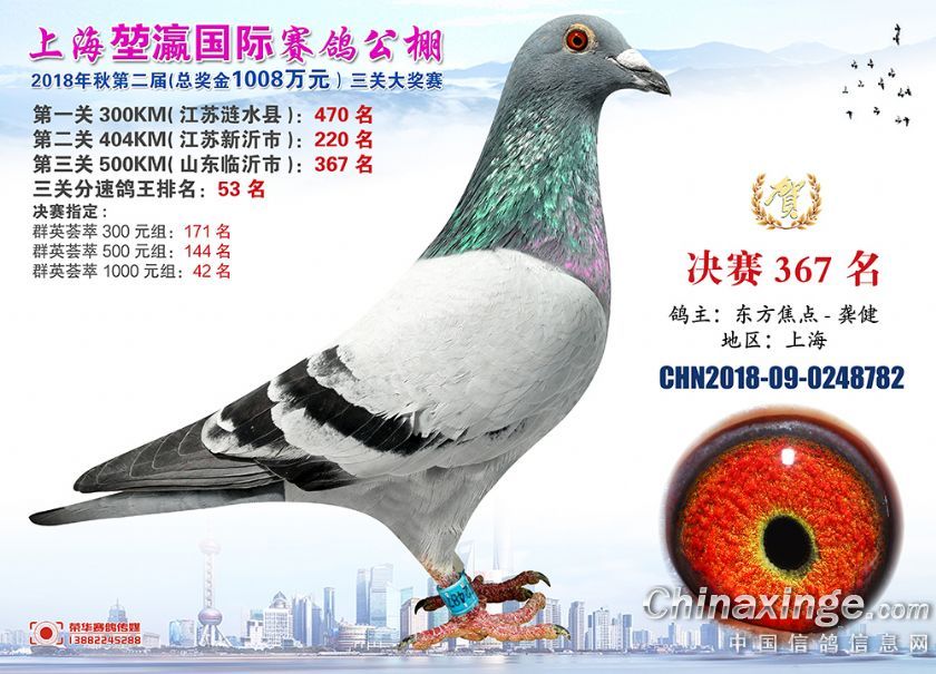 2018年上海堃瀛国际赛鸽俱乐部公棚获奖鸽照片361-390名
