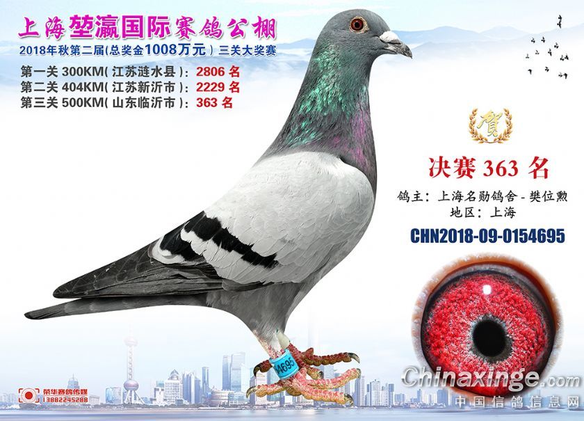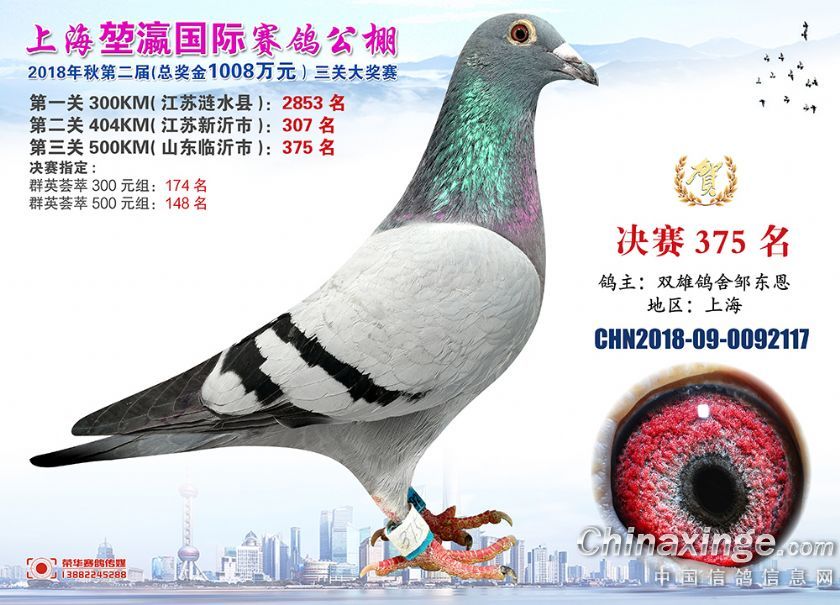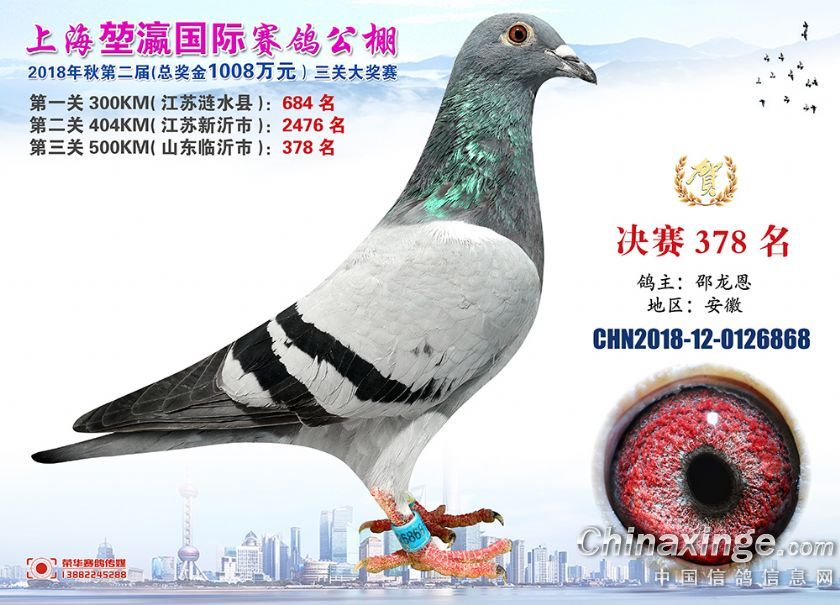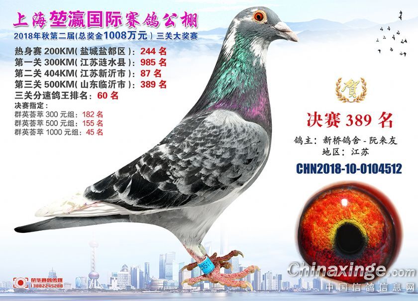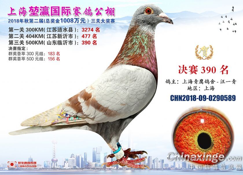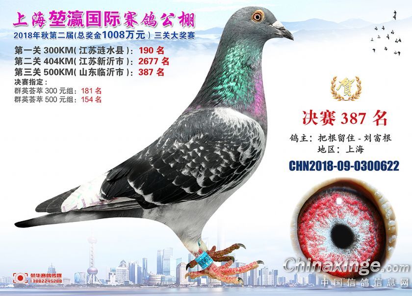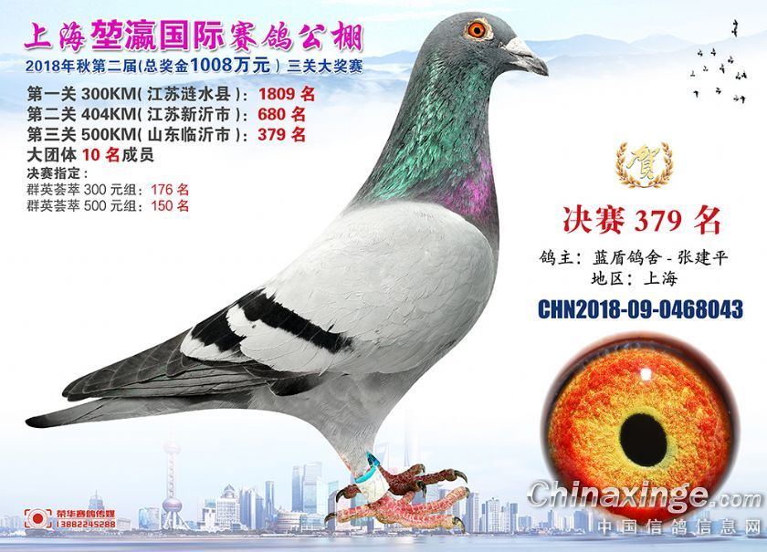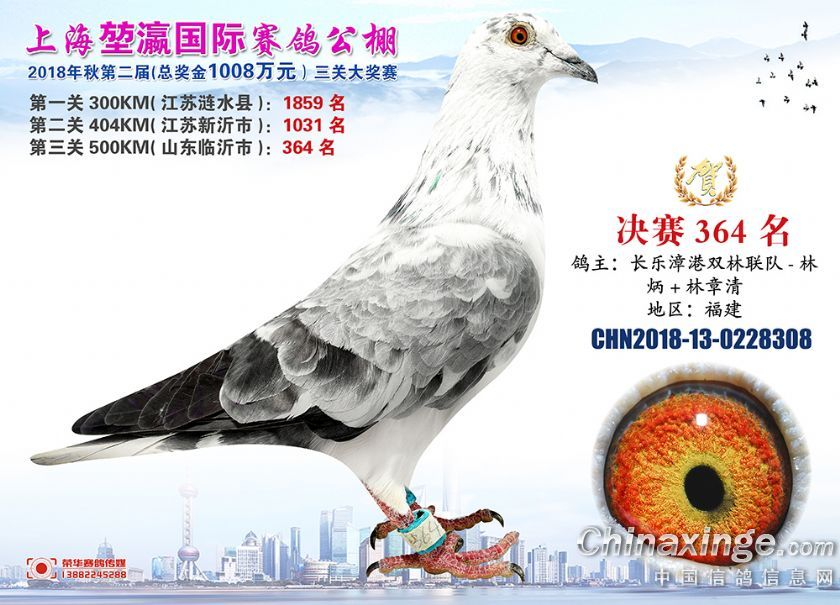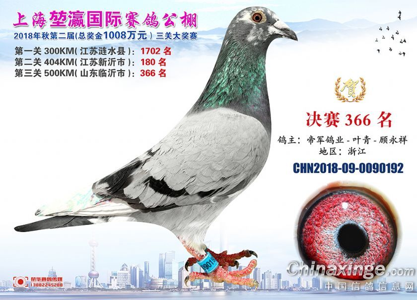 2018年上海堃瀛国际赛鸽俱乐部公棚获奖鸽照片361-390名