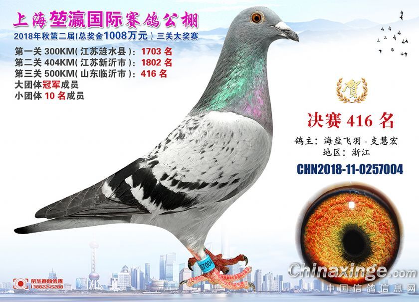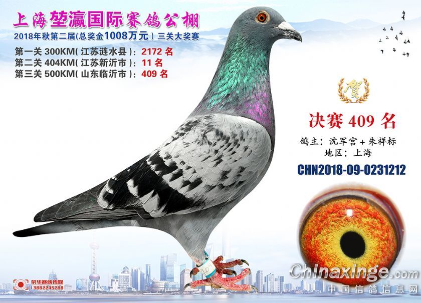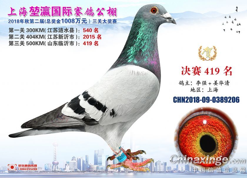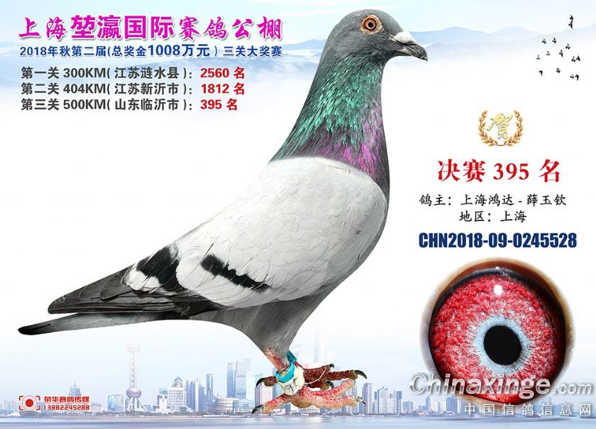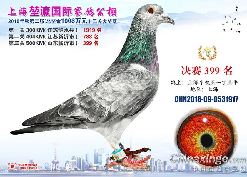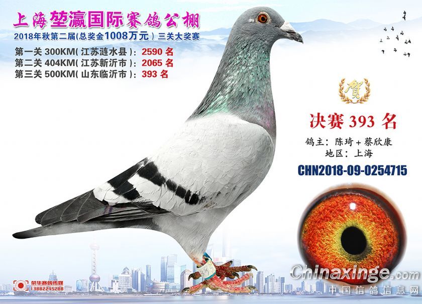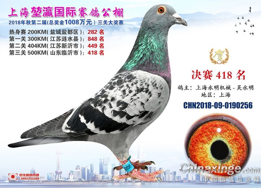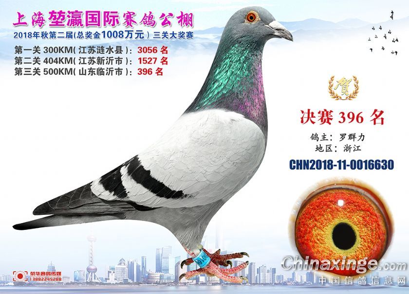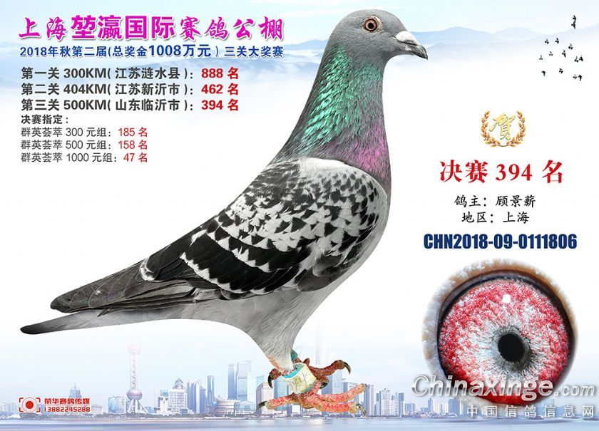 2018年上海堃瀛国际赛鸽俱乐部公棚获奖鸽照片391-420名