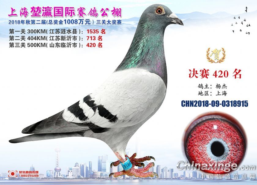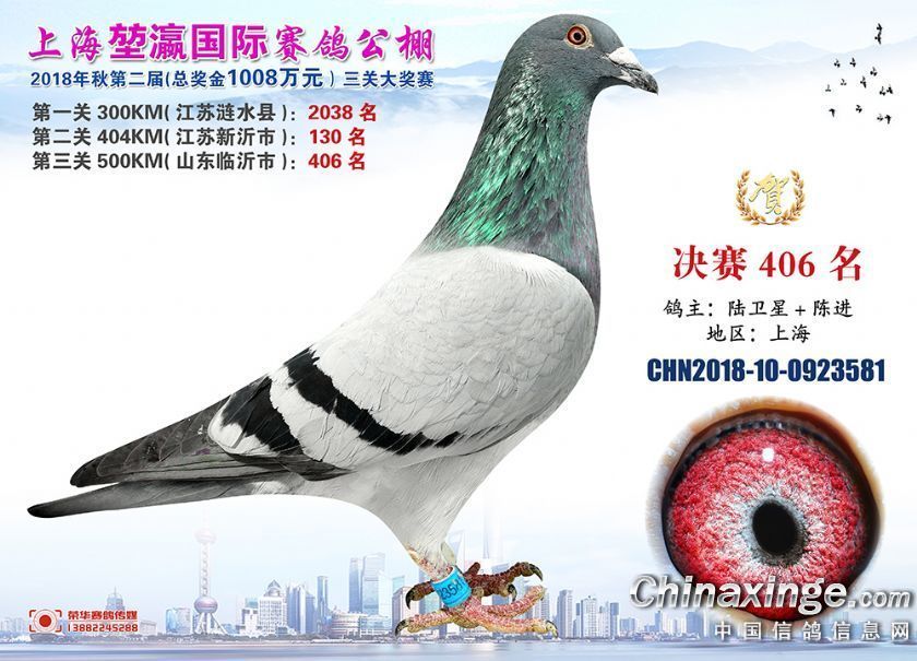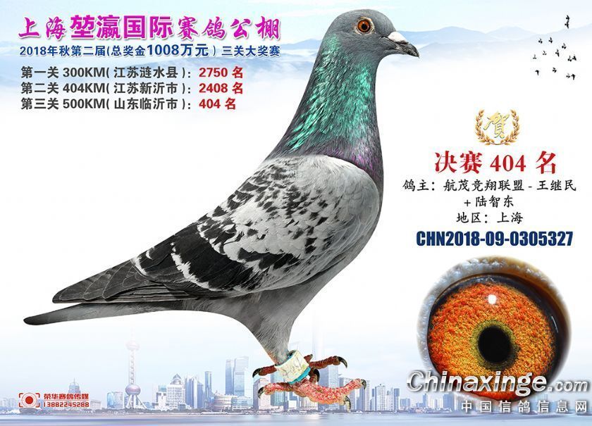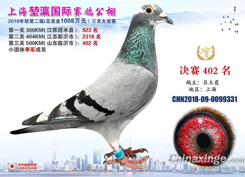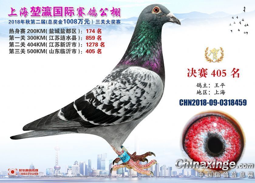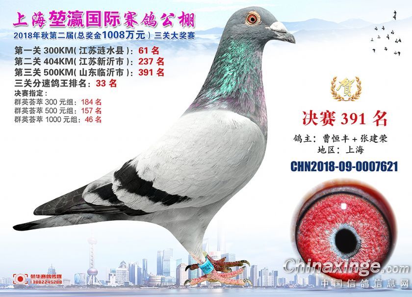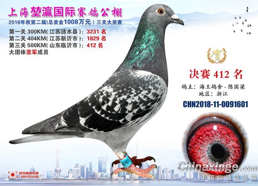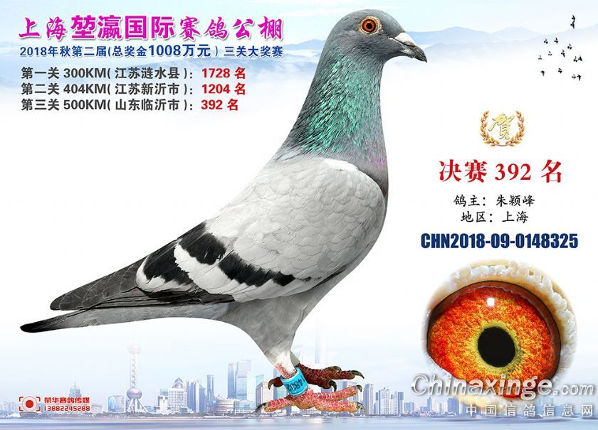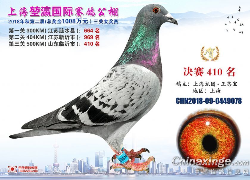 2018年上海堃瀛国际赛鸽俱乐部公棚获奖鸽照片391-420名