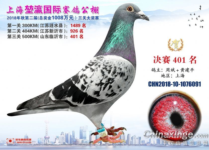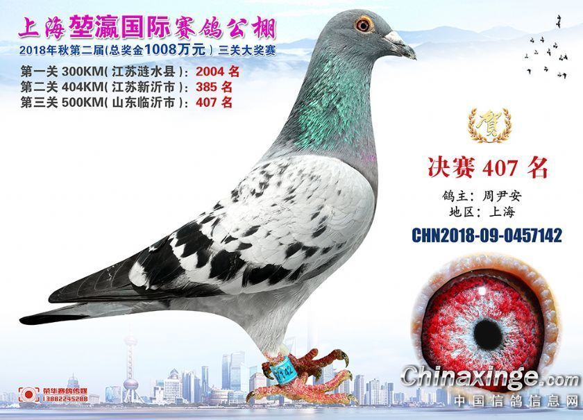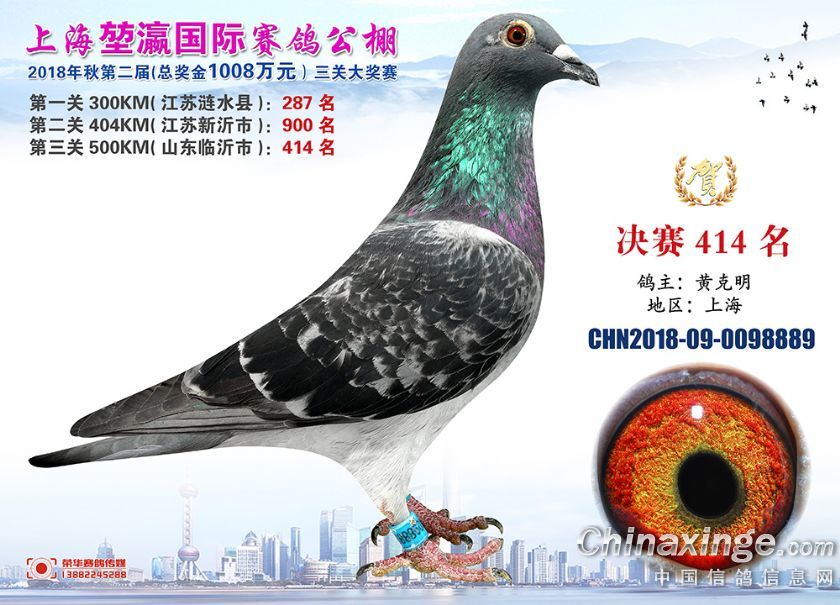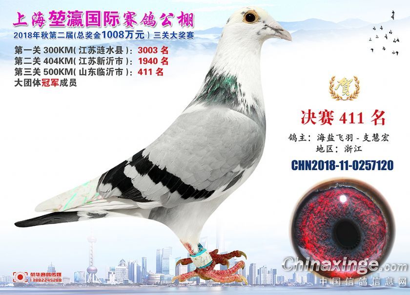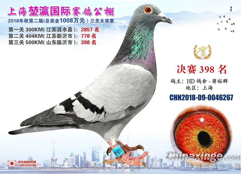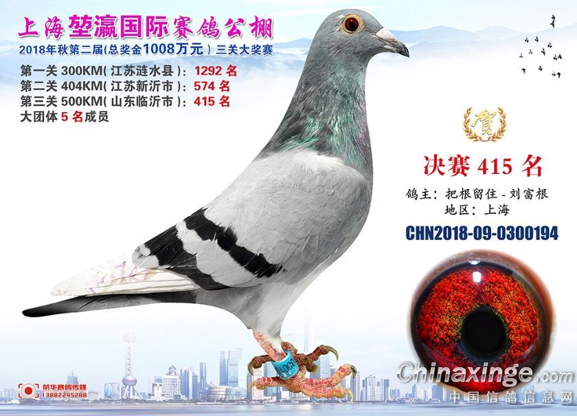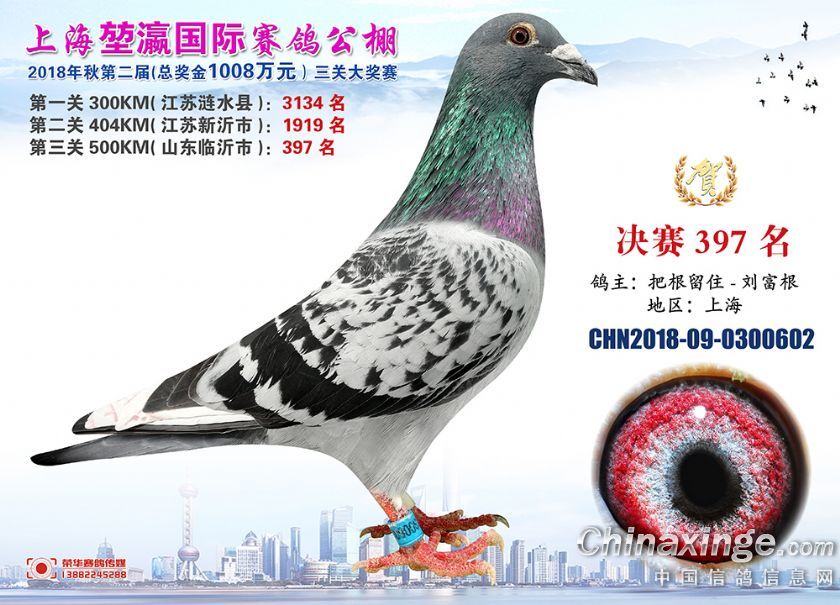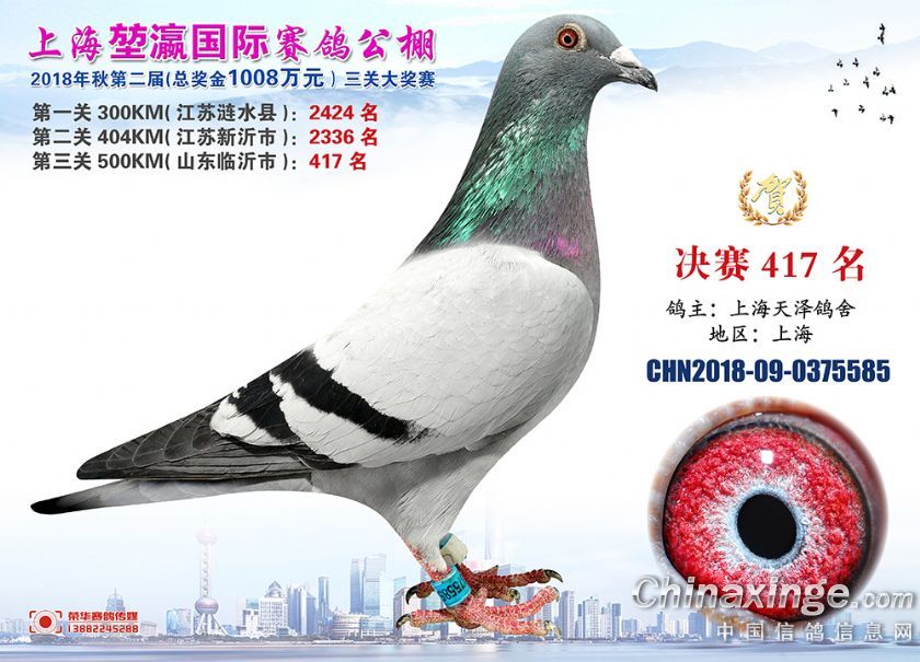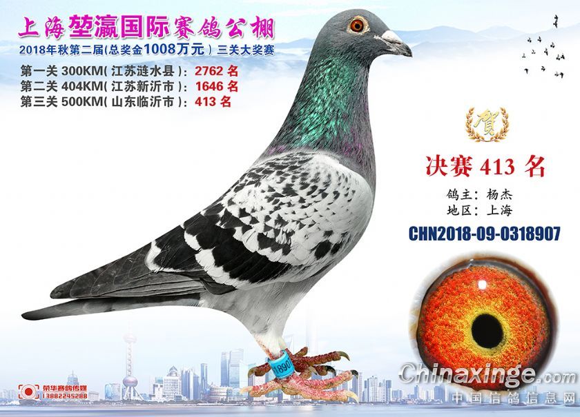 2018年上海堃瀛国际赛鸽俱乐部公棚获奖鸽照片391-420名