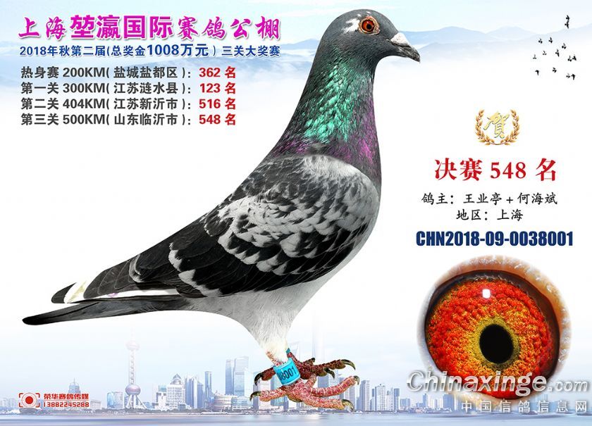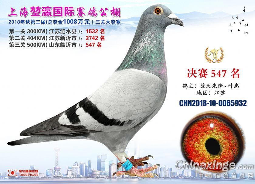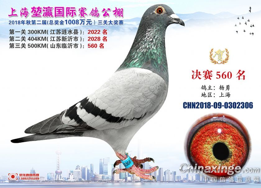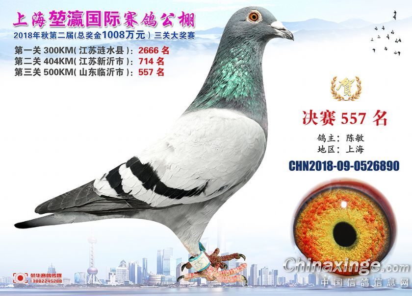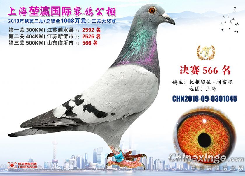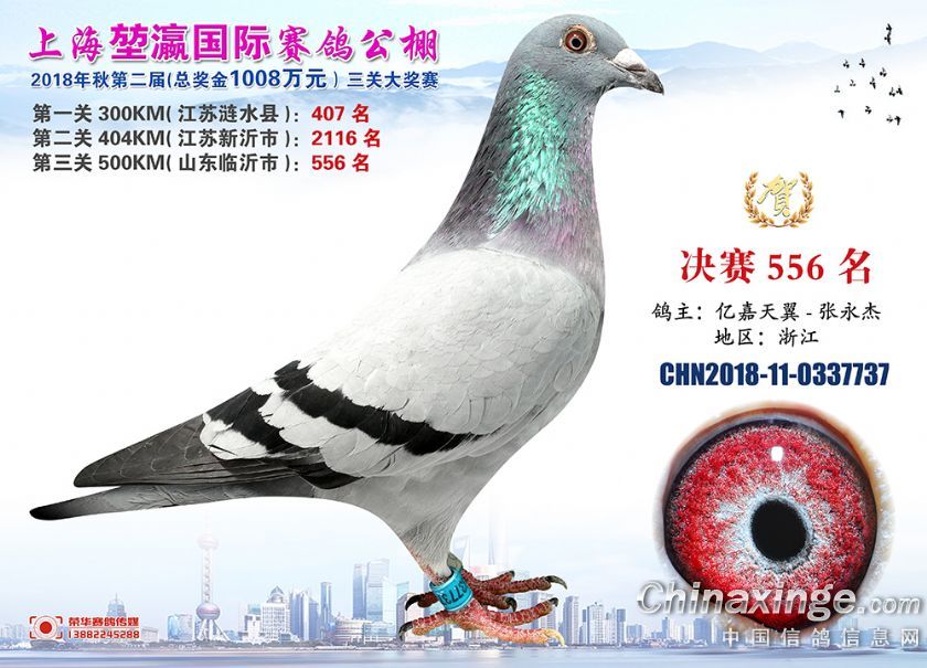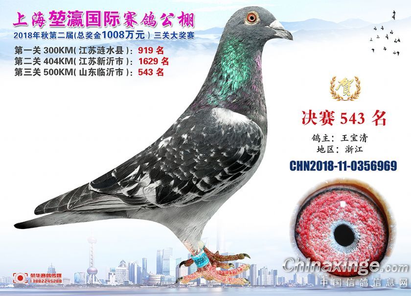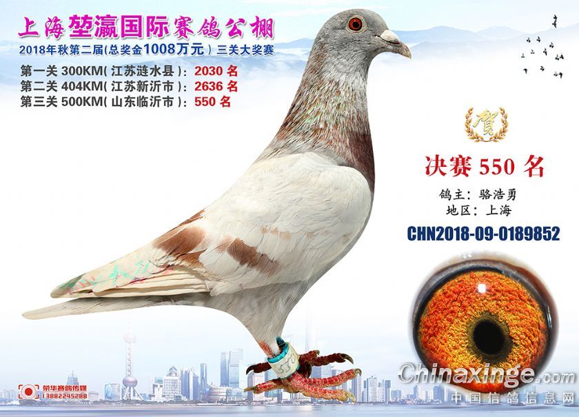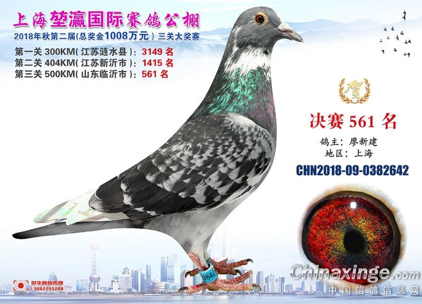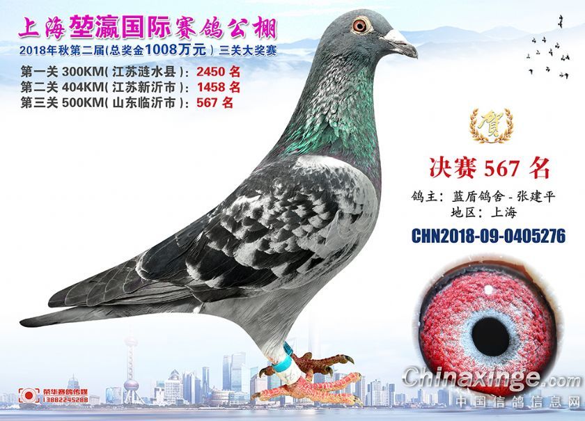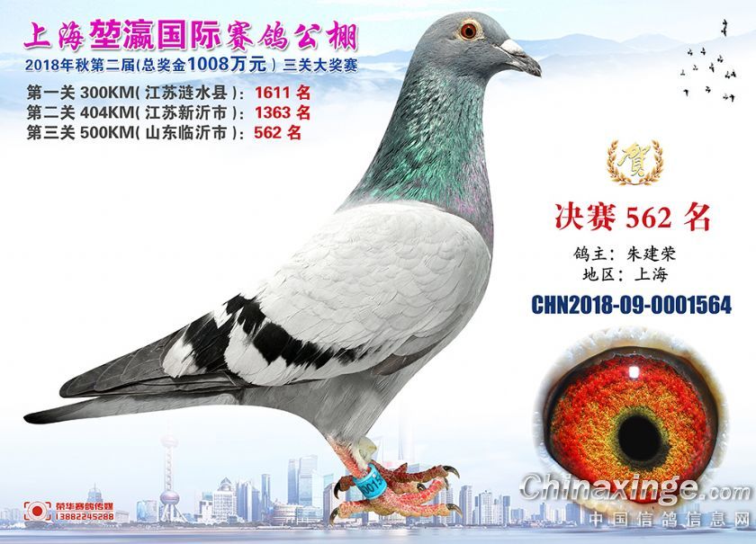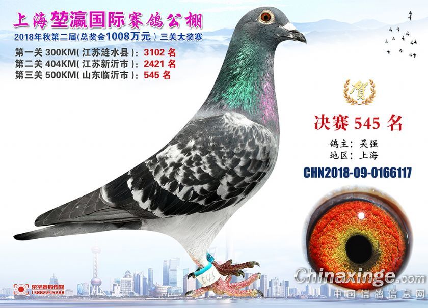 2018年上海堃瀛国际赛鸽俱乐部公棚获奖鸽照片541名--570名