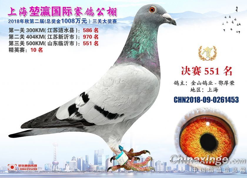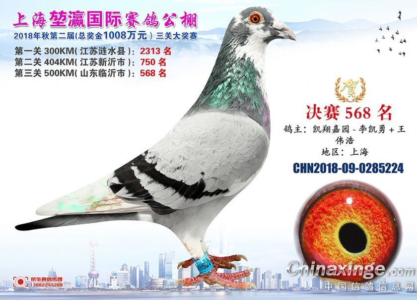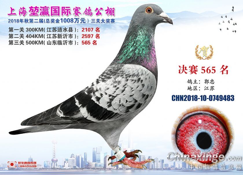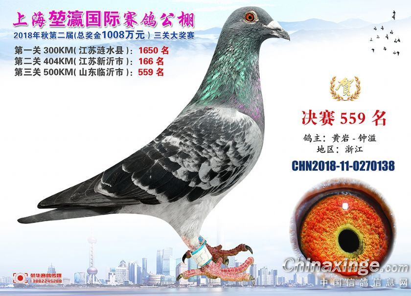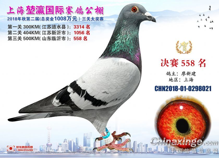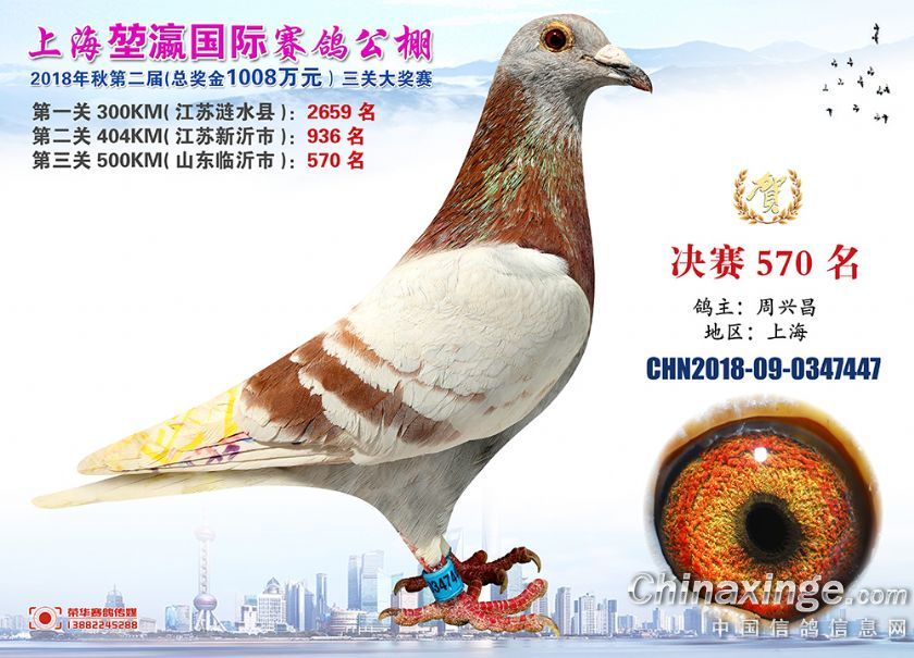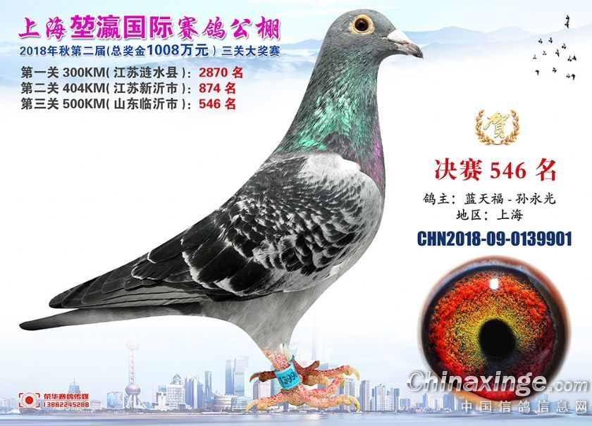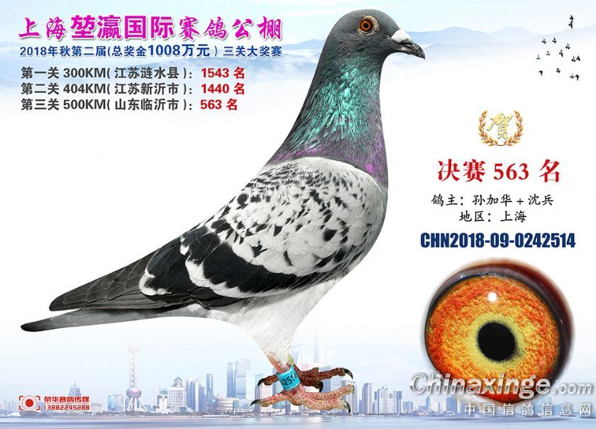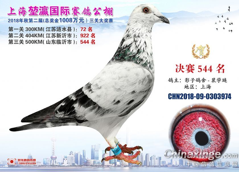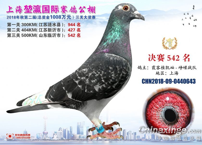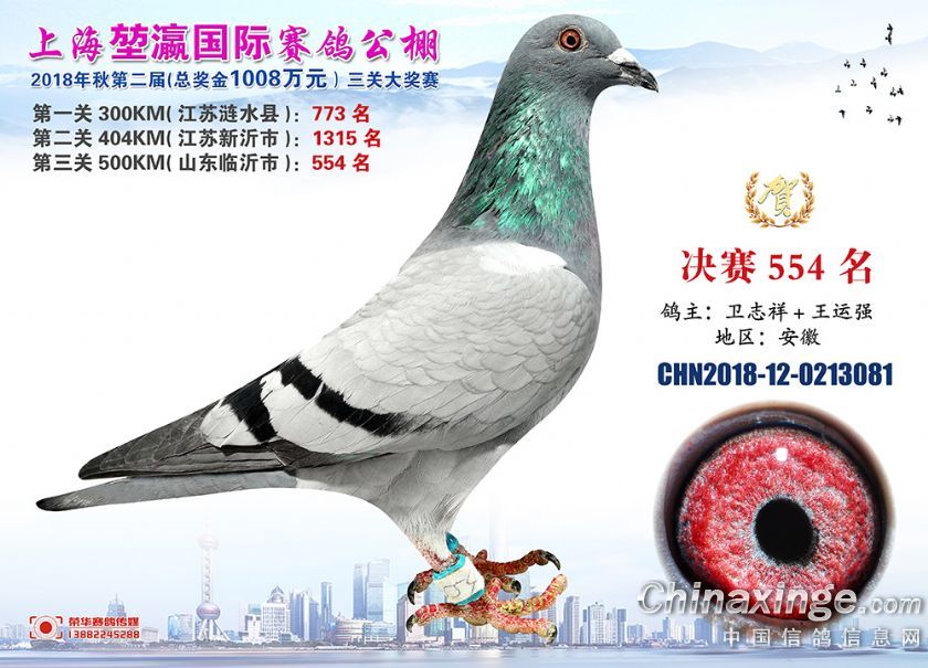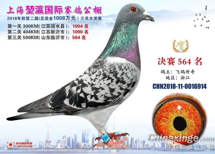 2018年上海堃瀛国际赛鸽俱乐部公棚获奖鸽照片541名--570名
