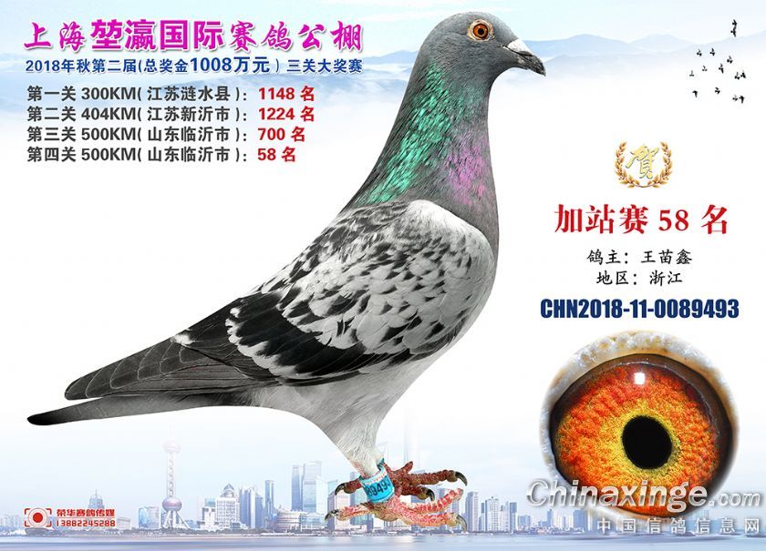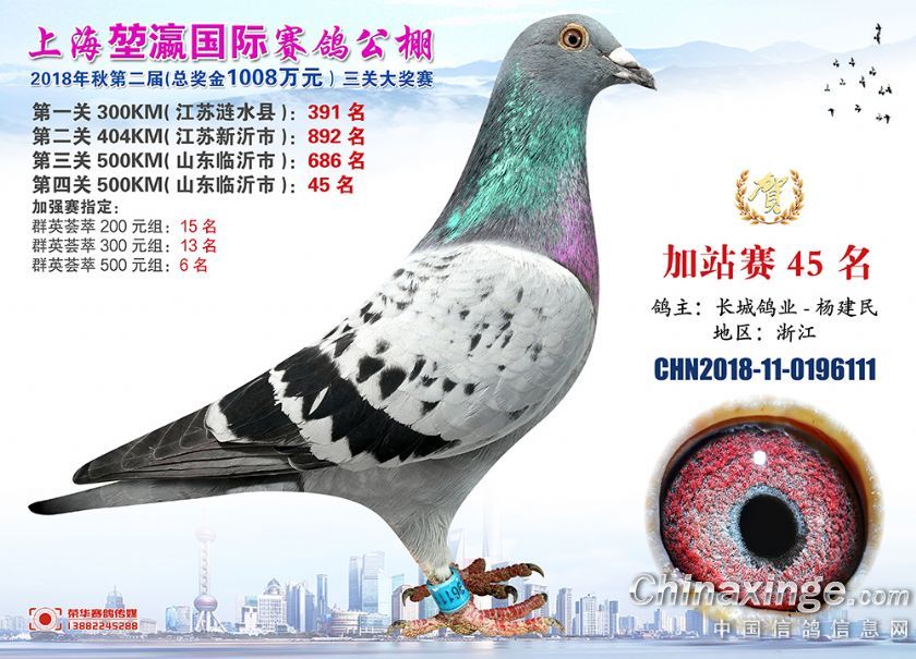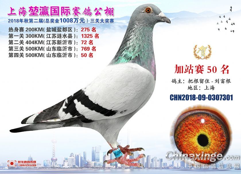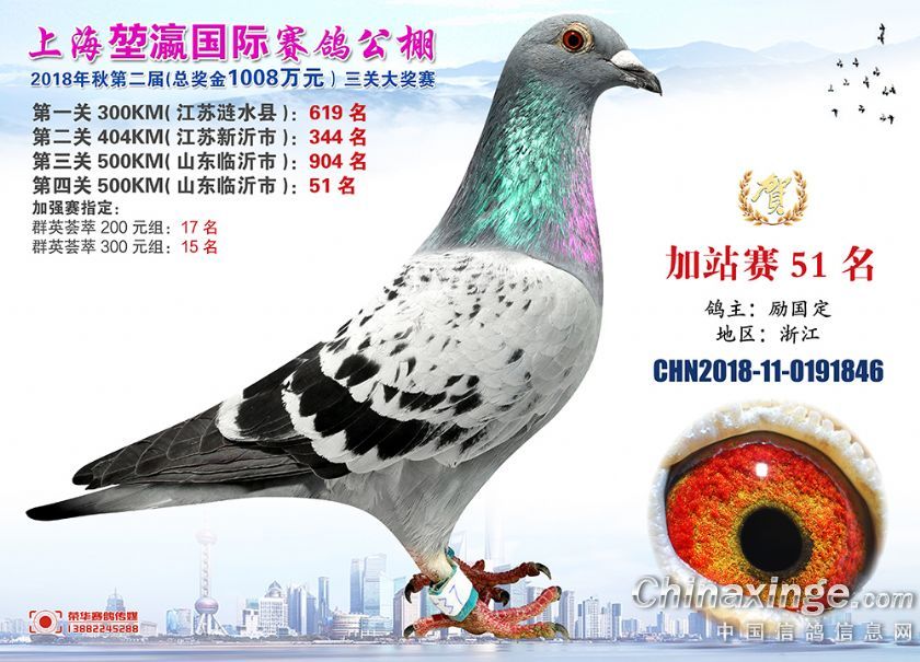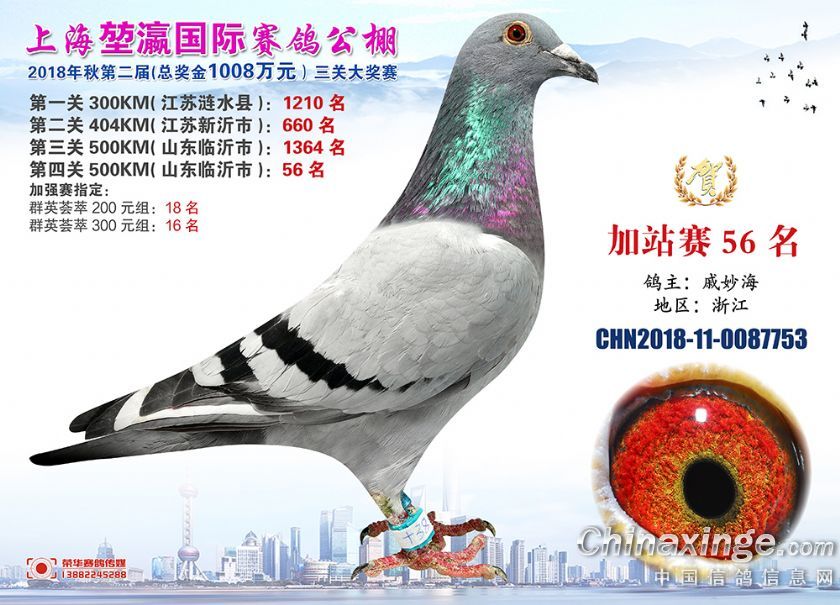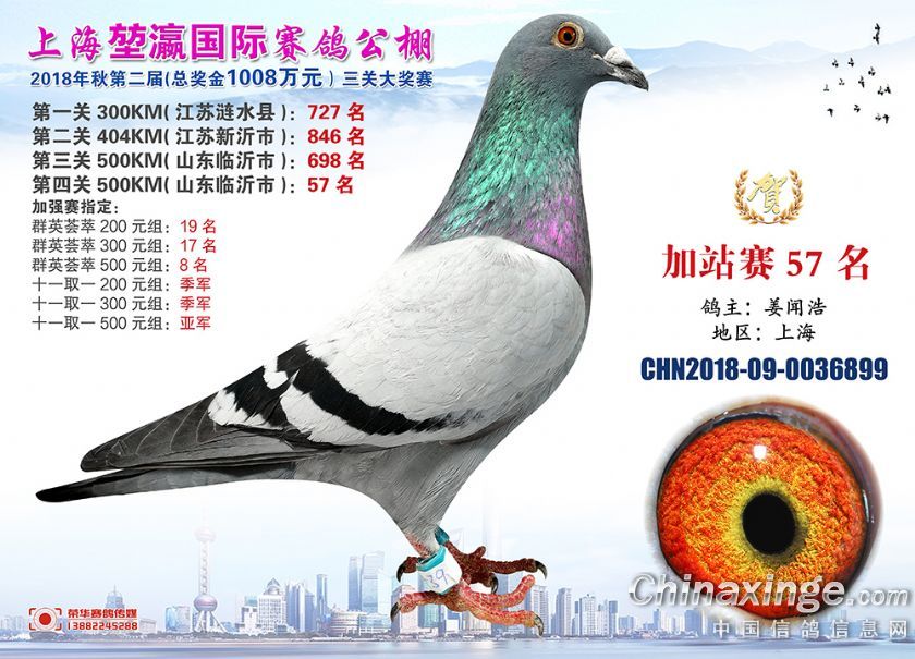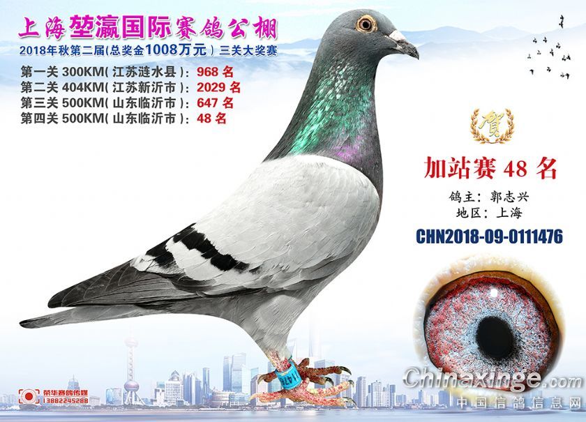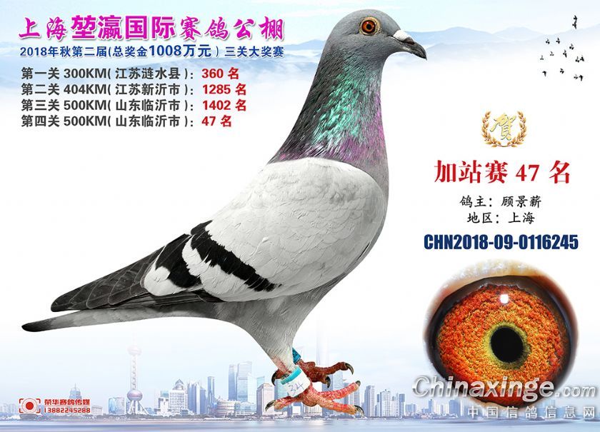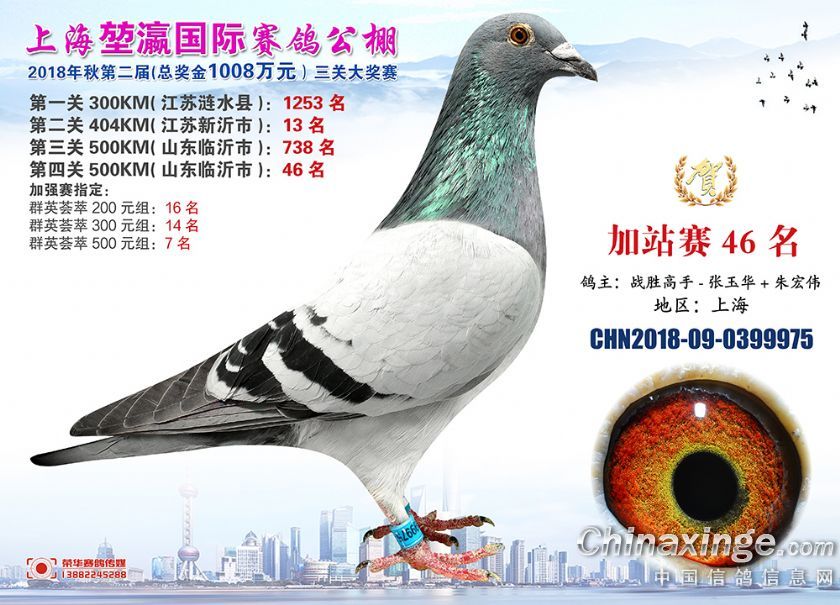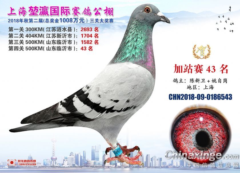 2018年上海堃瀛国际赛鸽俱乐部公棚加站赛获奖鸽照片43-60名