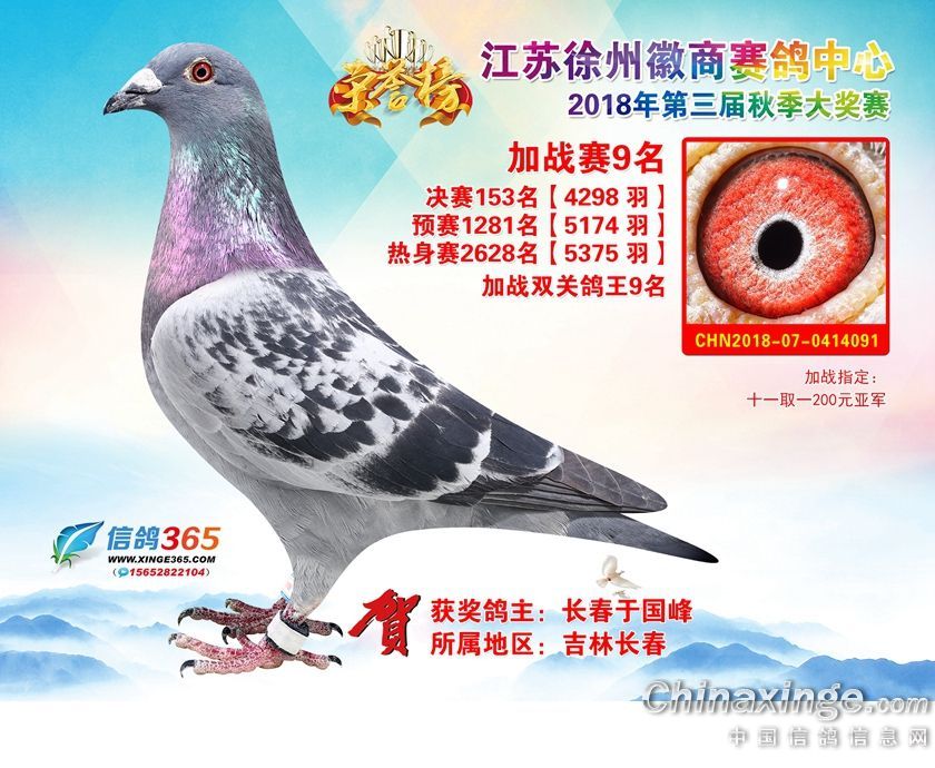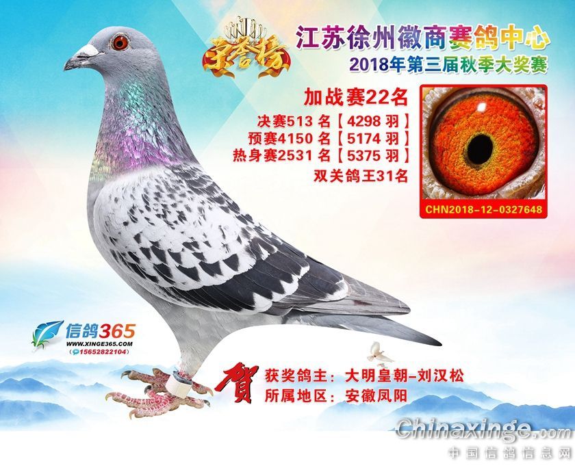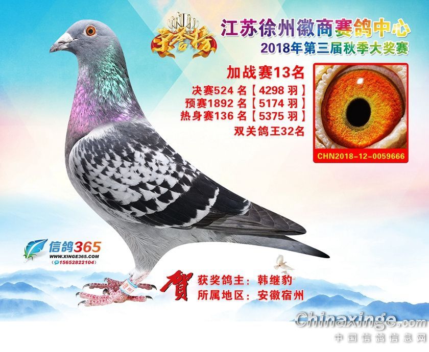 作品说明: 江苏徐州徽商赛鸽中心2018年加站赛获奖鸽1-25名