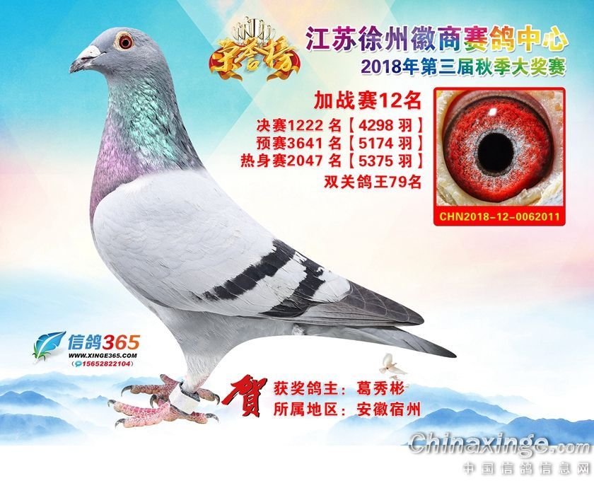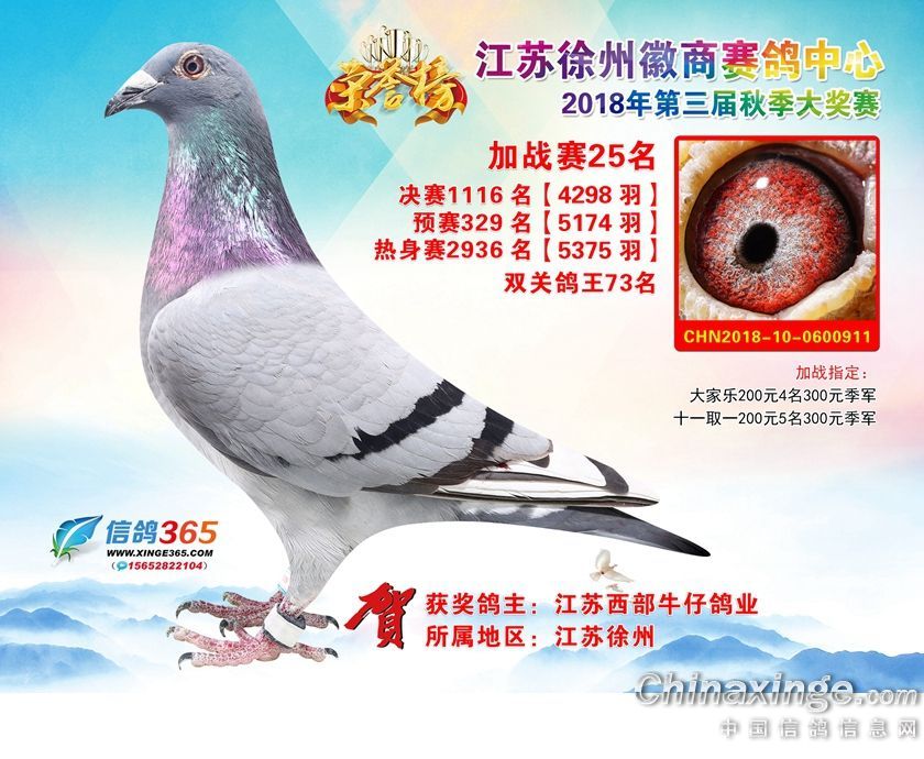 江苏徐州徽商赛鸽中心2018年加站赛获奖鸽1-25名