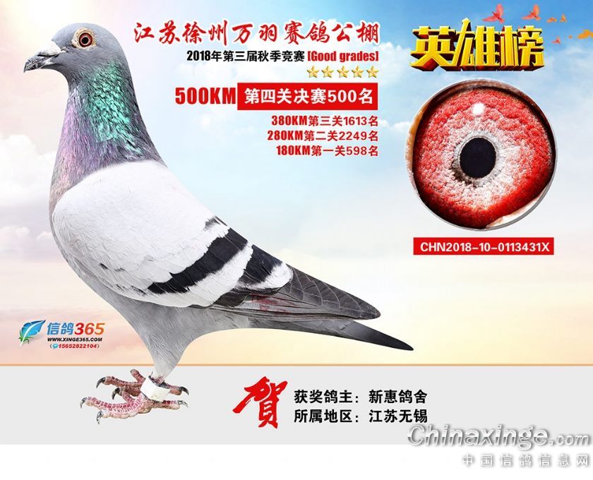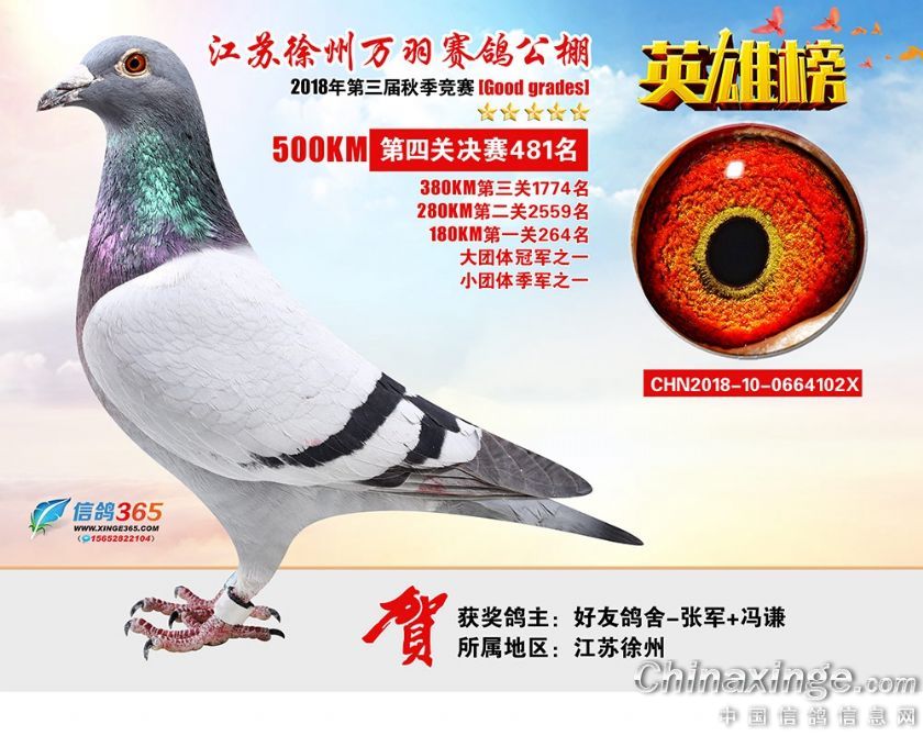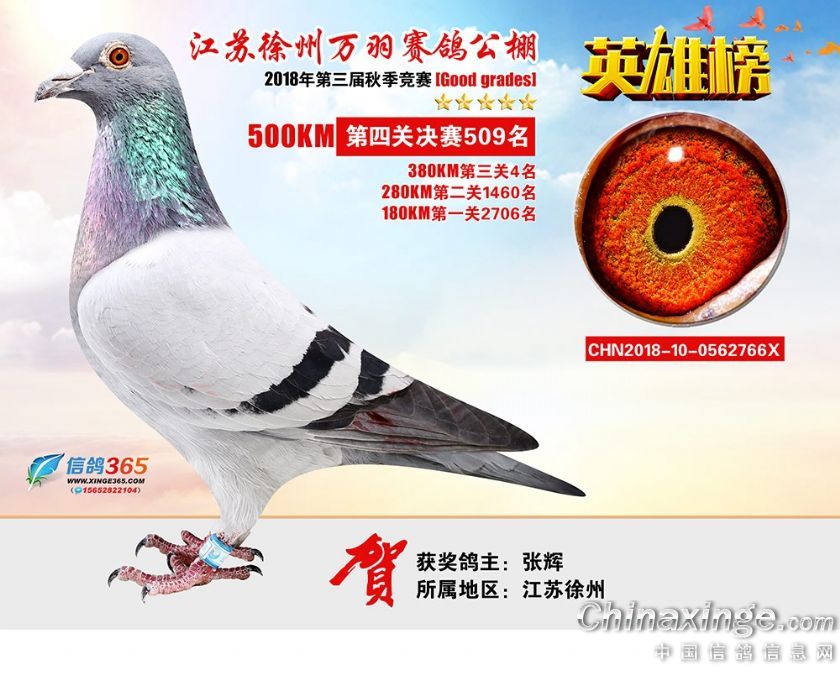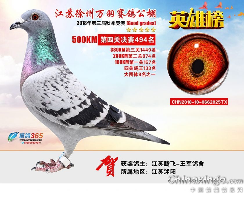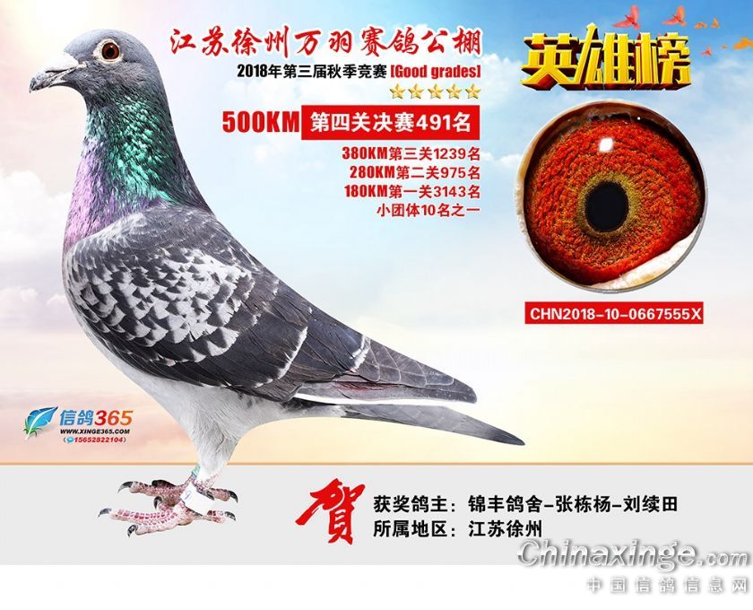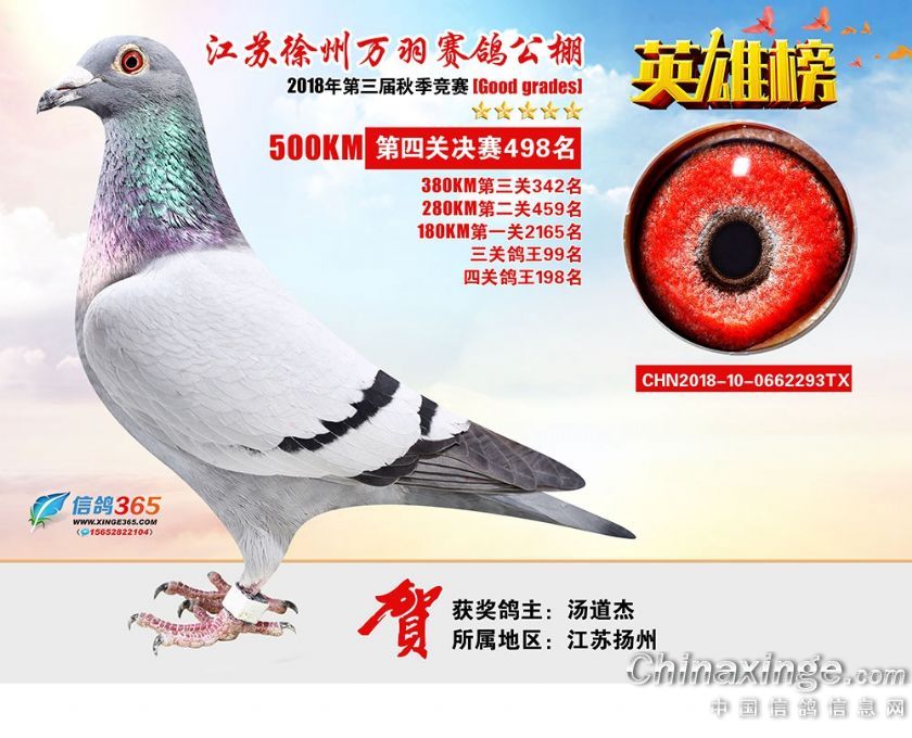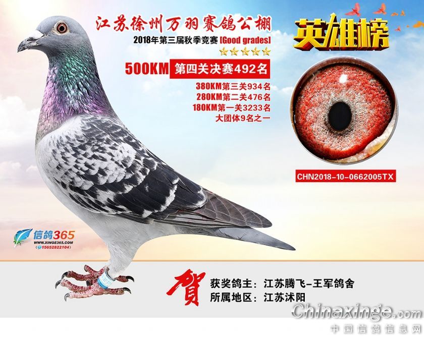 作品说明: 江苏万羽赛鸽公棚2018年获奖鸽欣赏481-510名