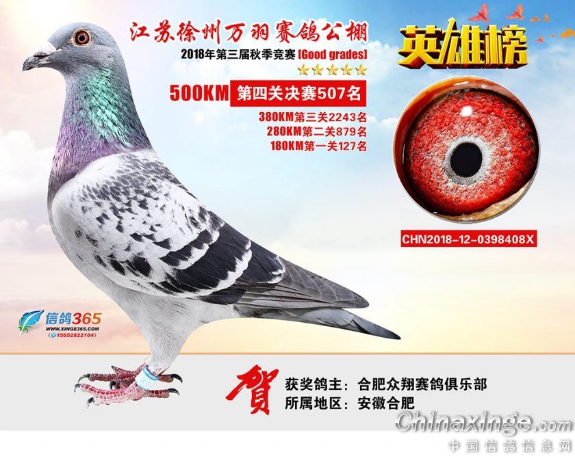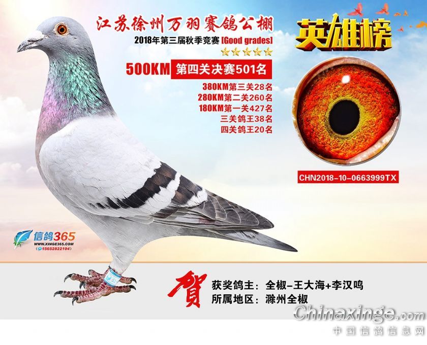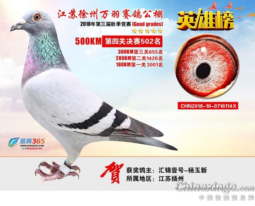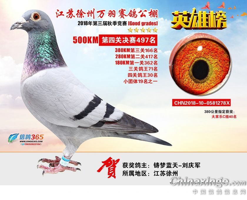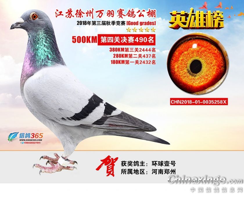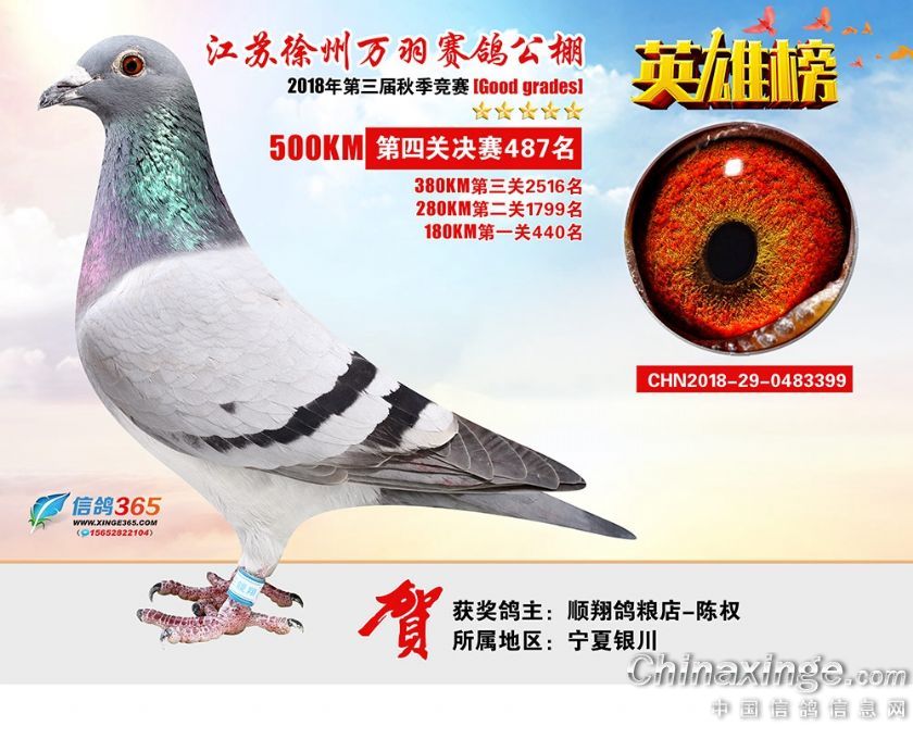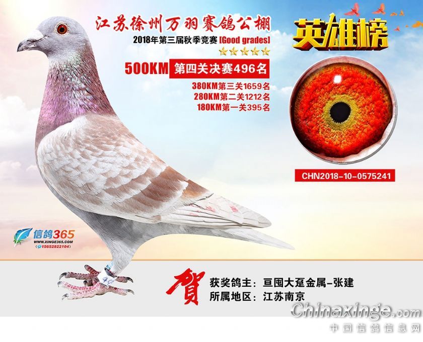 作品说明: 江苏万羽赛鸽公棚2018年获奖鸽欣赏481-510名