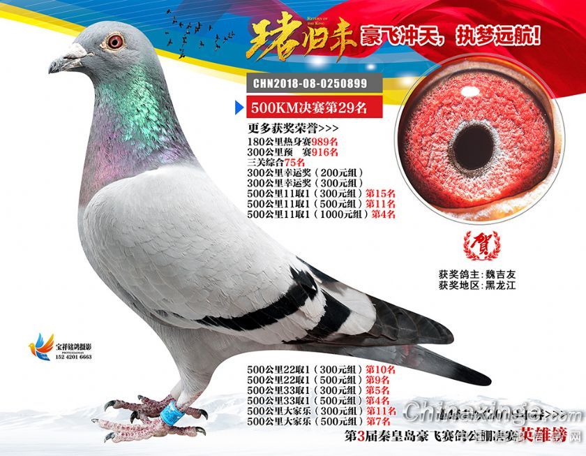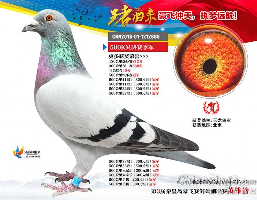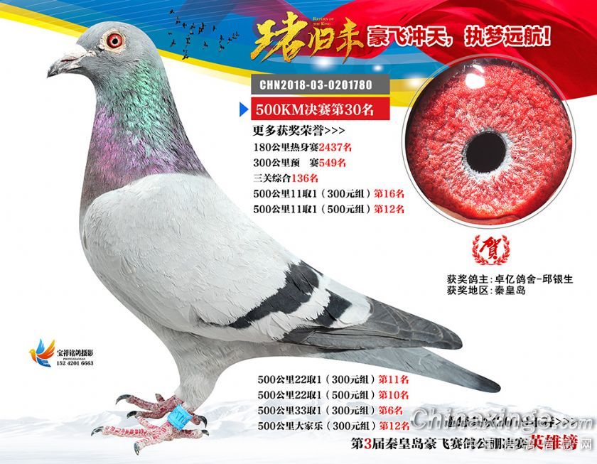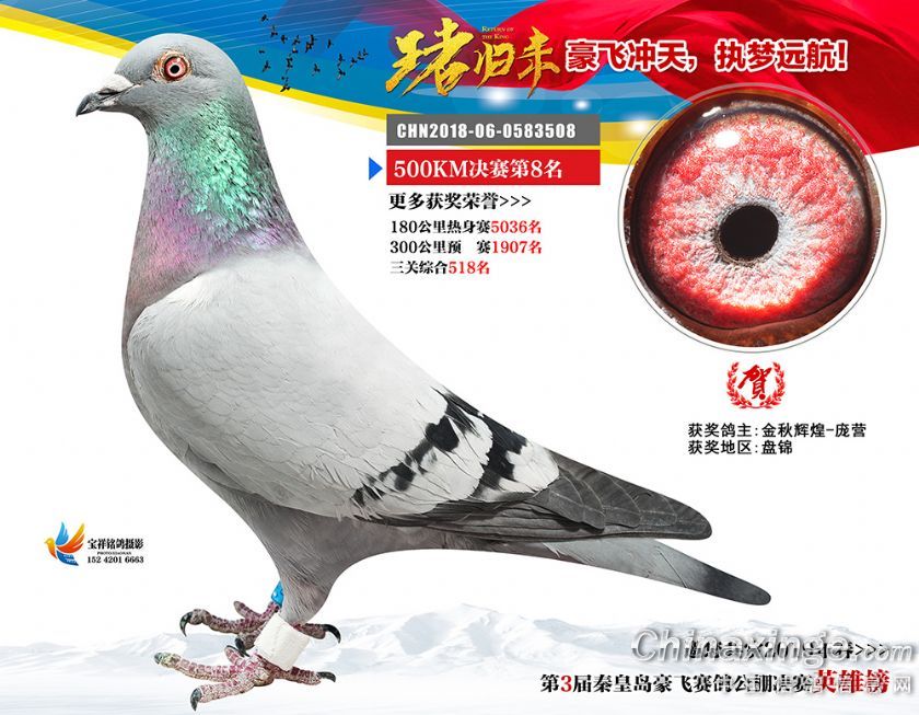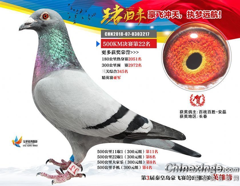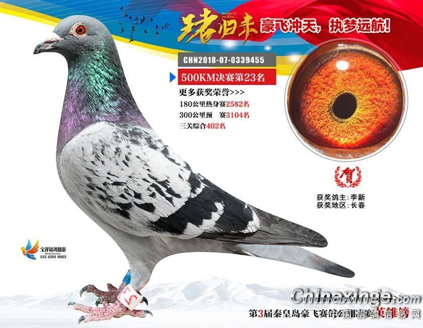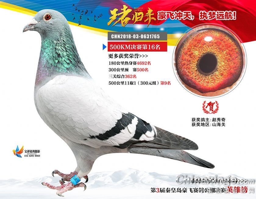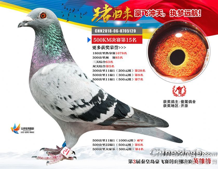 作品说明: 作品说明: 第三届竞翔大奖赛拍卖会暨颁奖晚宴 豪飞公棚拍卖会定于5月2日-5月3日, 在骏怡连锁酒店举行。我棚特聘请中国金牌拍卖 师吴昊先生主锤,让您的爱鸽物有所 值。届时诚邀广大鸽友莅临出席。活动安排:拍 卖时间:2019年5月2日14:00——5月3 日 拍卖地点:骏怡连锁酒店(秦皇岛昌黎泥井镇店) 拍卖方式:现场竞拍 联 系 人: 黄永斌 康晓龙 联系电话:13933692377 13582802122 拍卖顺序: 5月2日14:00准时开 拍,决赛600-401名,加强赛获奖鸽及排名成绩鸽。2日晚19:00颁 奖及答谢酒会。 5月3 日上午8:00准时开拍剩余名次鸽(400-冠军)