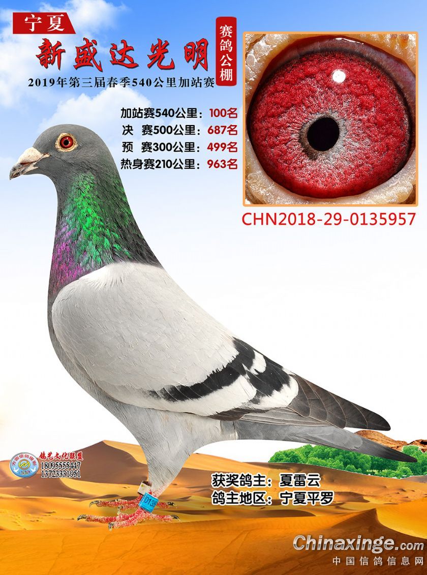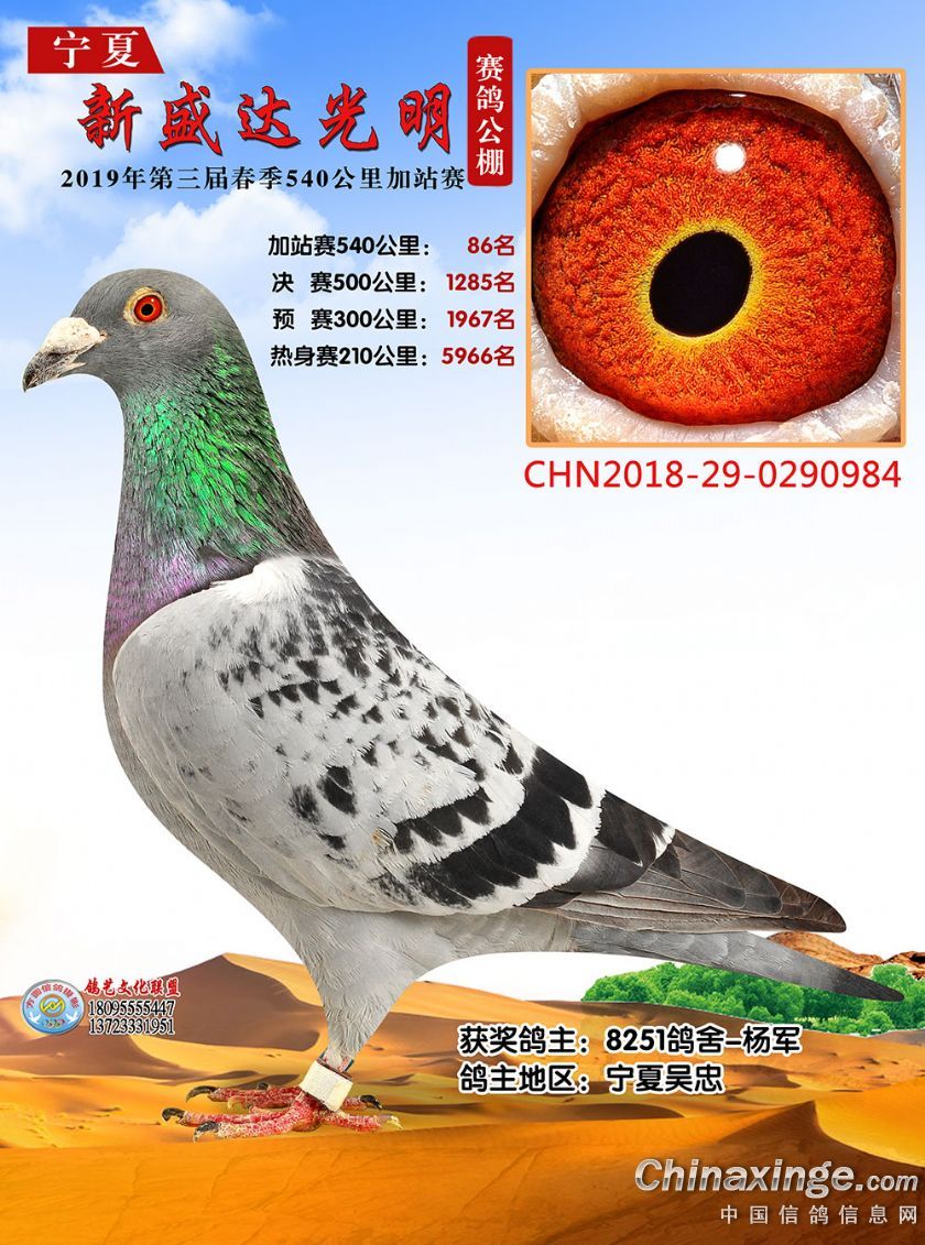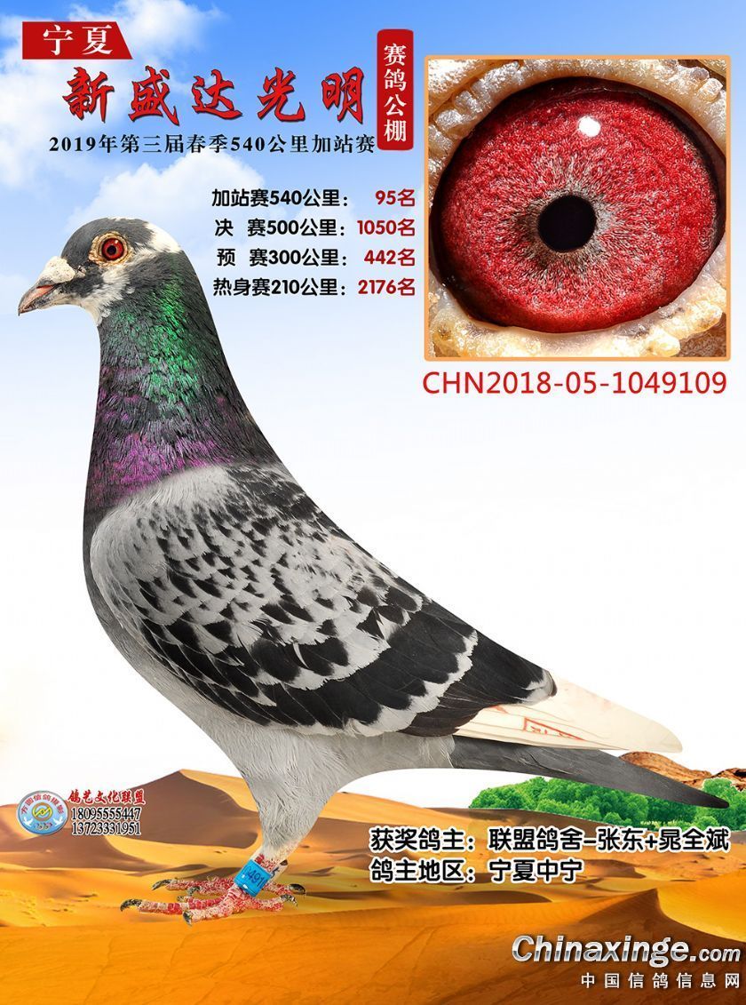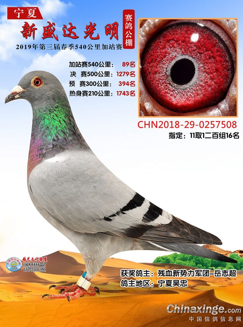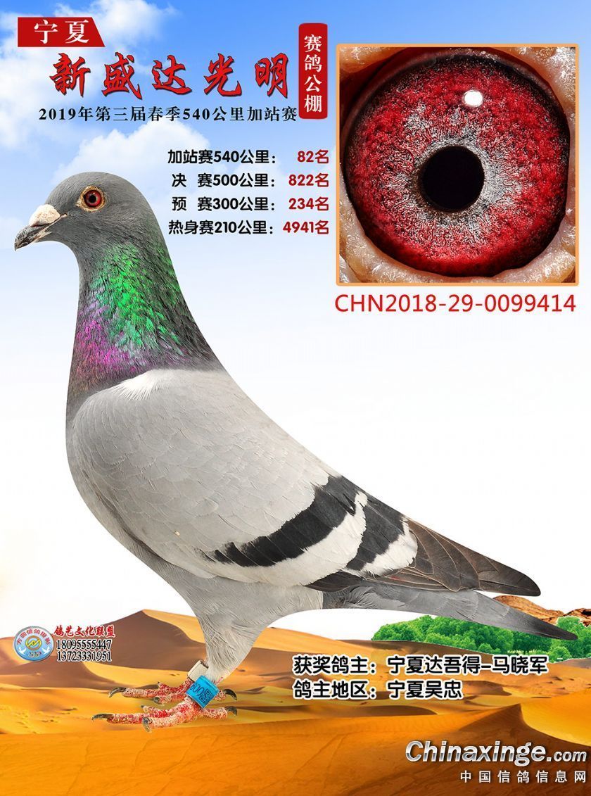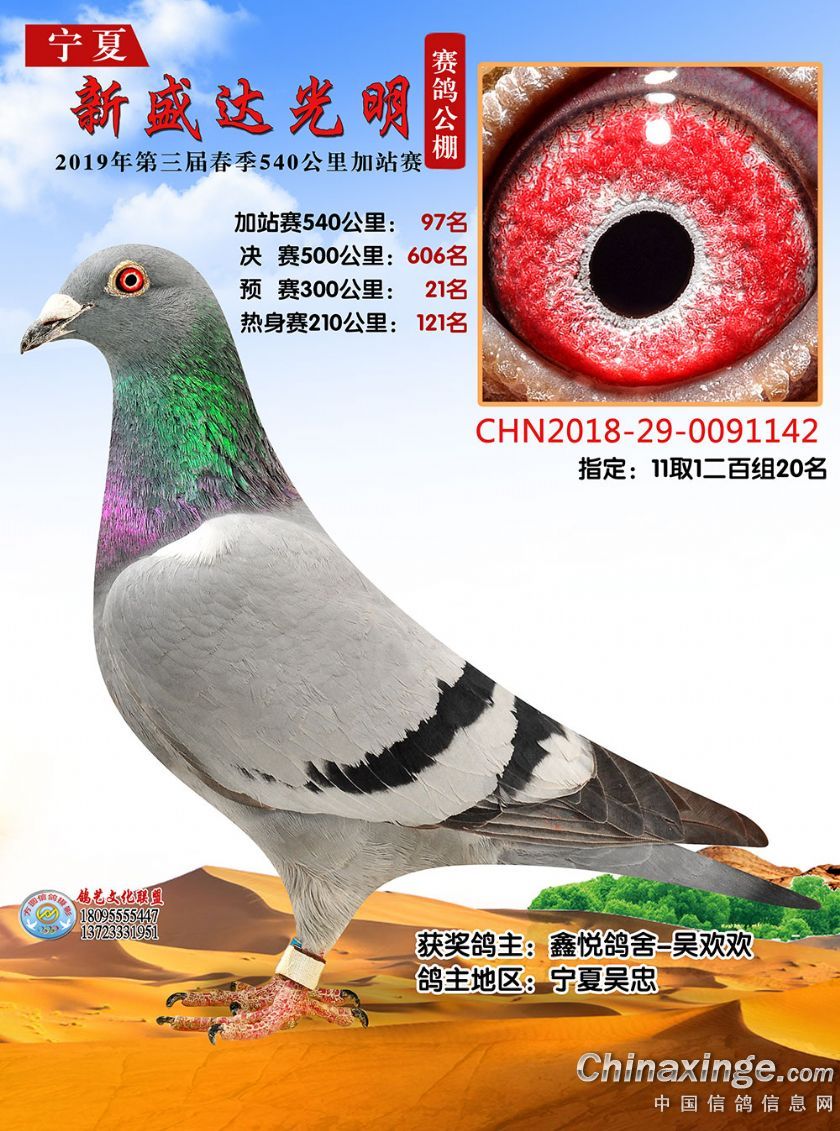作品说明: 2019年春宁夏新盛达光明赛鸽公棚加站赛获奖鸽照片(81-100)