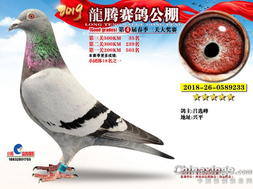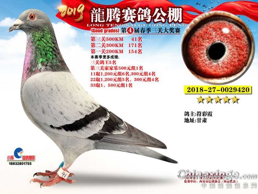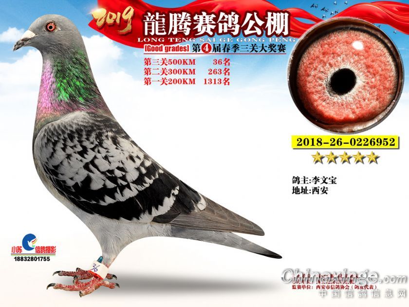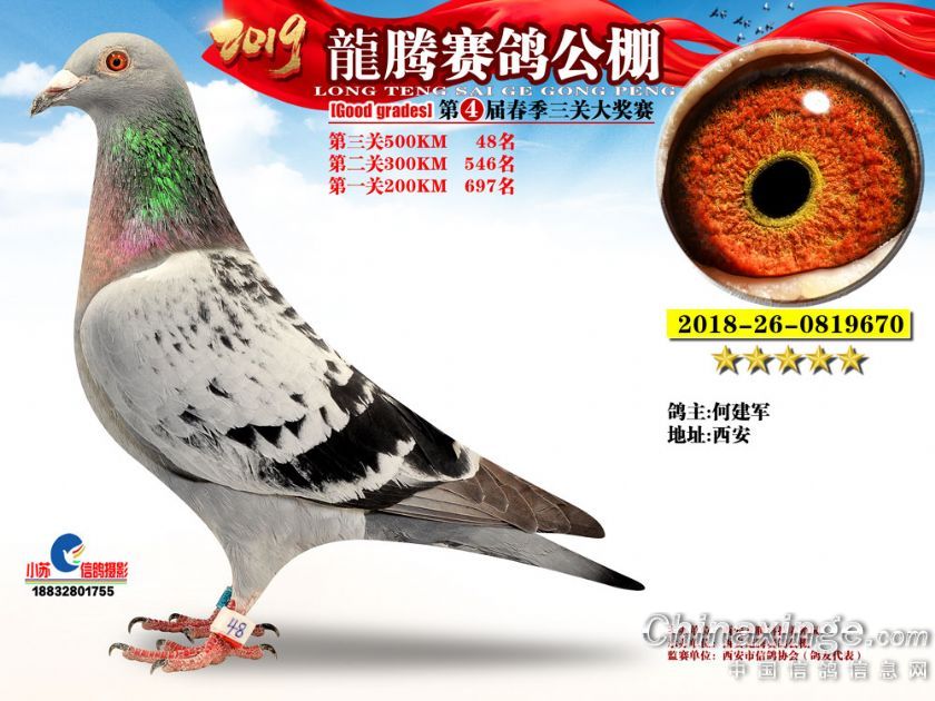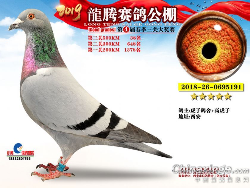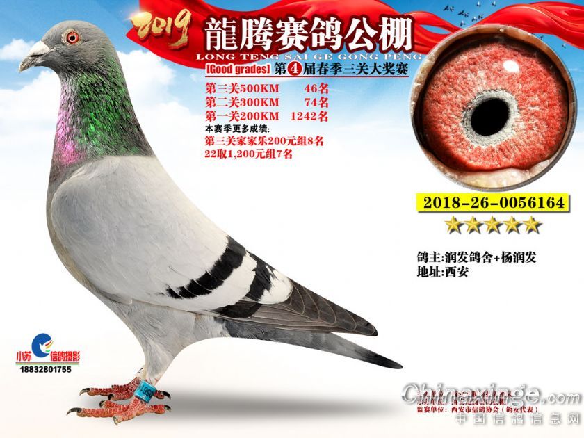 作品说明: 2019年春西安龙腾公棚获奖鸽欣赏
