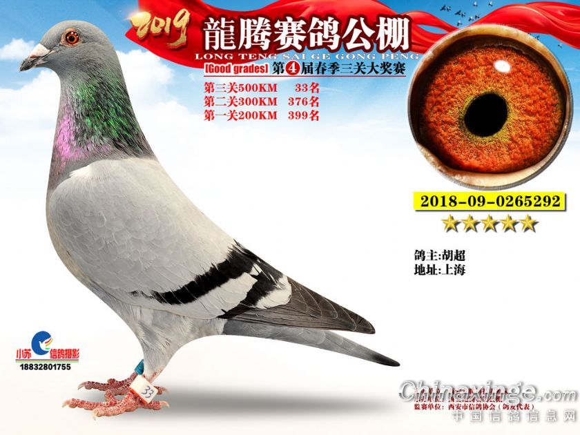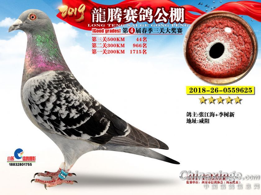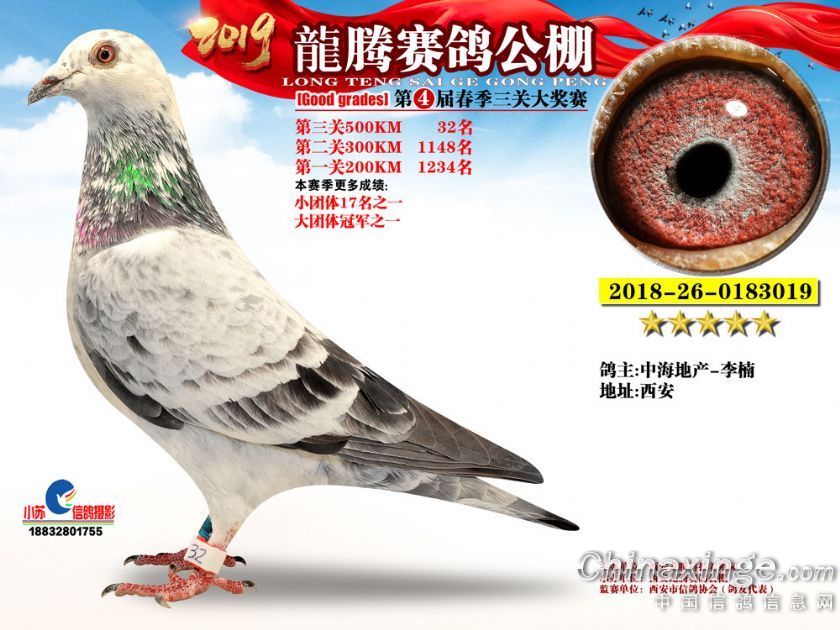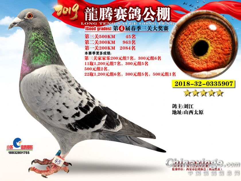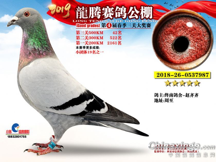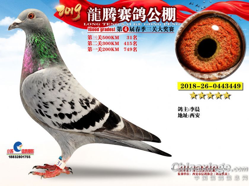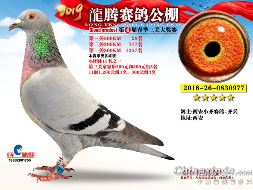 作品说明: 2019年春西安龙腾公棚获奖鸽欣赏