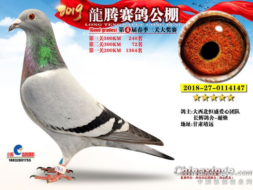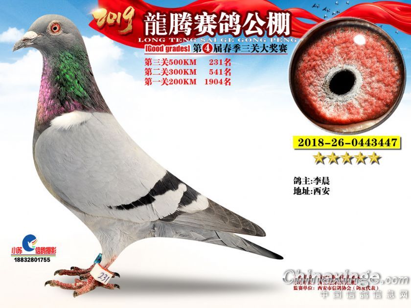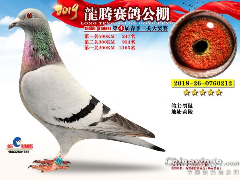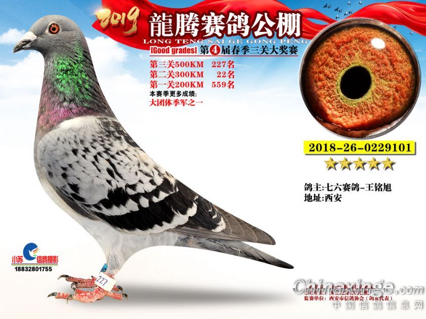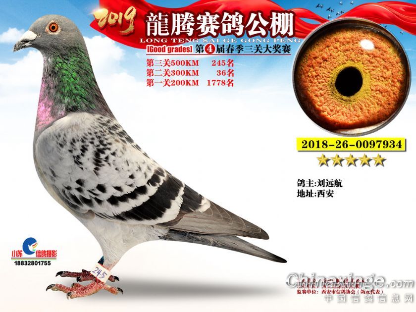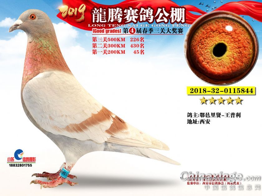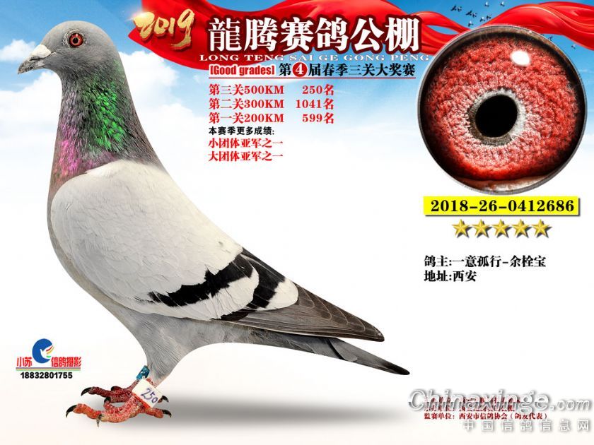 作品说明: 2019年春西安龙腾公棚获奖鸽欣赏