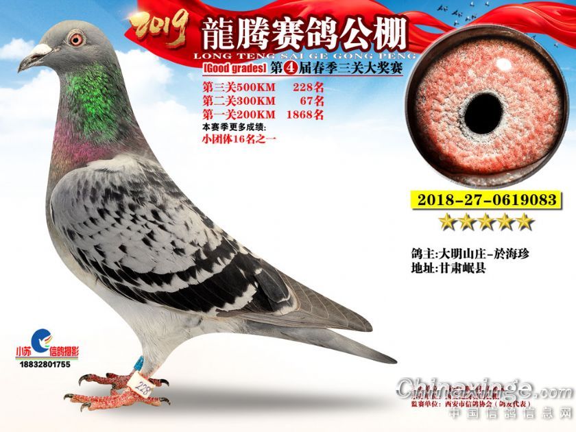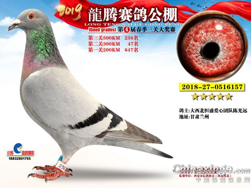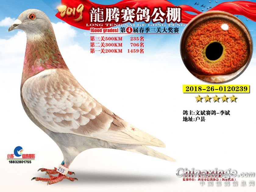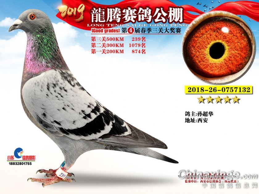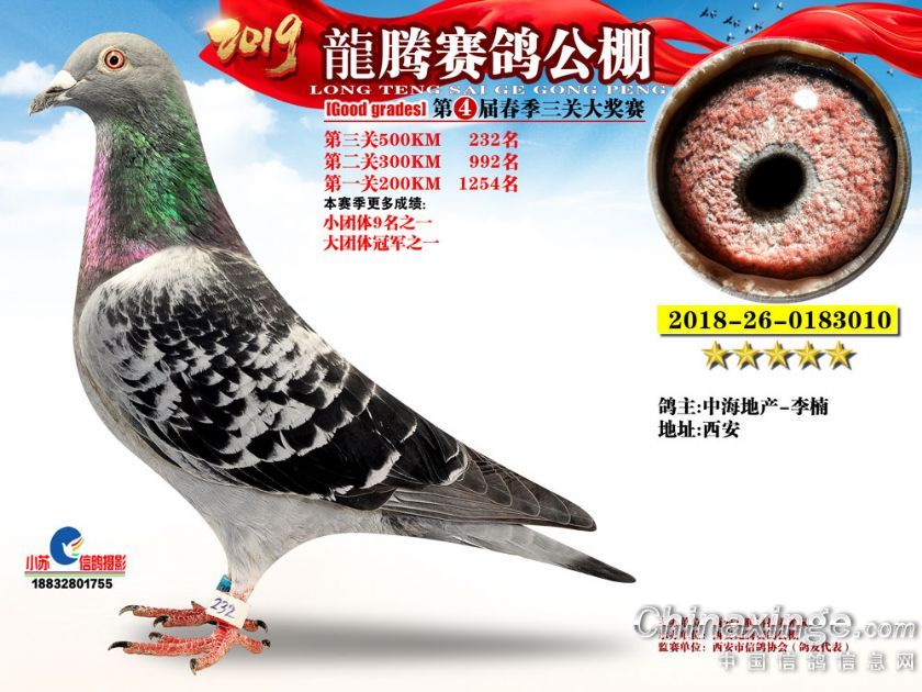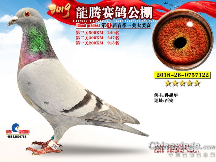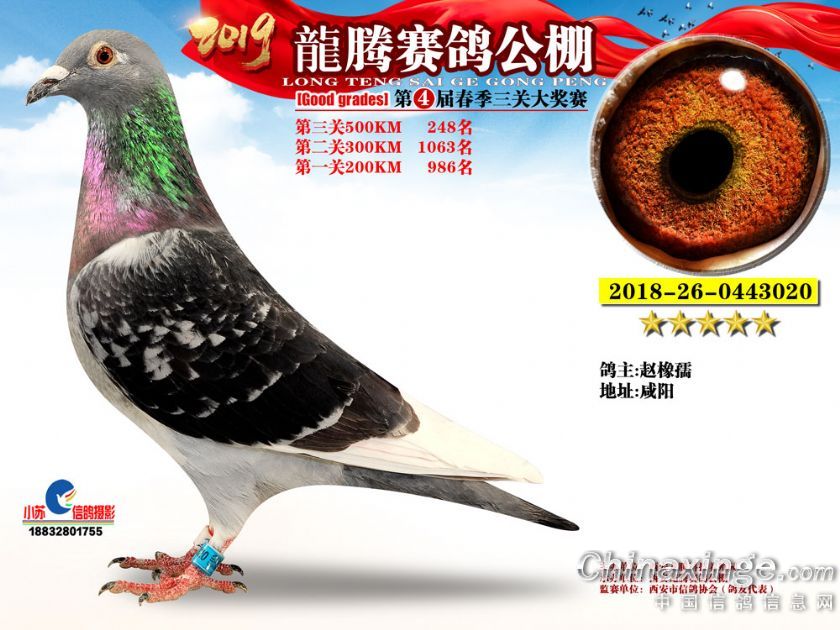 作品说明: 2019年春西安龙腾公棚获奖鸽欣赏