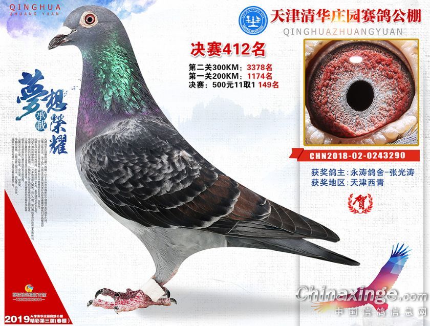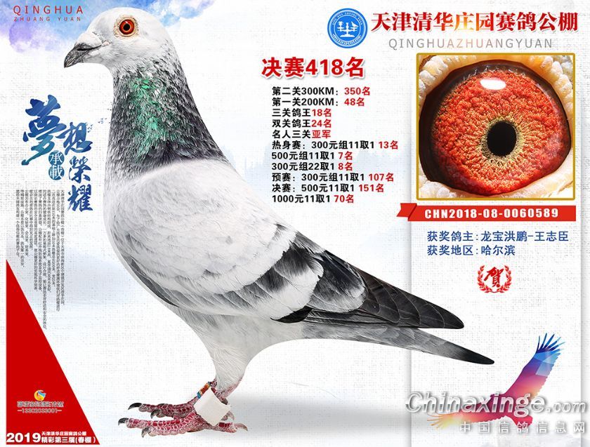 作品说明: 《天津清华庄园赛鸽公棚决赛奖鸽欣赏(301-420)名 》