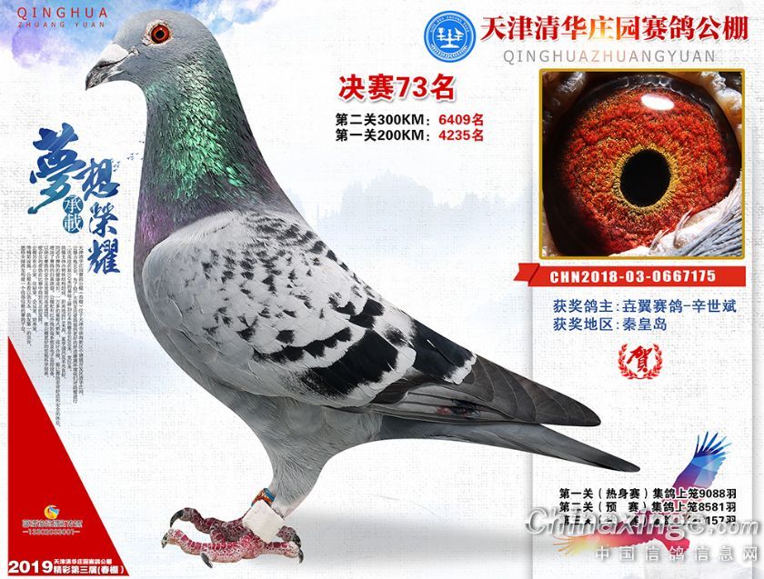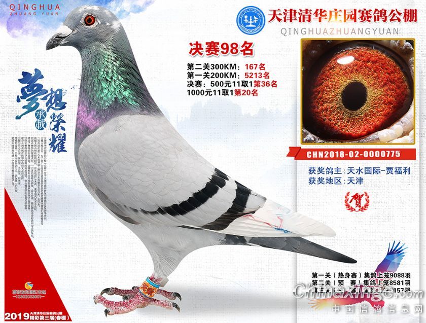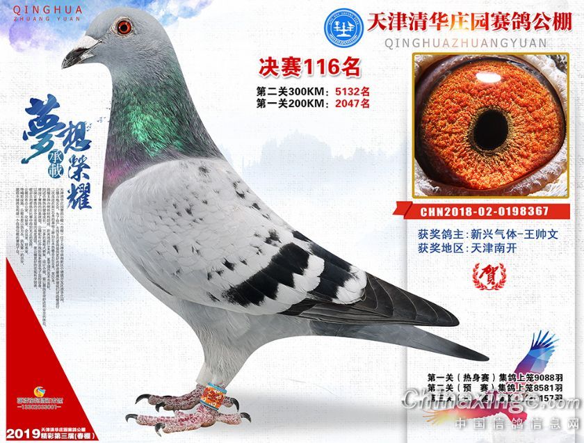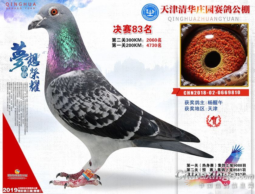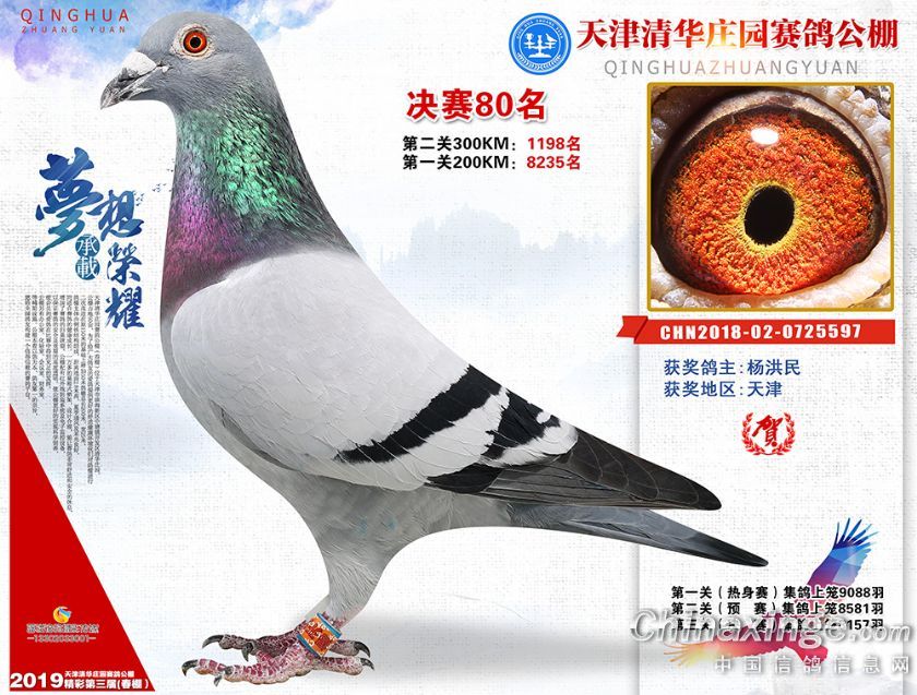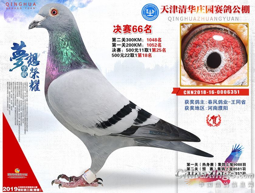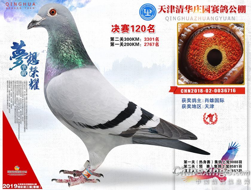 xuesijie 原创 2019/5/12 18:13:40 《天津清华庄园赛鸽公棚决赛奖鸽欣赏(1-60)名 0 93