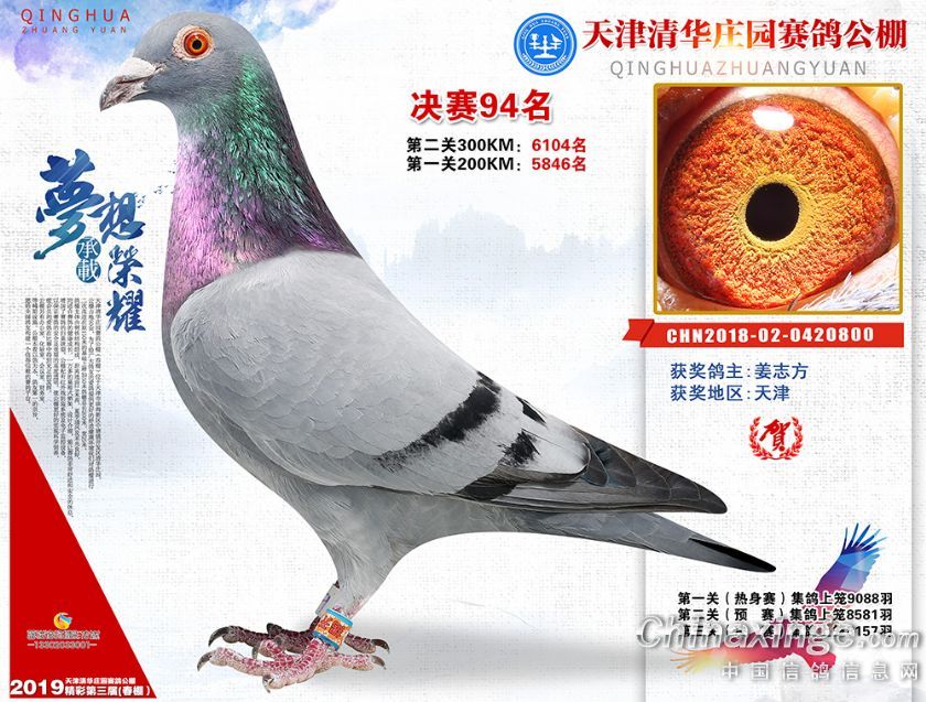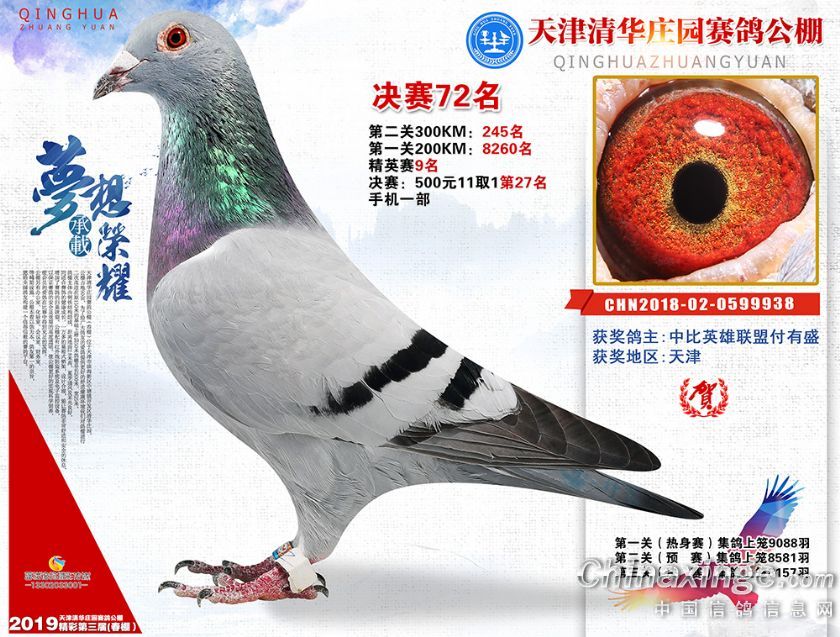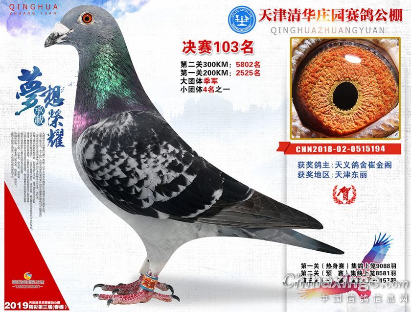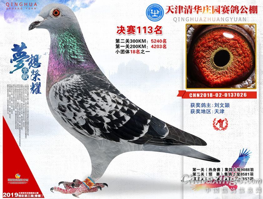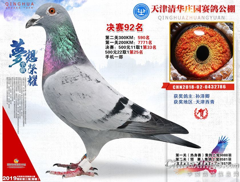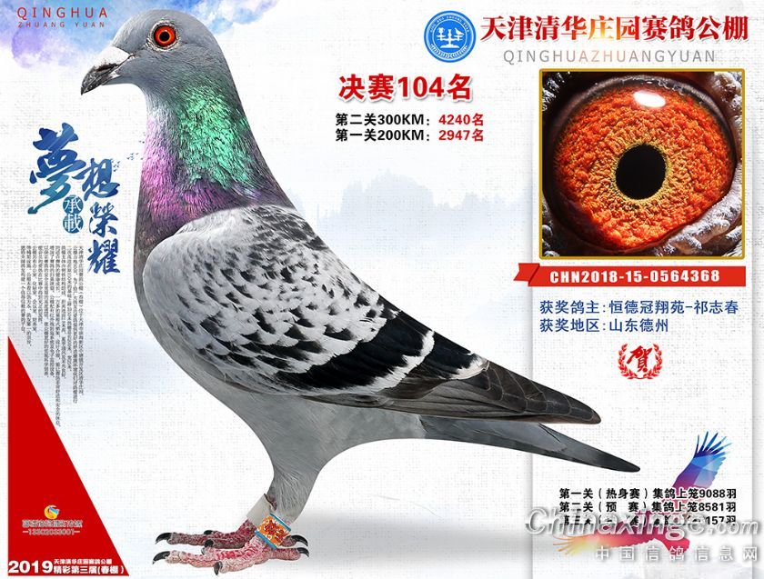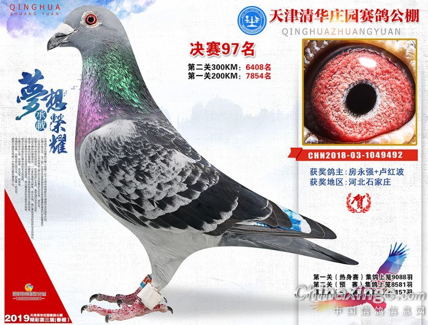 xuesijie 原创 2019/5/12 18:13:40 《天津清华庄园赛鸽公棚决赛奖鸽欣赏(1-60)名 0 93