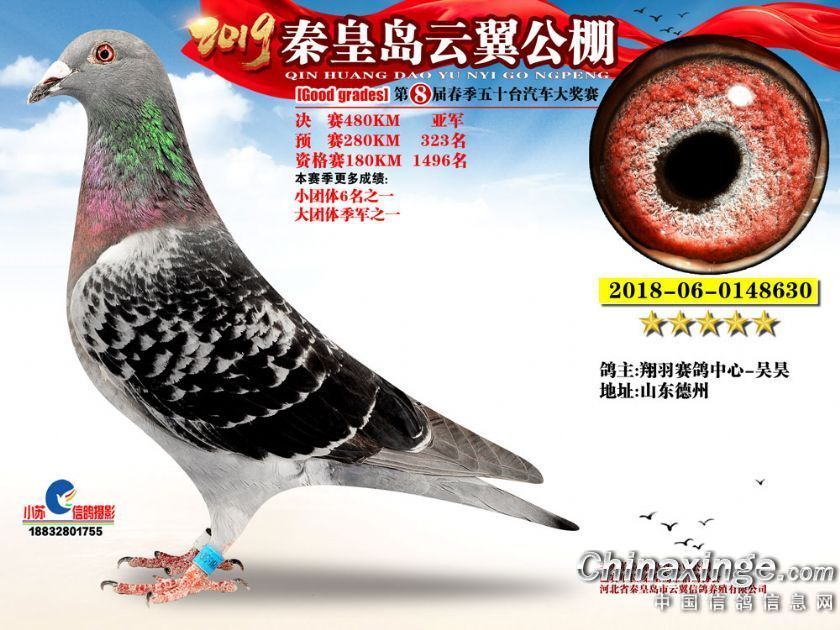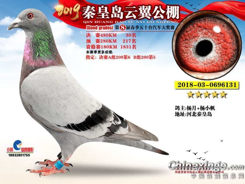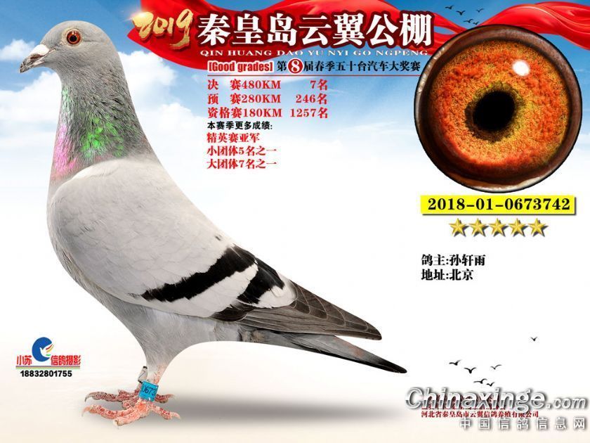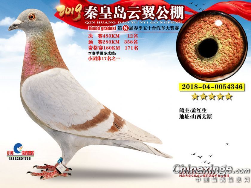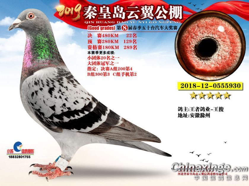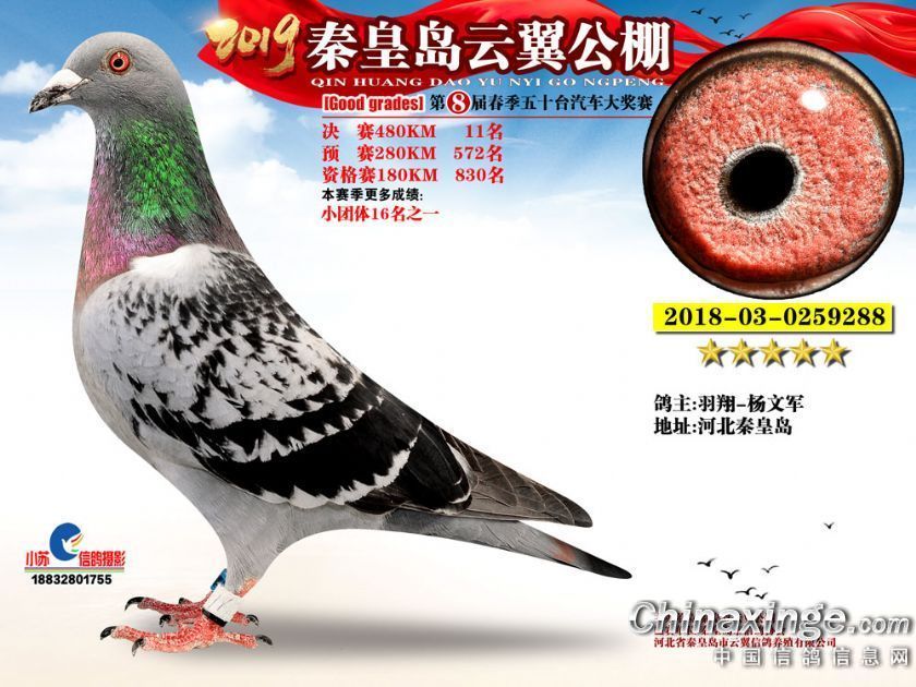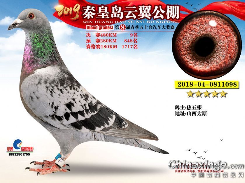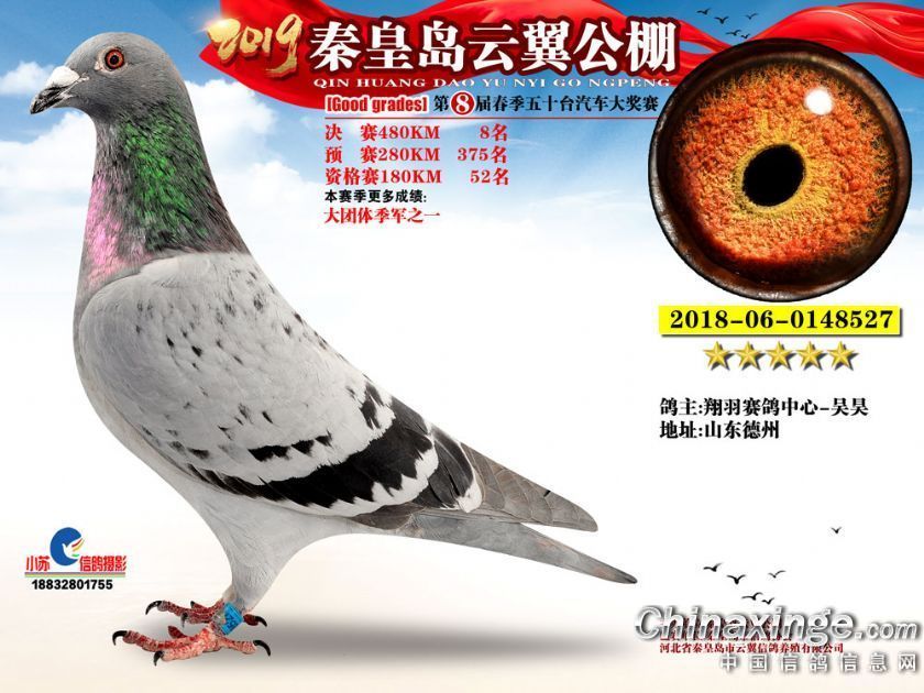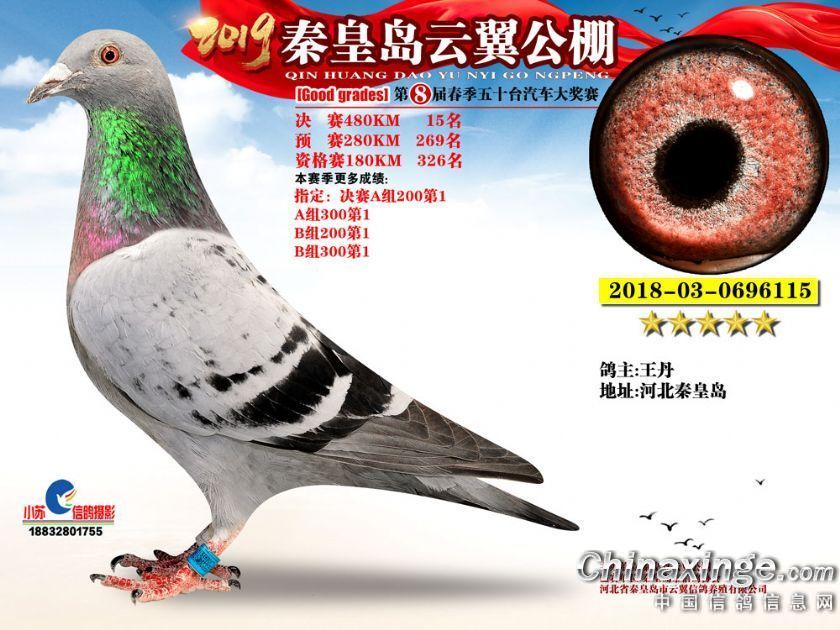 作品说明: 2019年秦皇岛云翼公棚获奖鸽