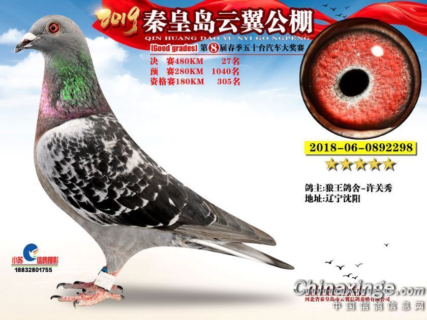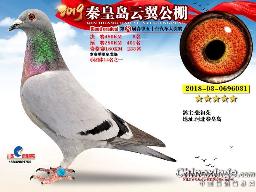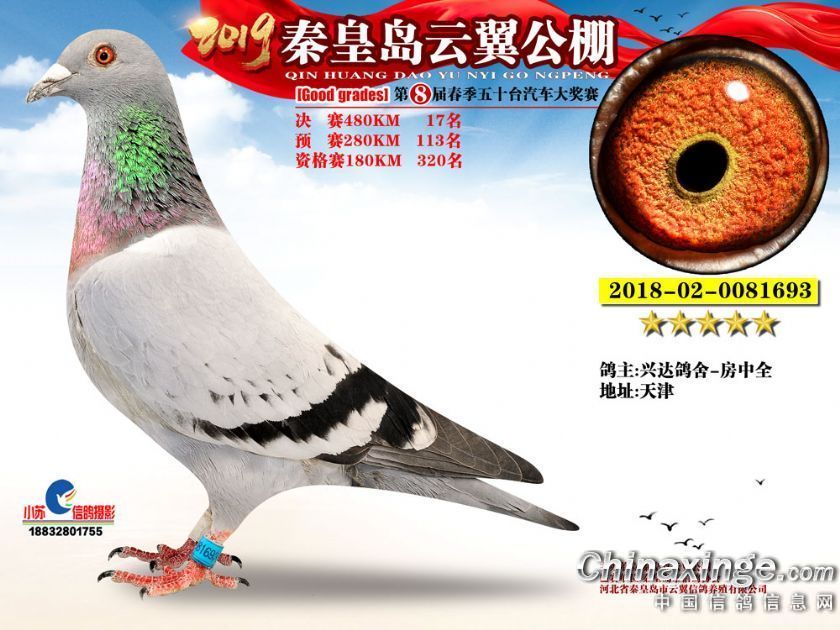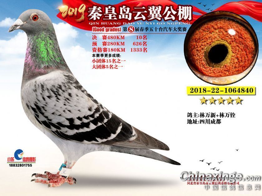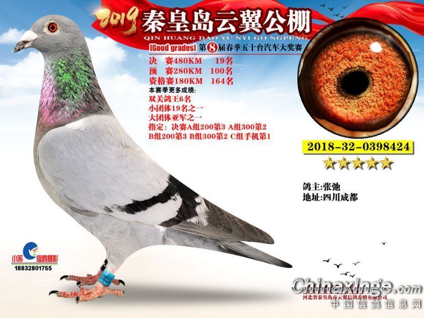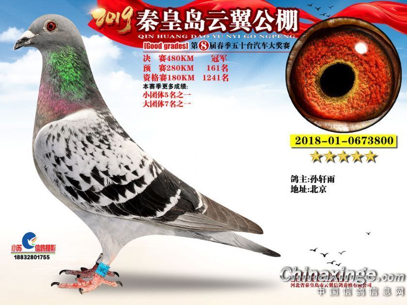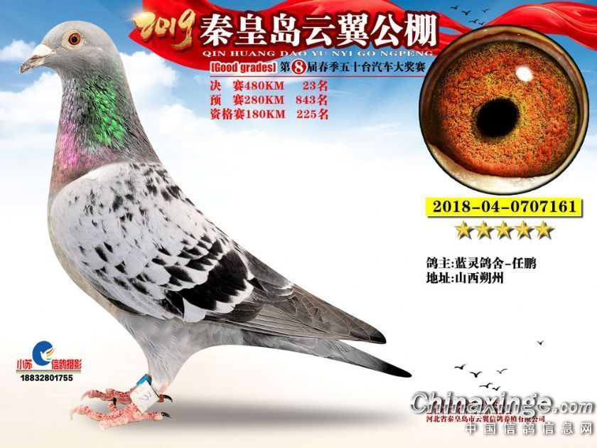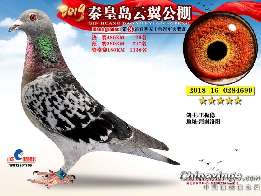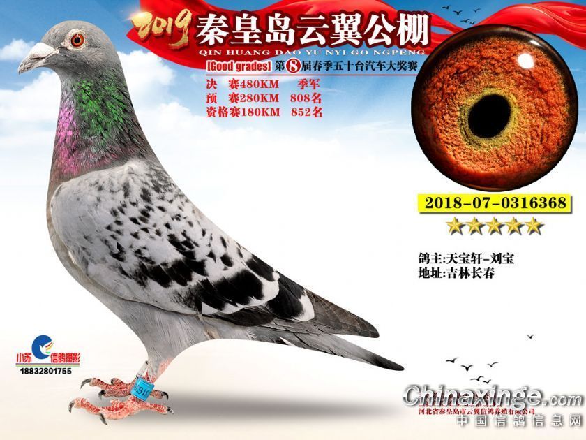 作品说明: 2019年秦皇岛云翼公棚获奖鸽