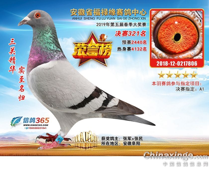 作品说明: 安徽福禄缘赛鸽中心2019年获奖鸽301-330名