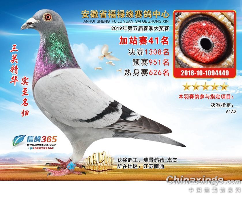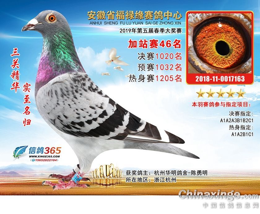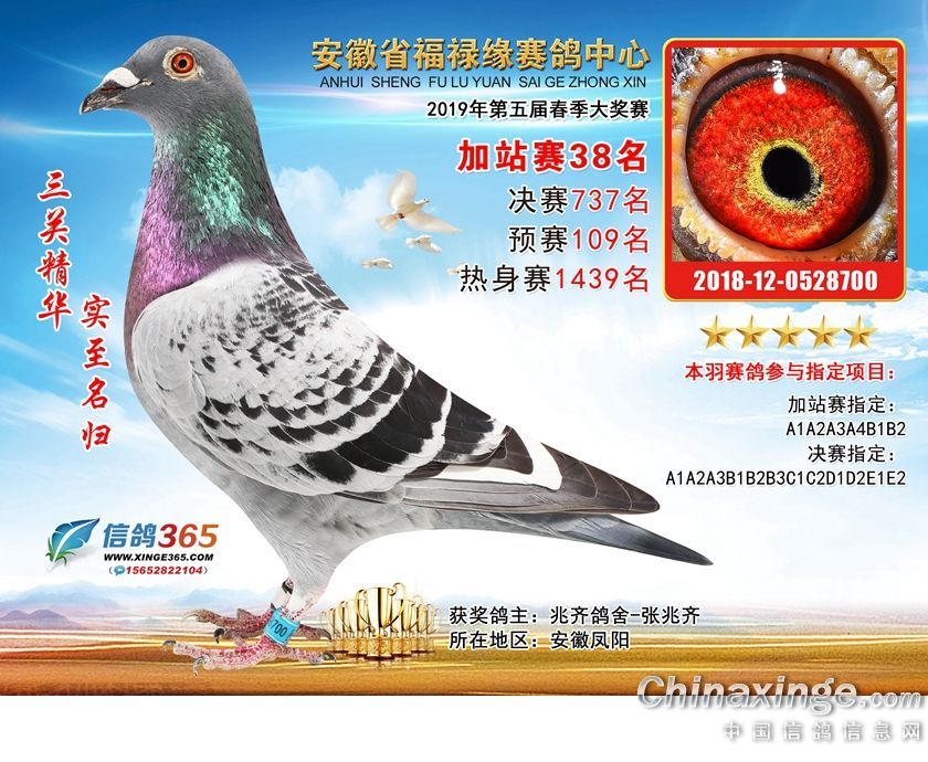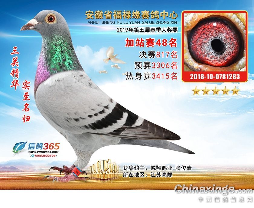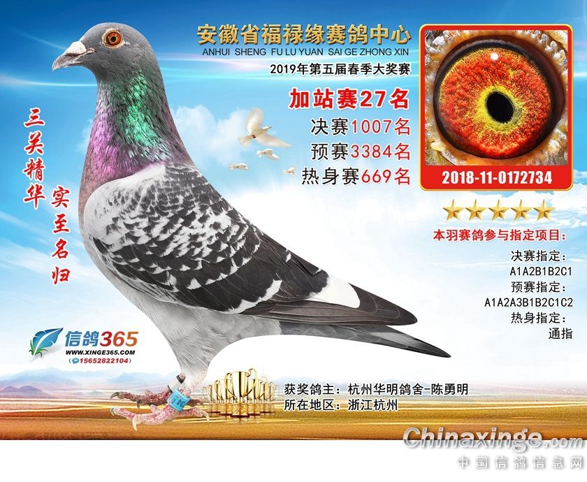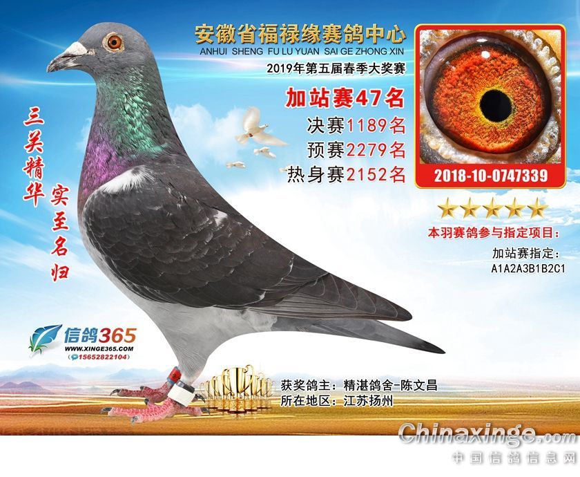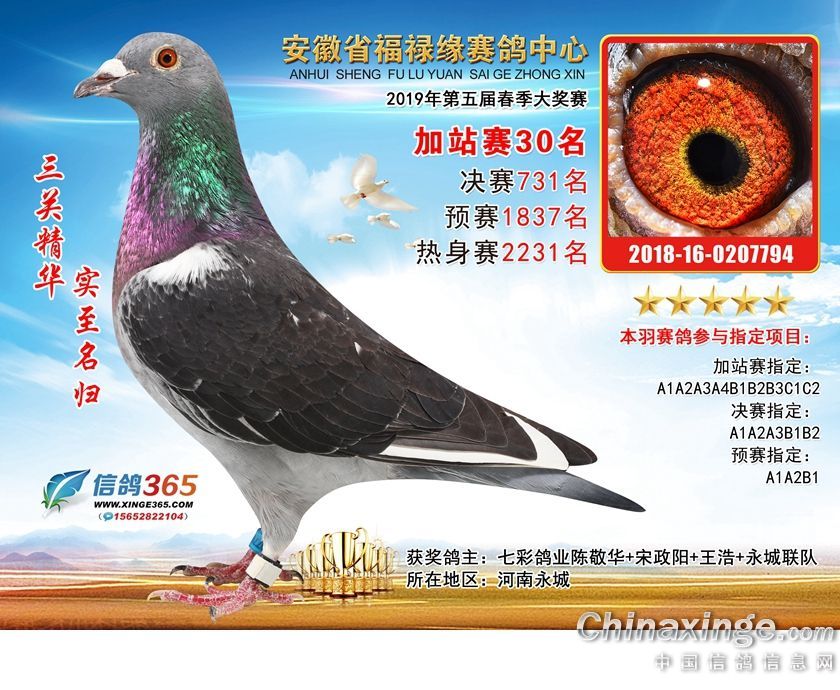 作品说明: 安徽福禄缘赛鸽中心2019年加站赛获奖鸽26-50名