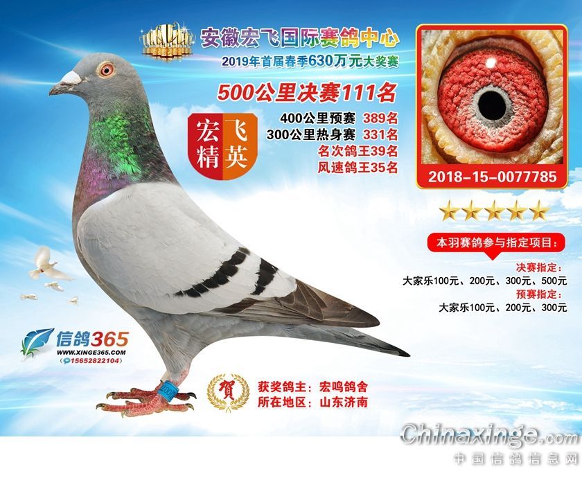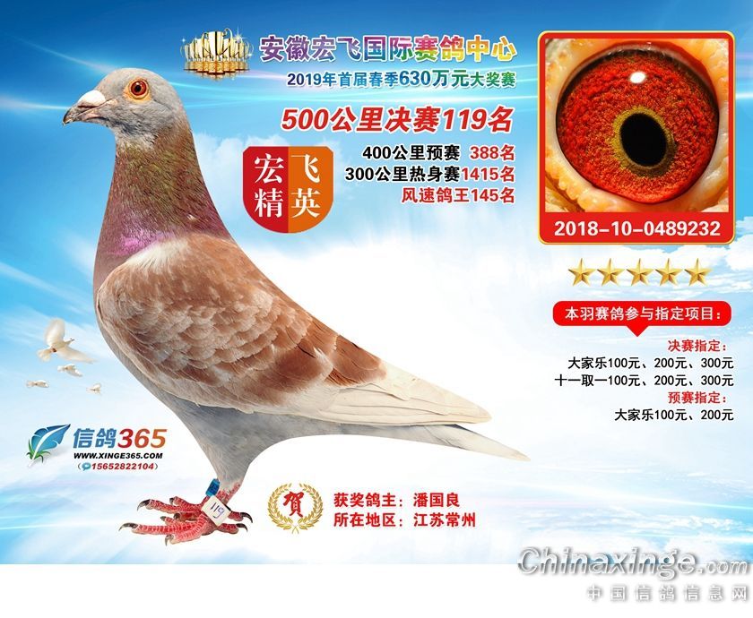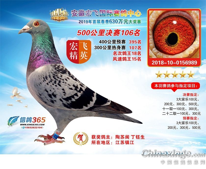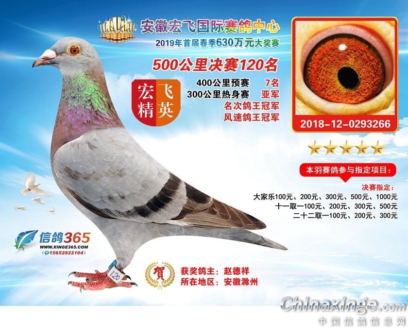 安徽宏飞国际赛鸽中心2019年春棚获奖鸽91-120名