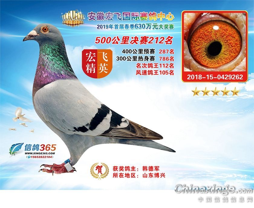 作品说明: 安徽宏飞国际赛鸽中心2019年春棚获奖鸽211-240名