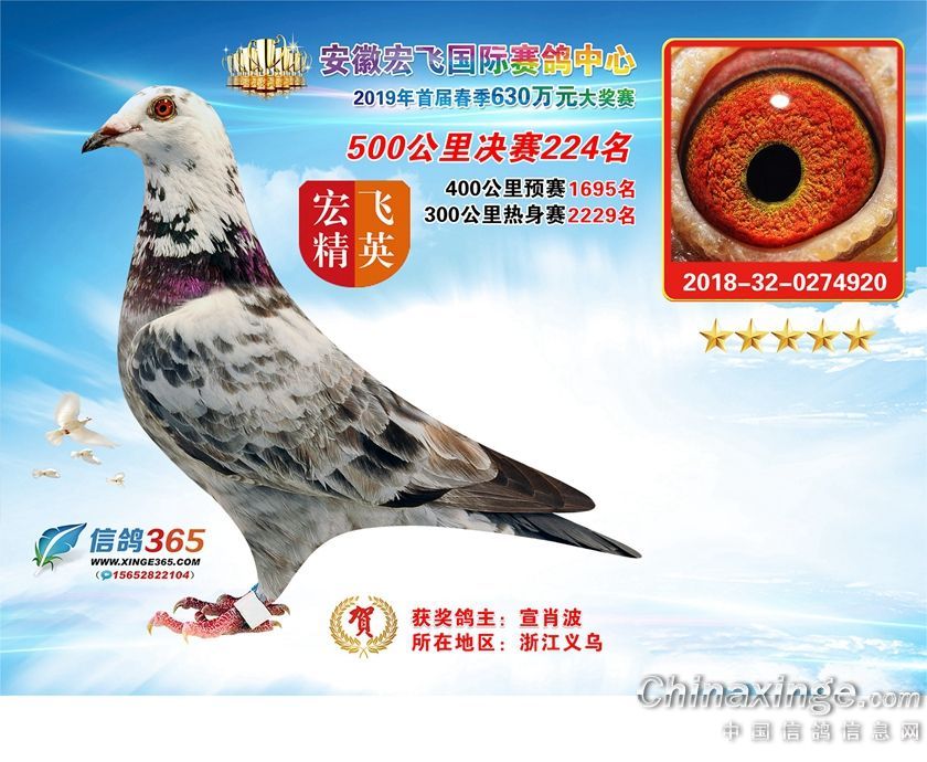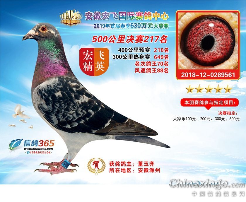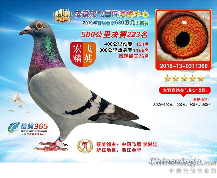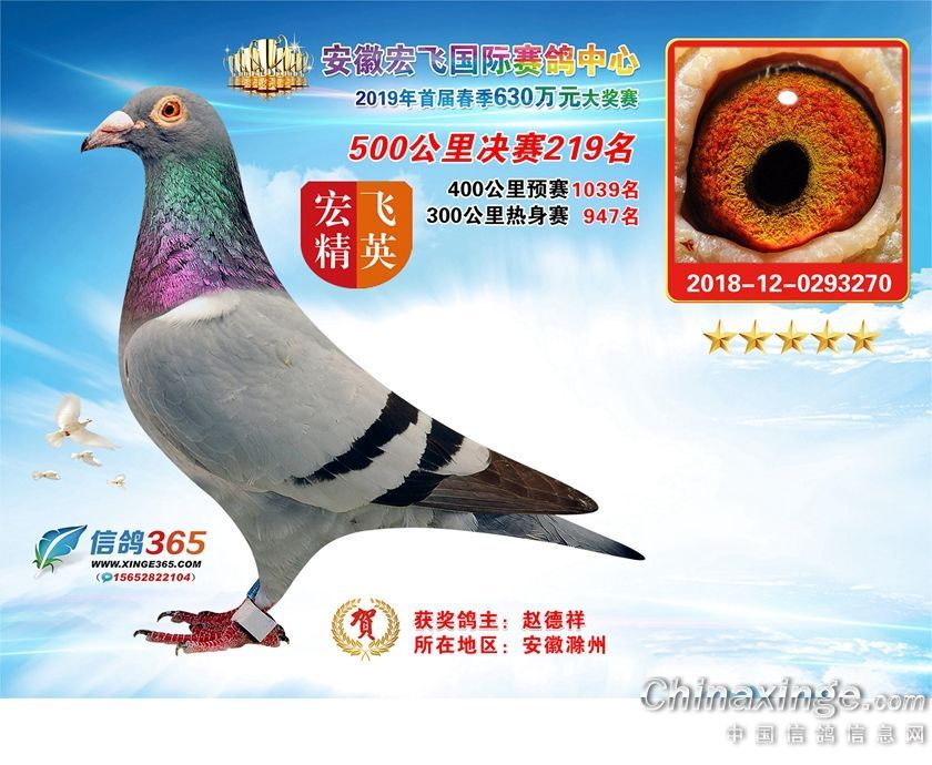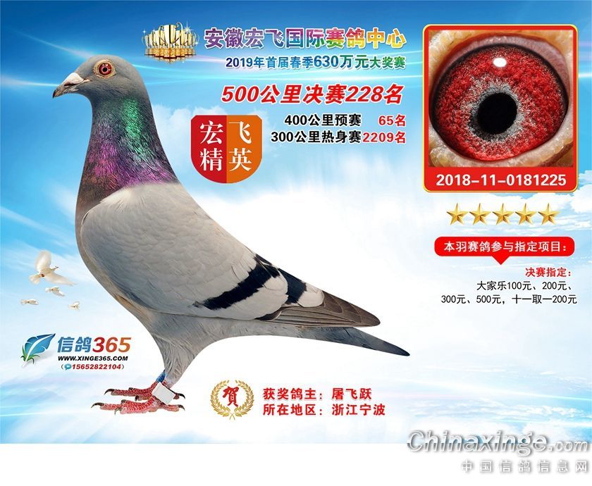 安徽宏飞国际赛鸽中心2019年春棚获奖鸽211-240名