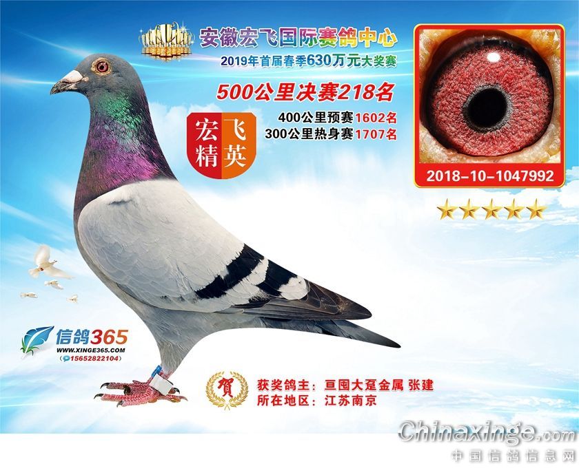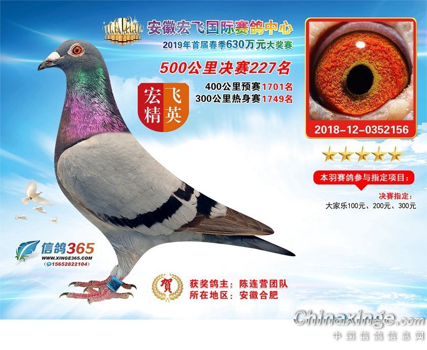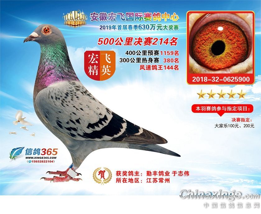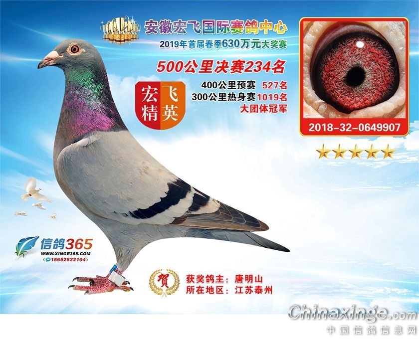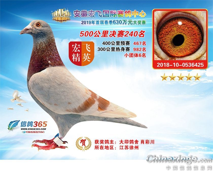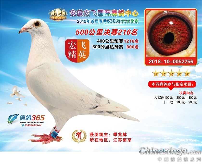 安徽宏飞国际赛鸽中心2019年春棚获奖鸽211-240名