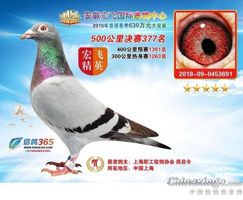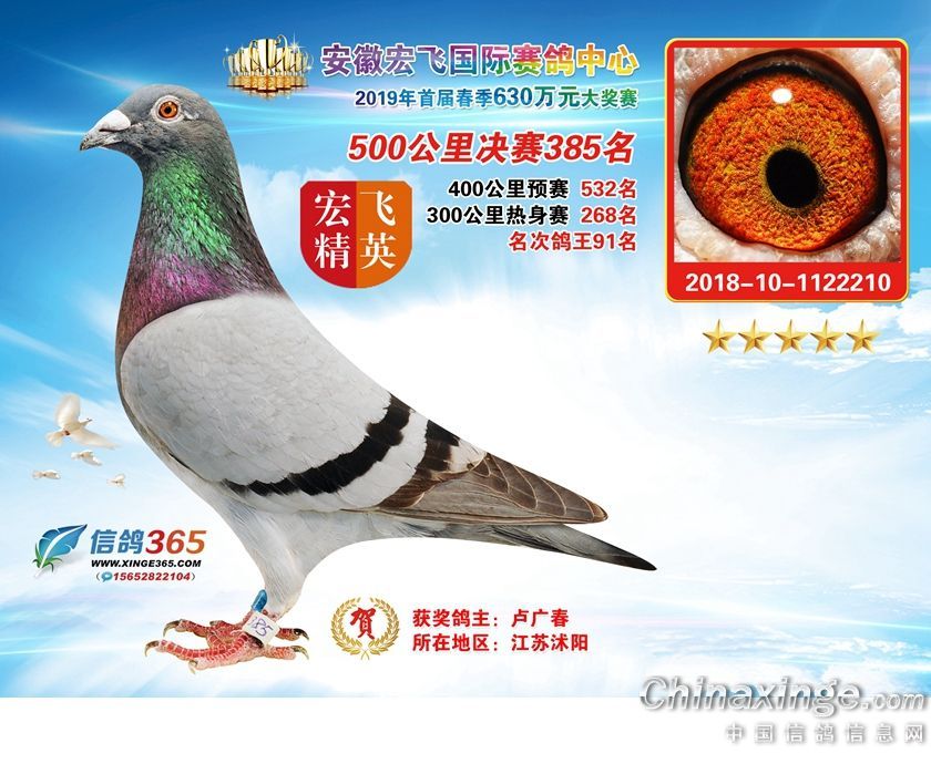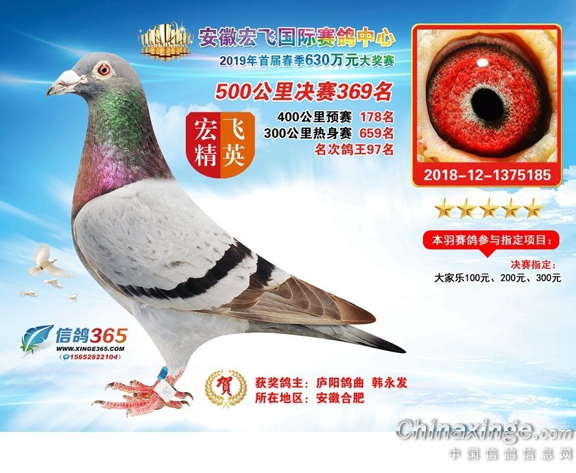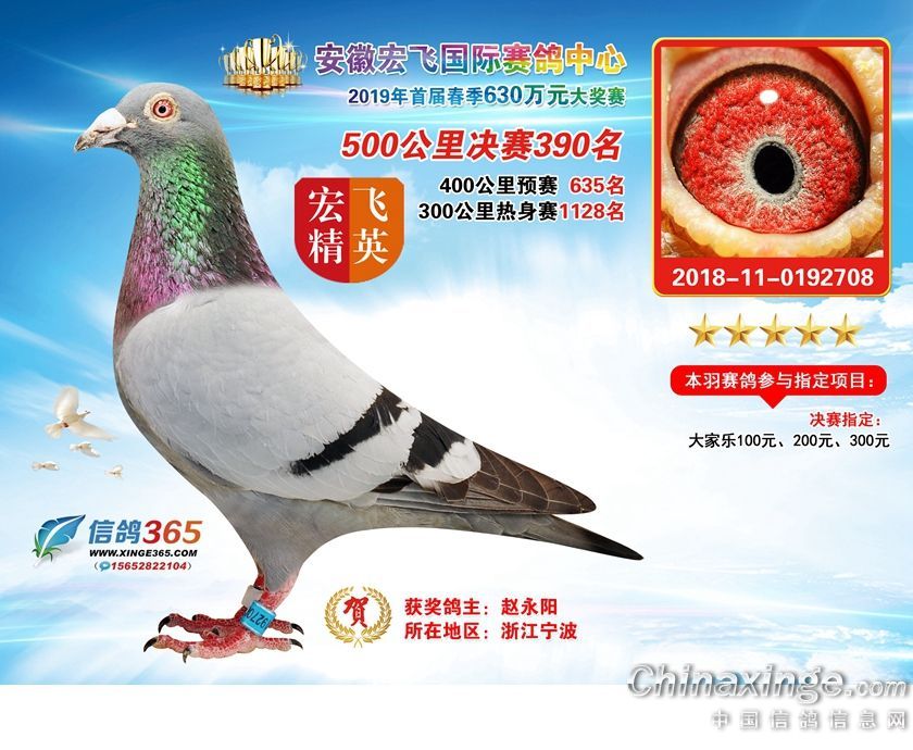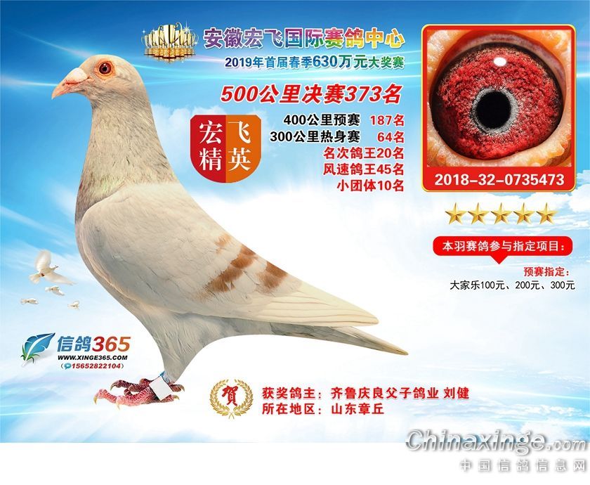 安徽宏飞国际赛鸽中心2019年春棚获奖鸽361-390名