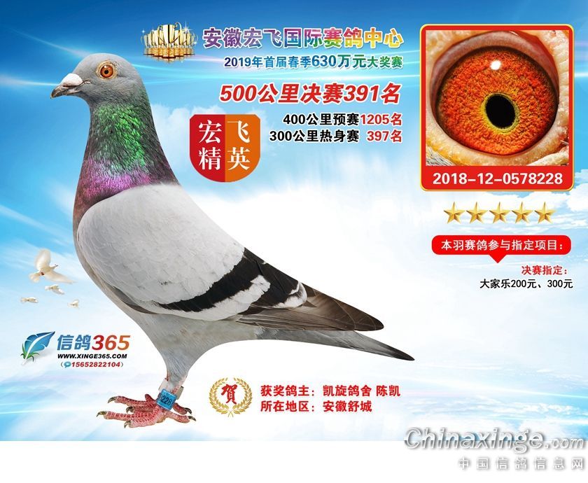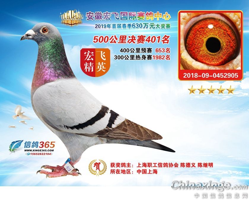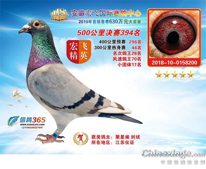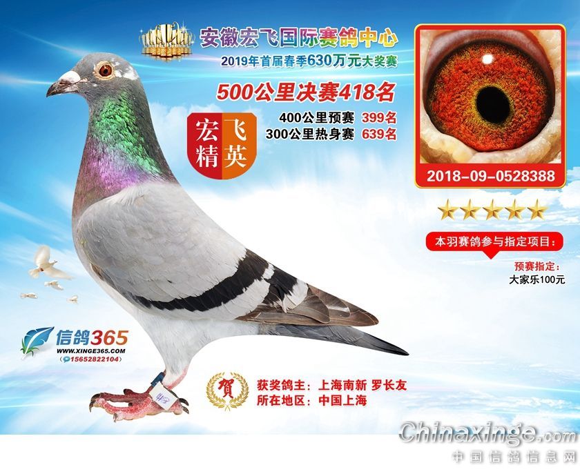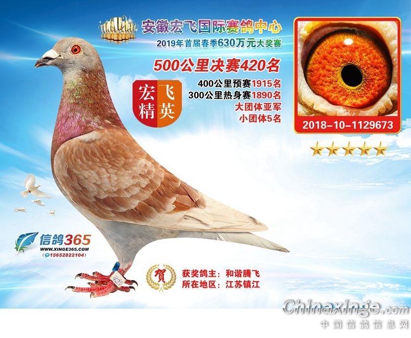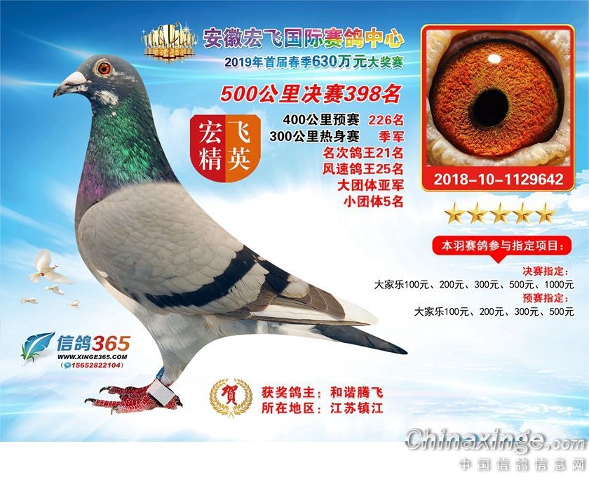 安徽宏飞国际赛鸽中心2019年春棚获奖鸽391-420名