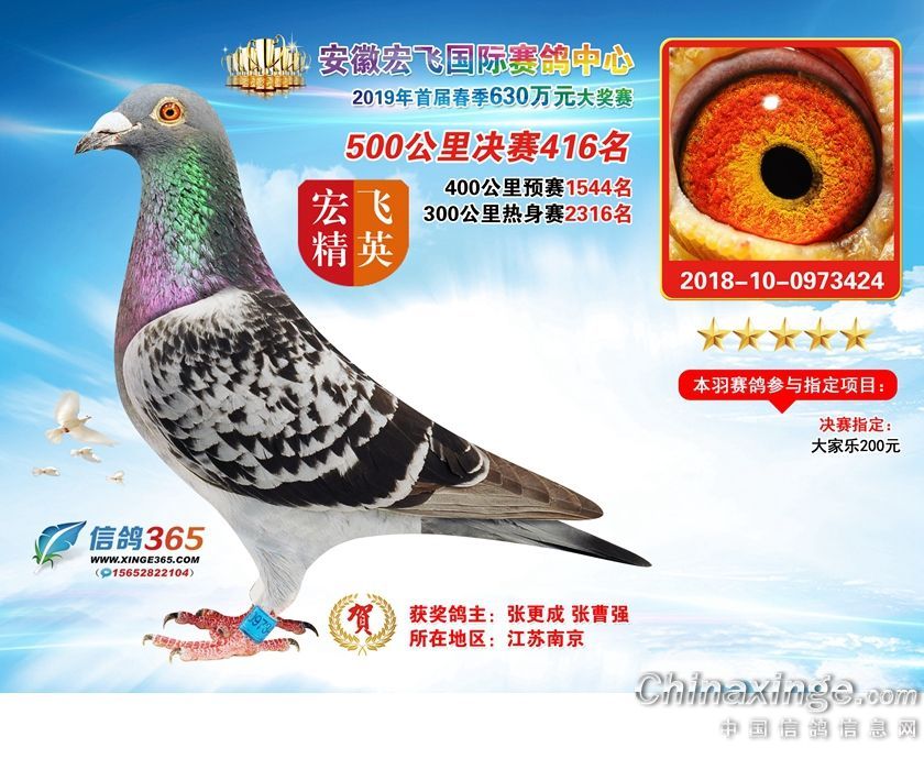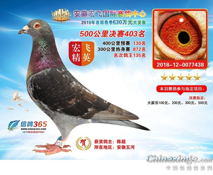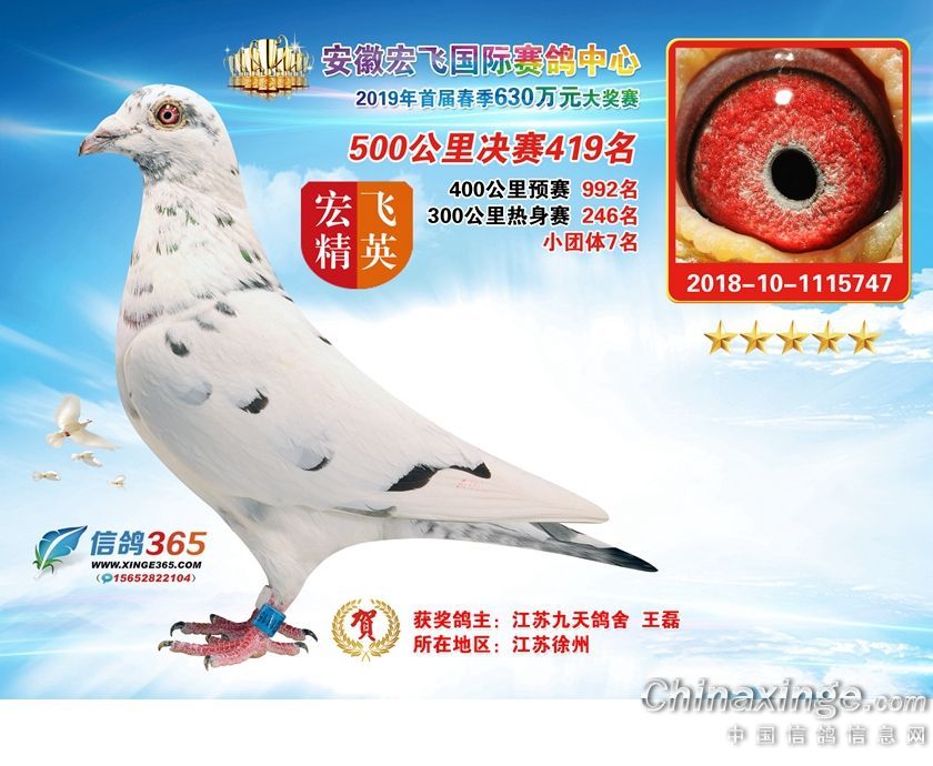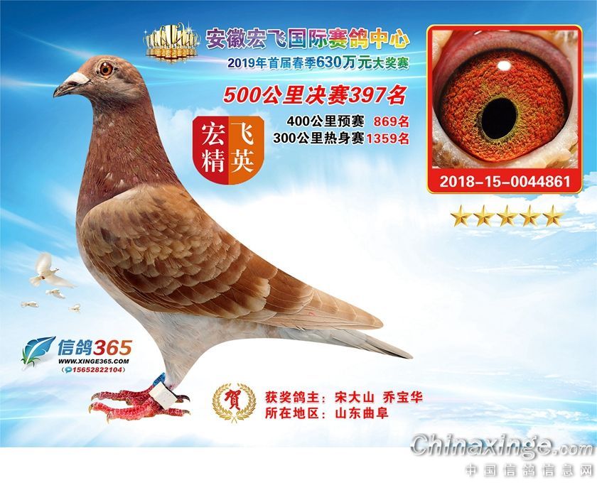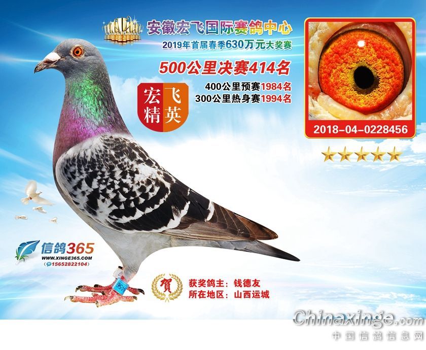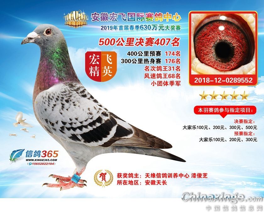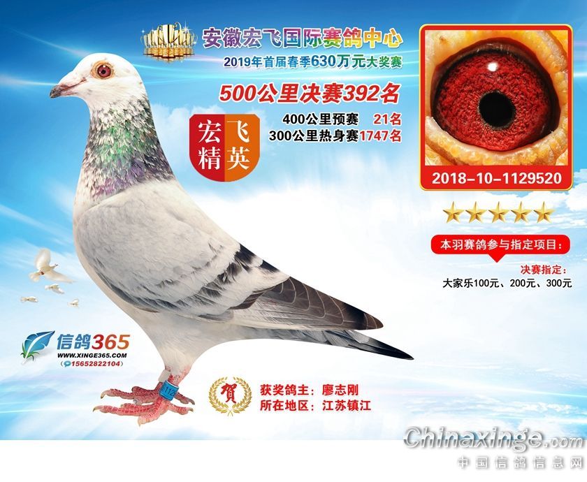 安徽宏飞国际赛鸽中心2019年春棚获奖鸽391-420名