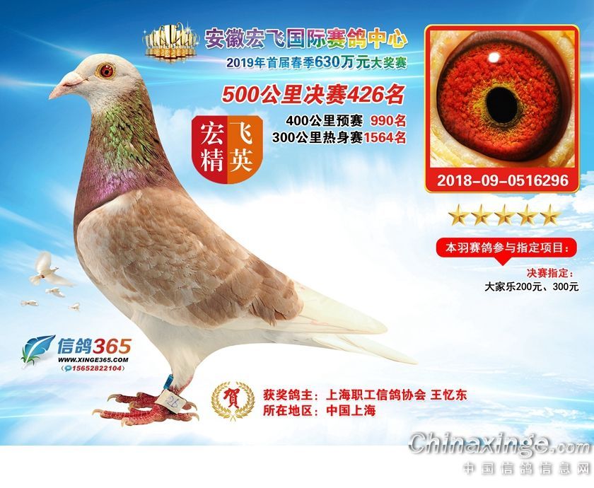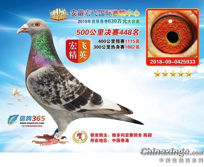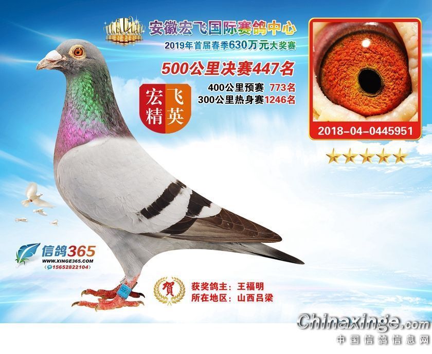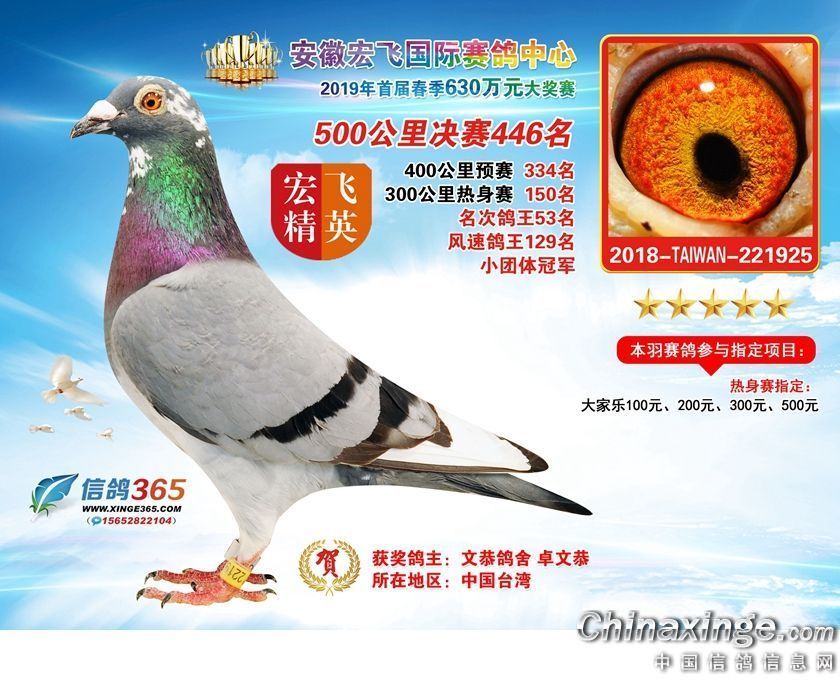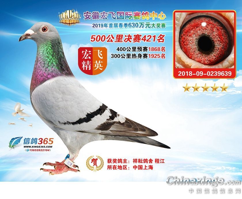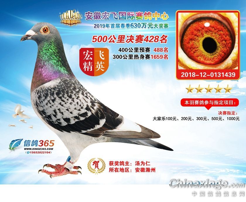 安徽宏飞国际赛鸽中心2019年春棚获奖鸽421-450名