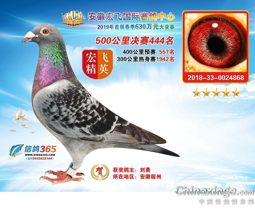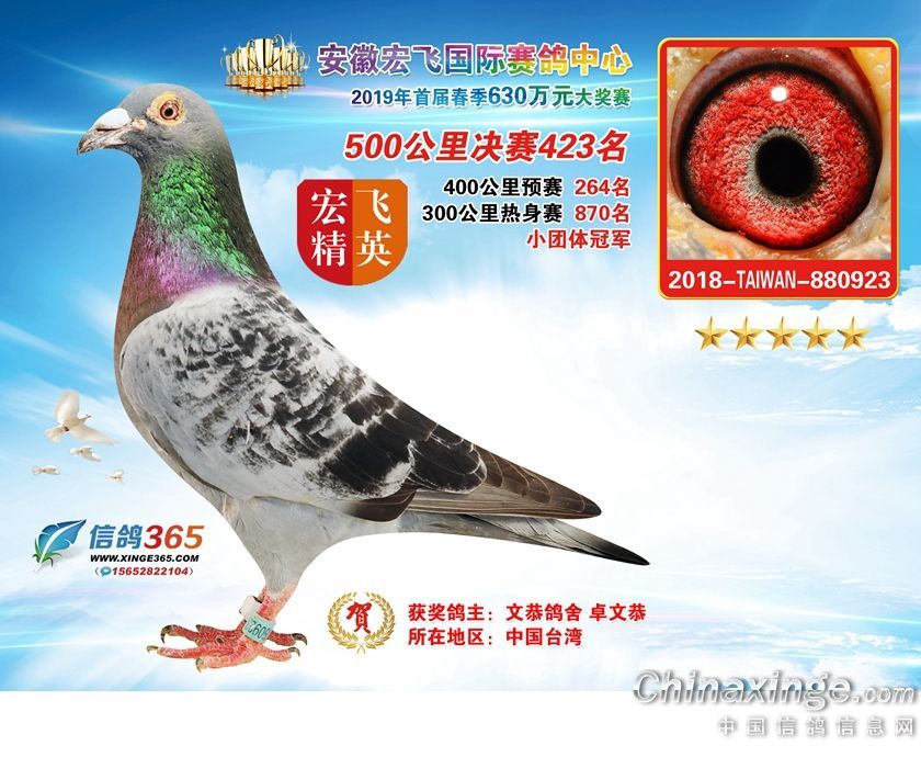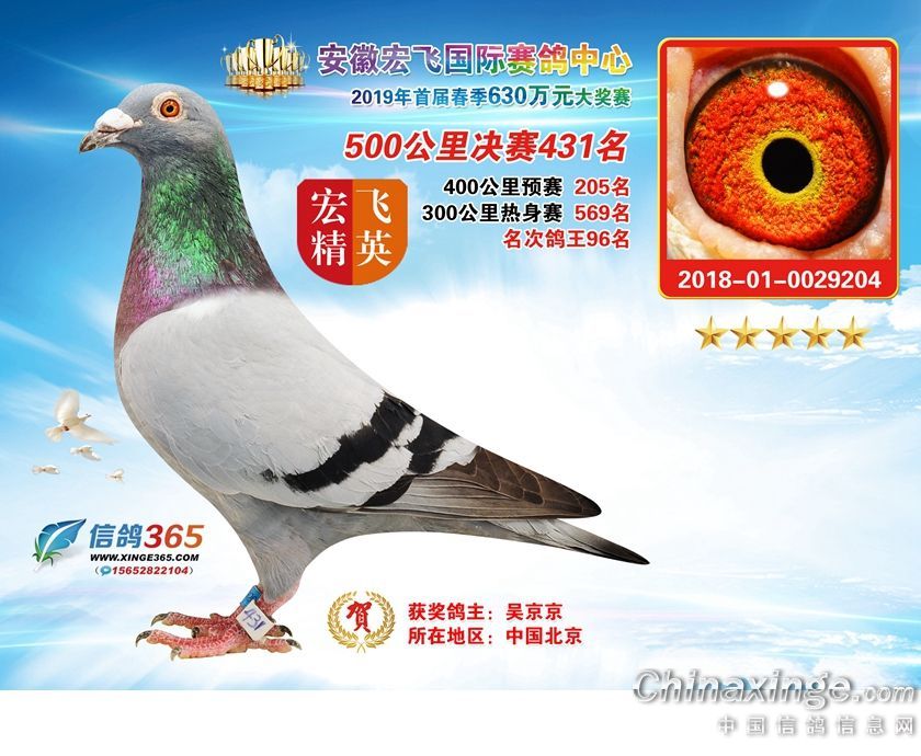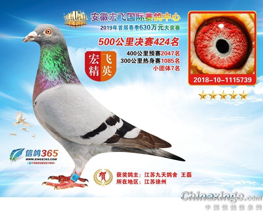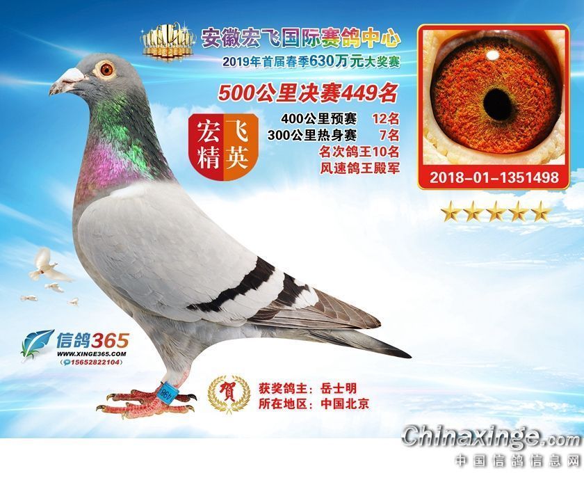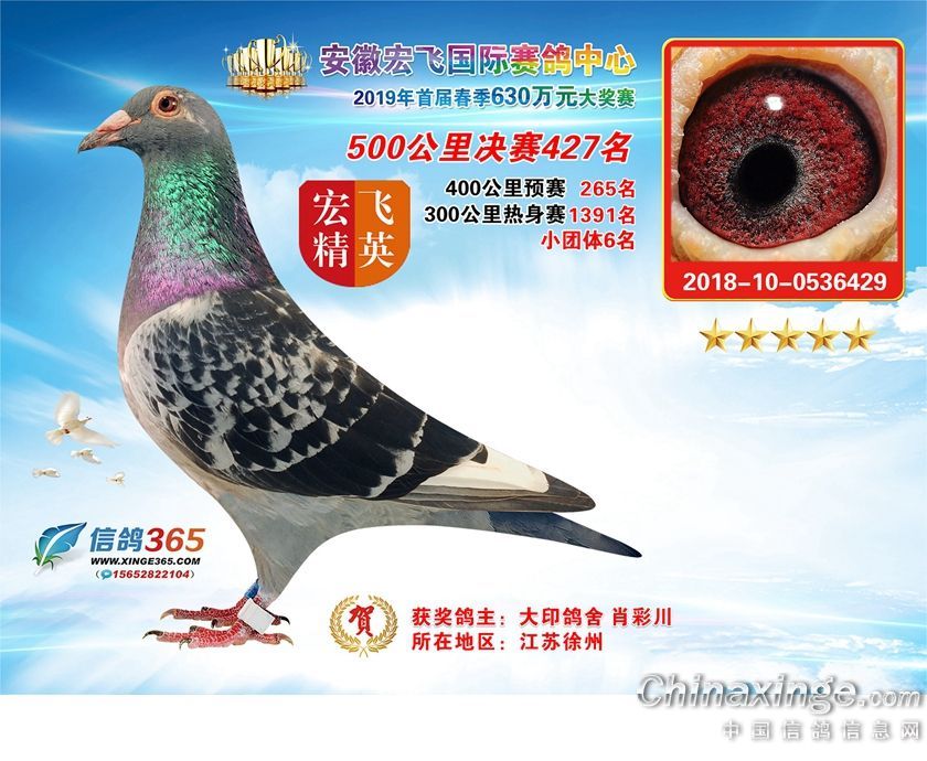 安徽宏飞国际赛鸽中心2019年春棚获奖鸽421-450名