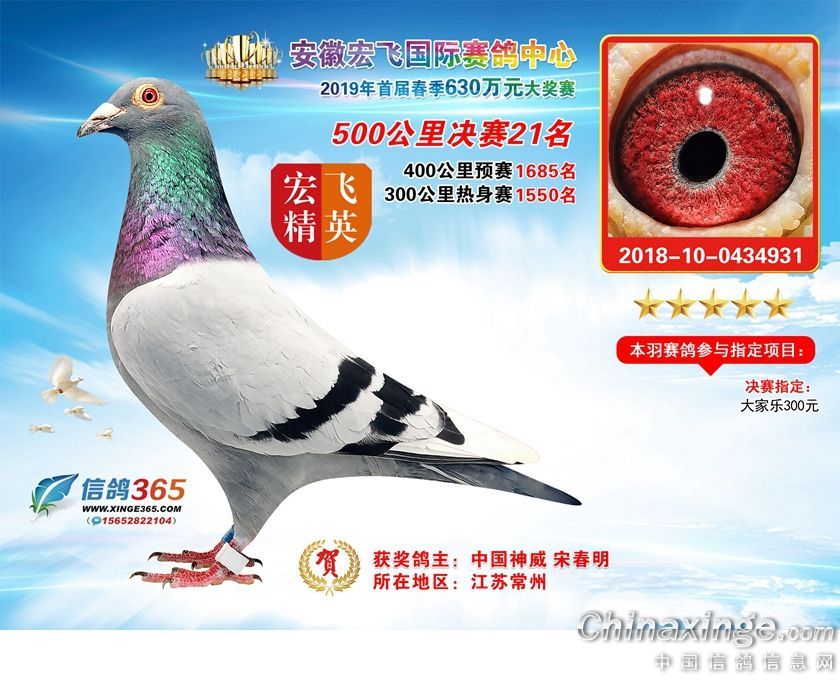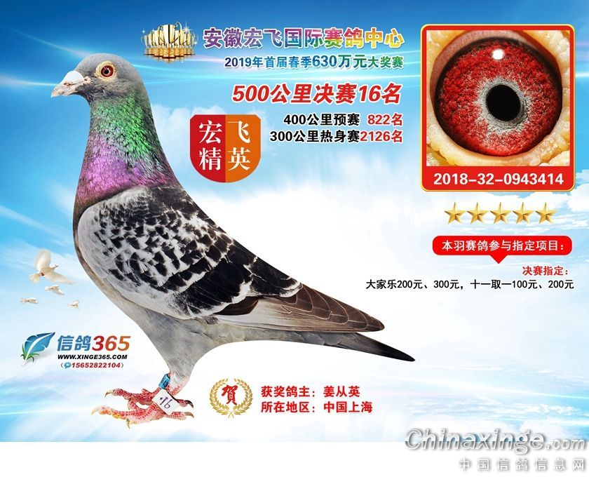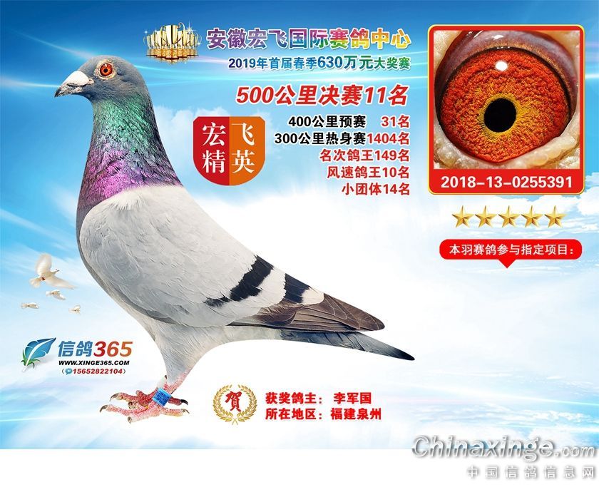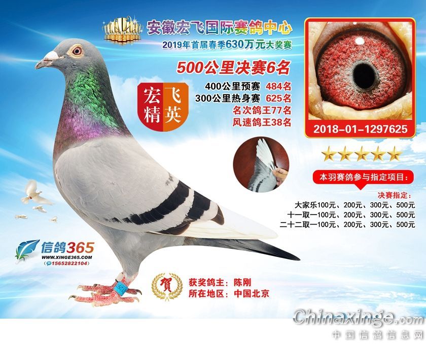 宏飞国际赛鸽中心2019年春棚获奖鸽1-30名