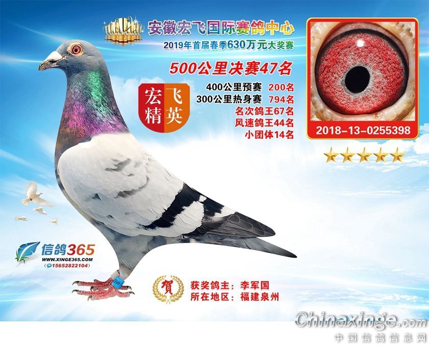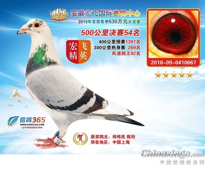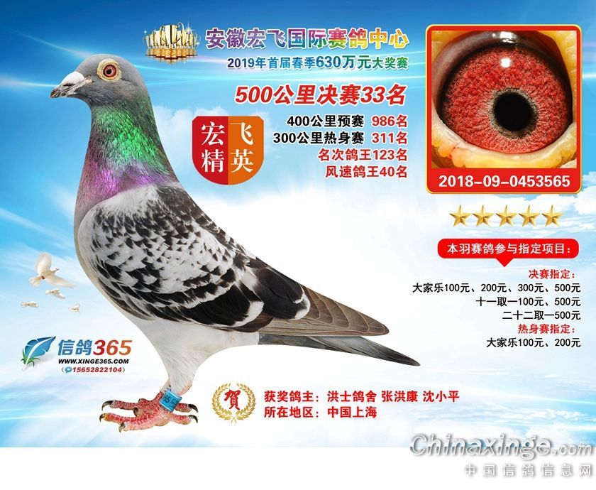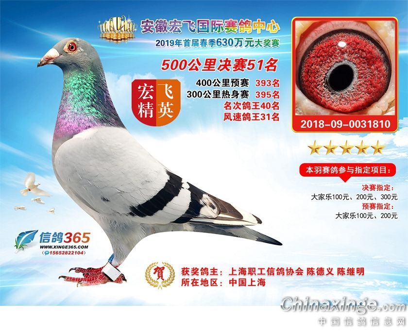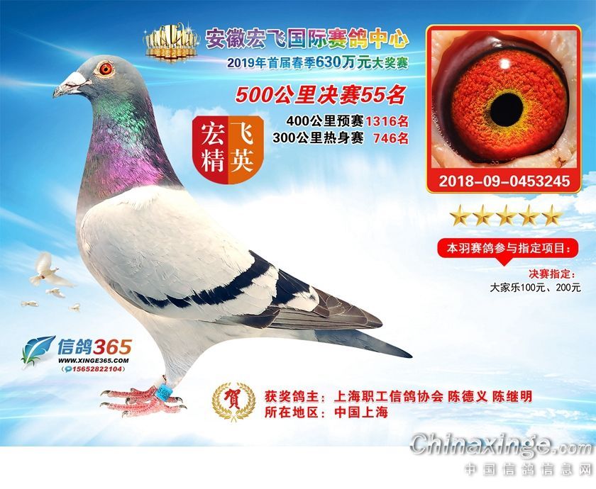 宏飞国际赛鸽中心2019年春棚获奖鸽31-60名