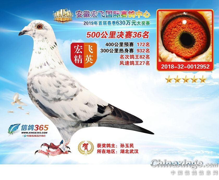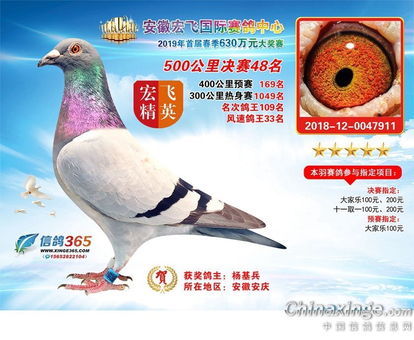 作品说明: 宏飞国际赛鸽中心2019年春棚获奖鸽31-60名