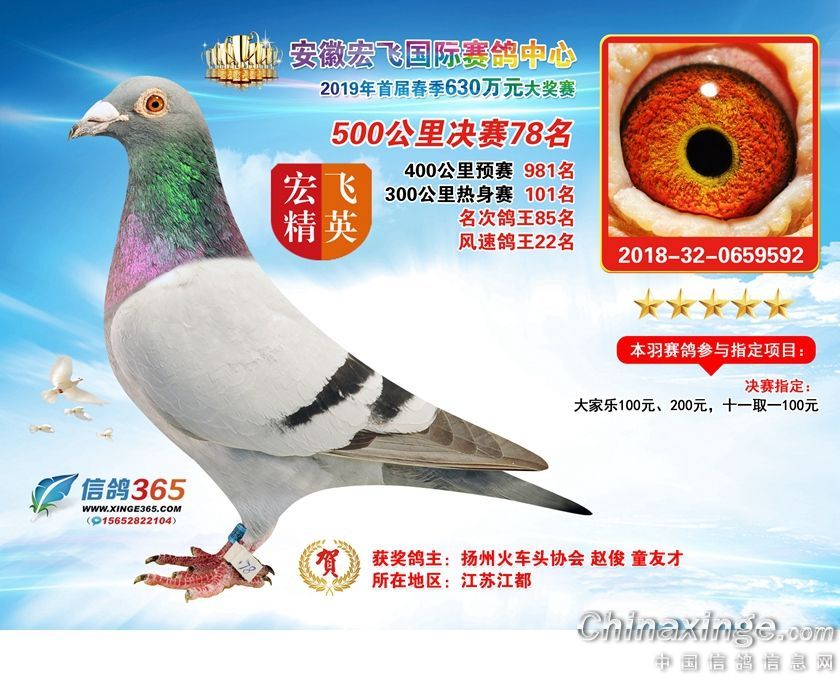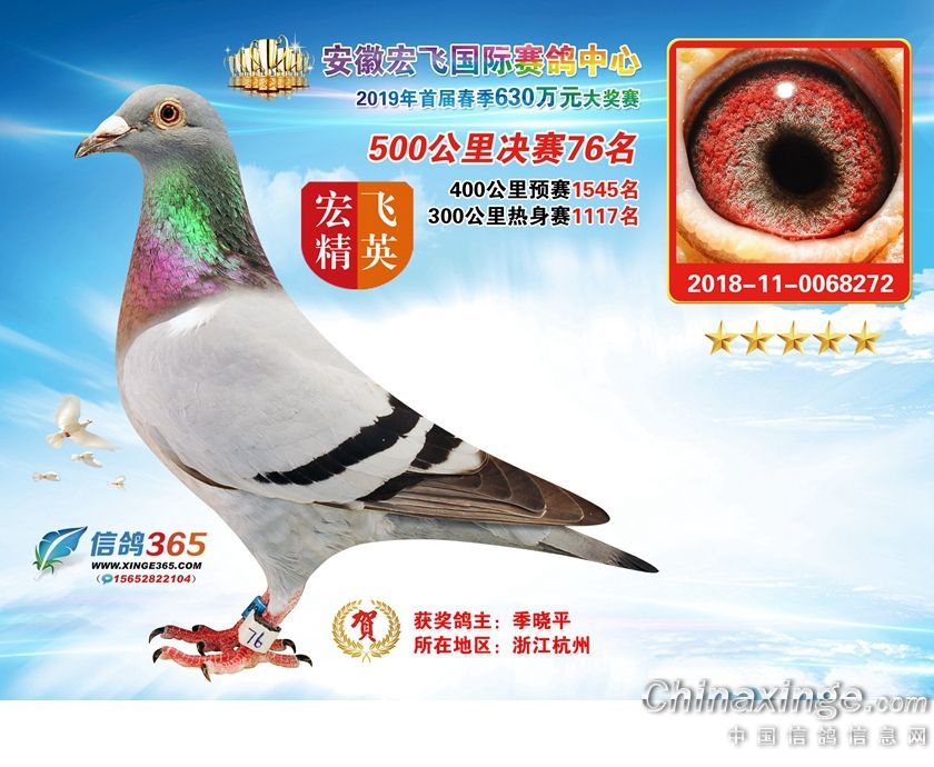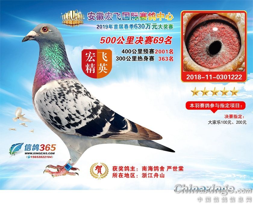 宏飞国际赛鸽中心2019年春棚获奖鸽61-90名