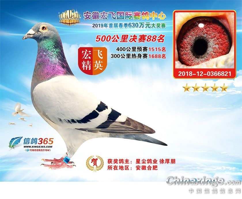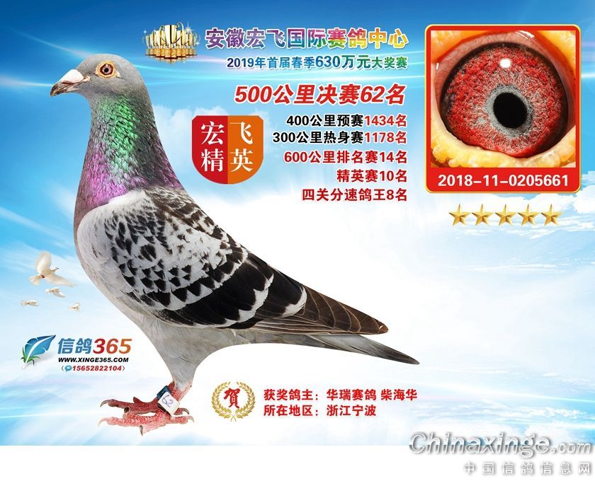 作品说明: 宏飞国际赛鸽中心2019年春棚获奖鸽61-90名