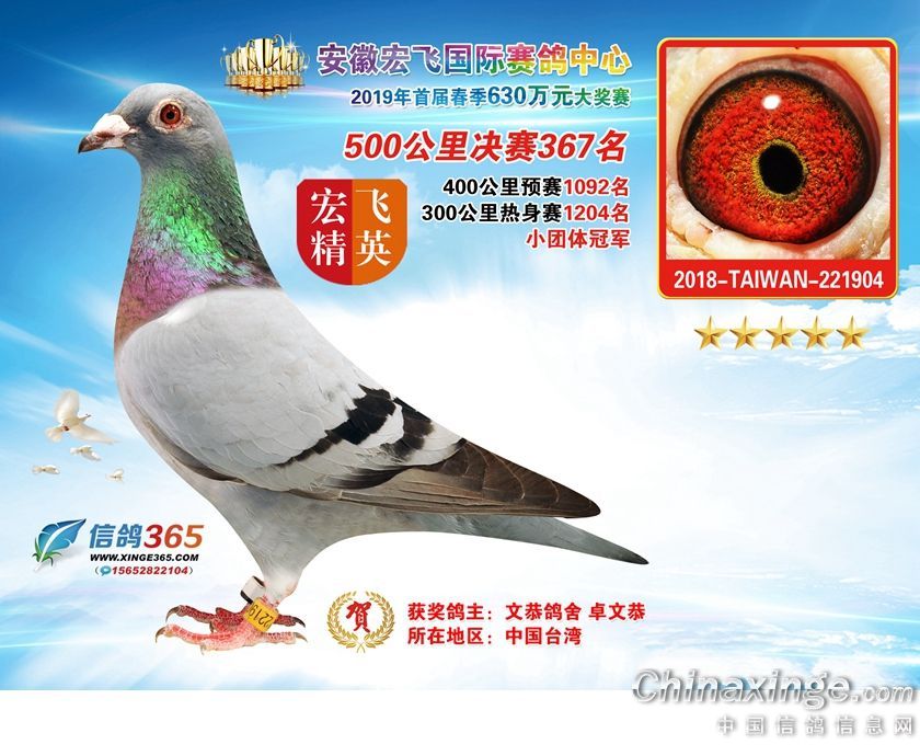 宏飞国际赛鸽中心2019年春棚获奖鸽361-390名