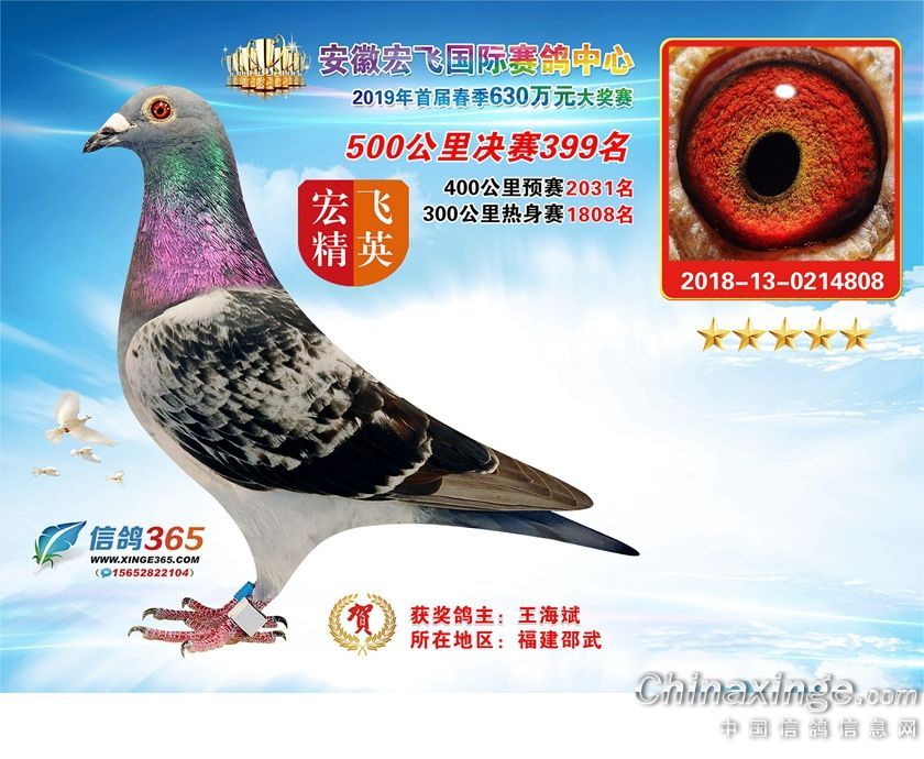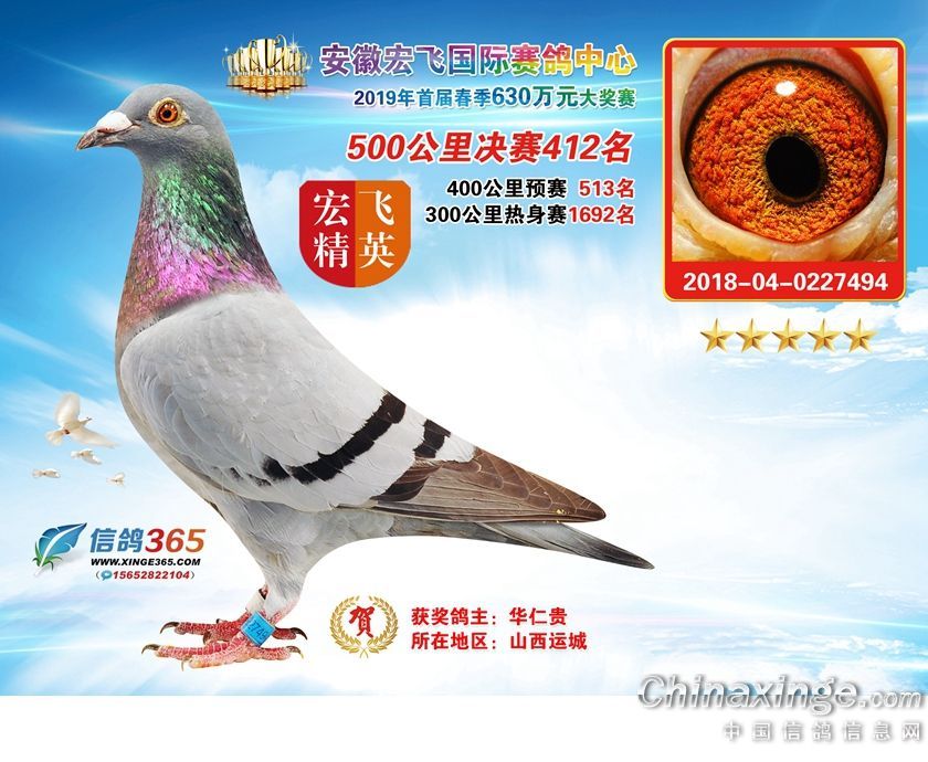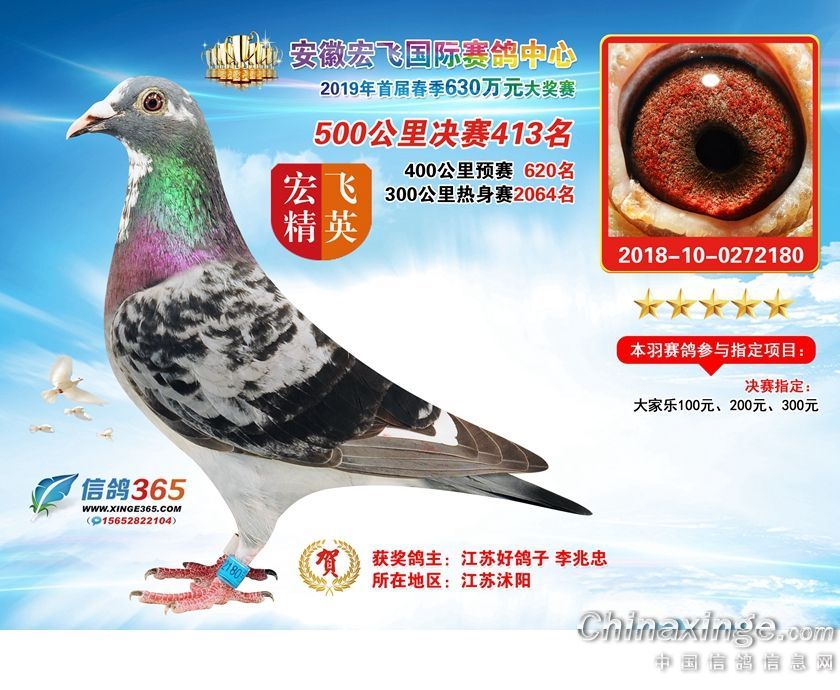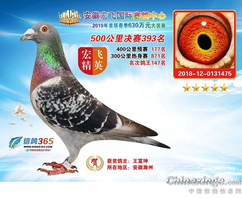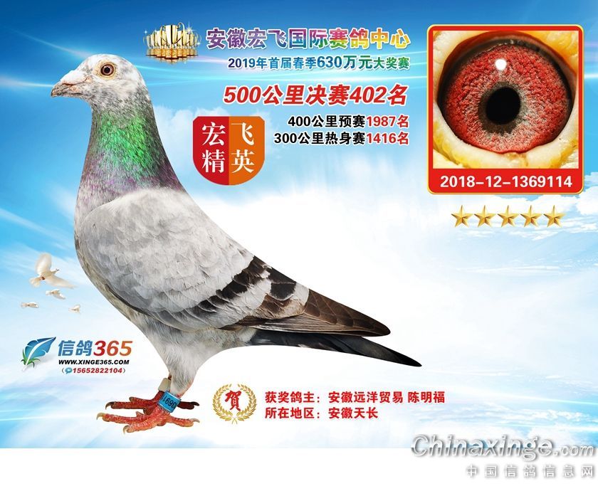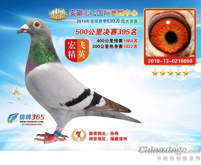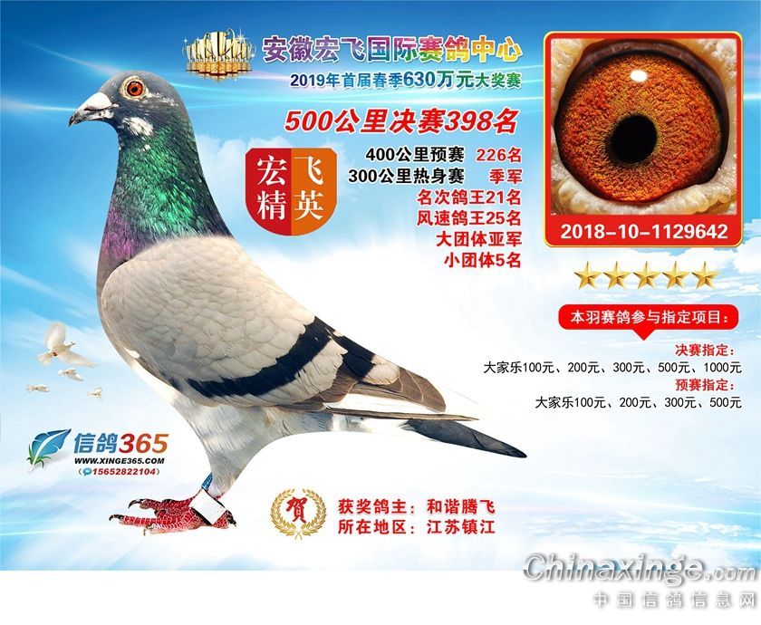 宏飞国际赛鸽中心2019年春棚获奖鸽391-420名