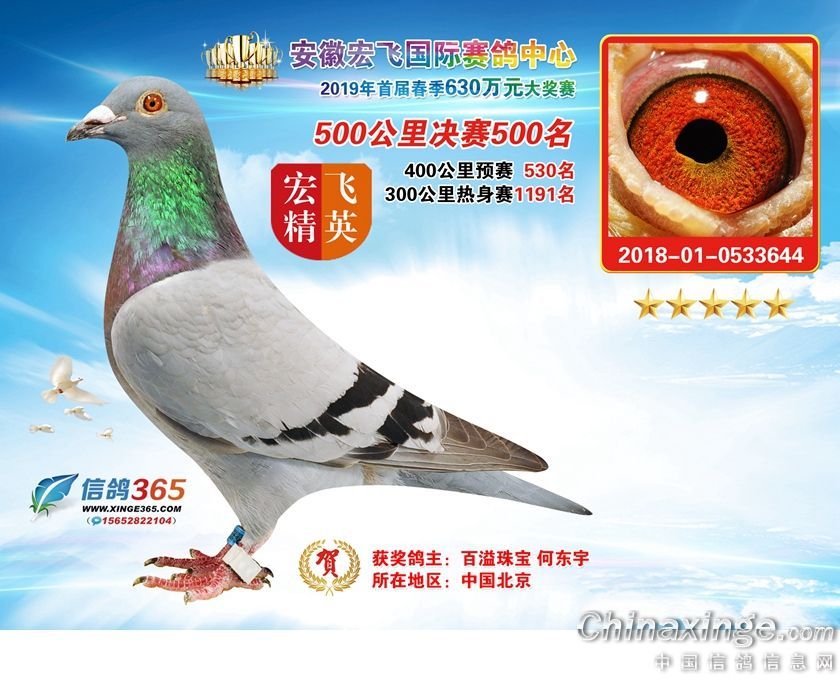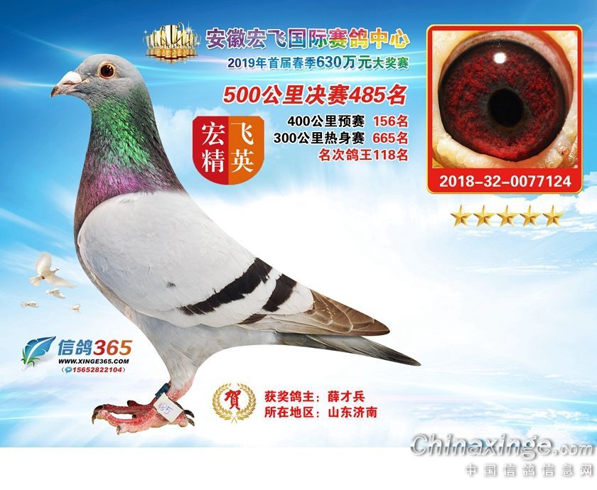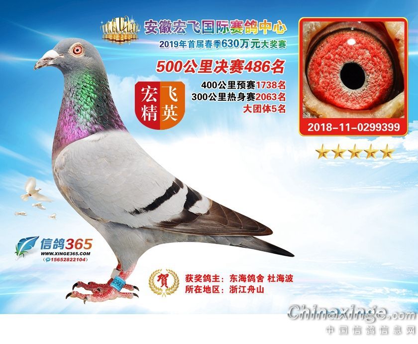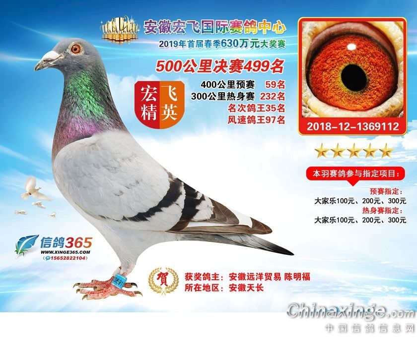 宏飞国际赛鸽中心2019年春棚获奖鸽481-500名
