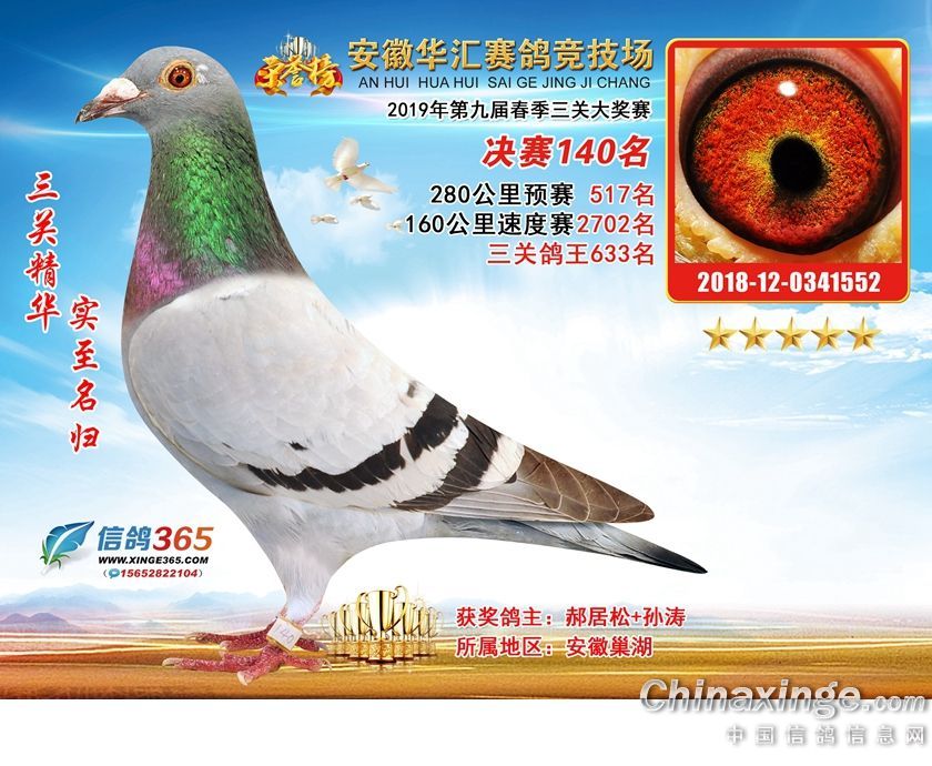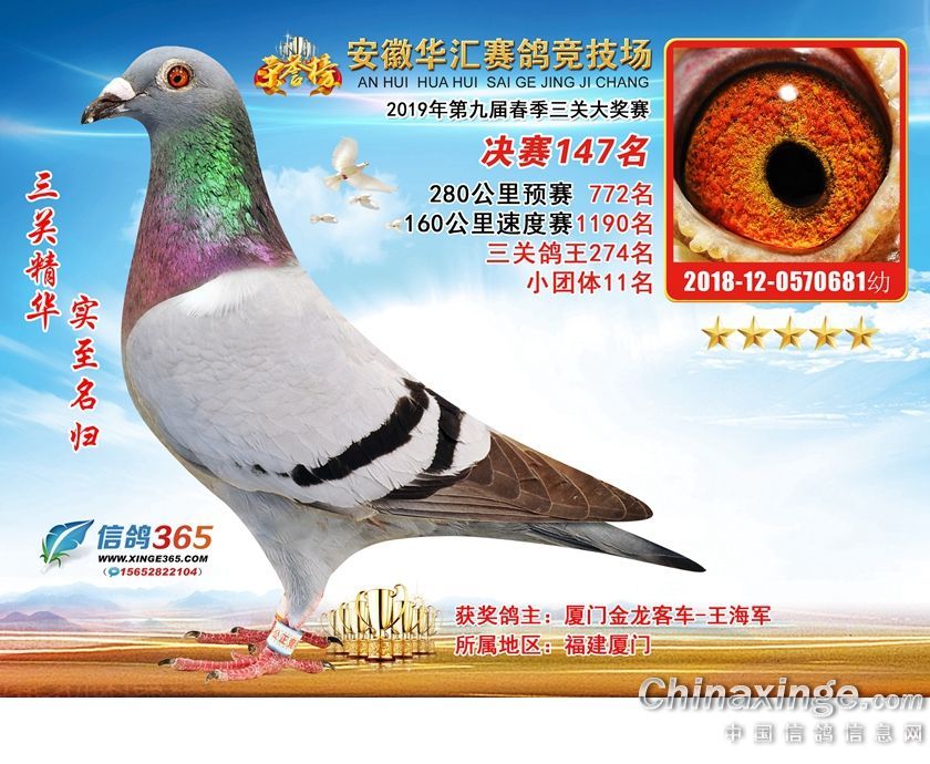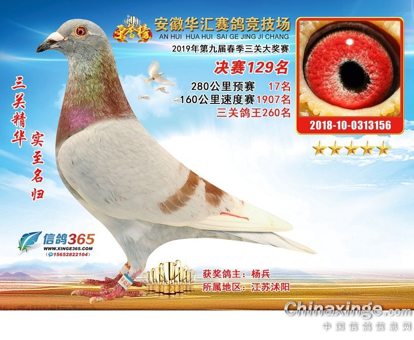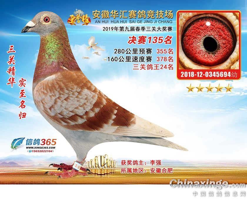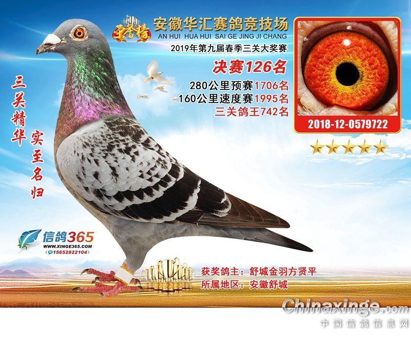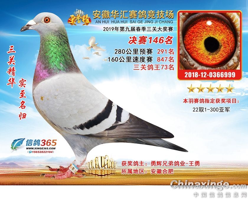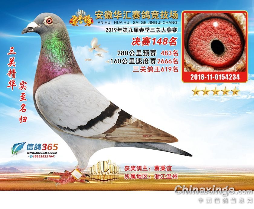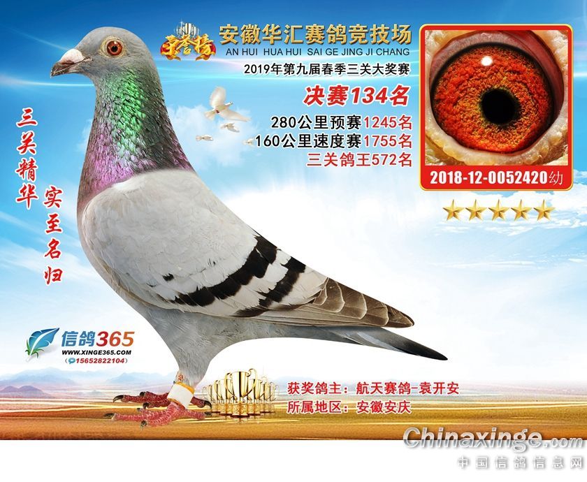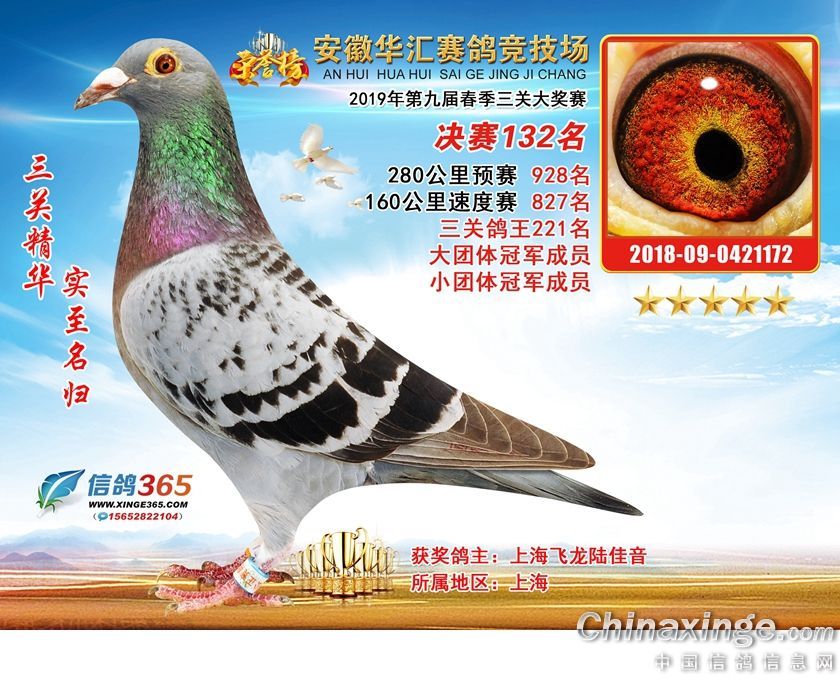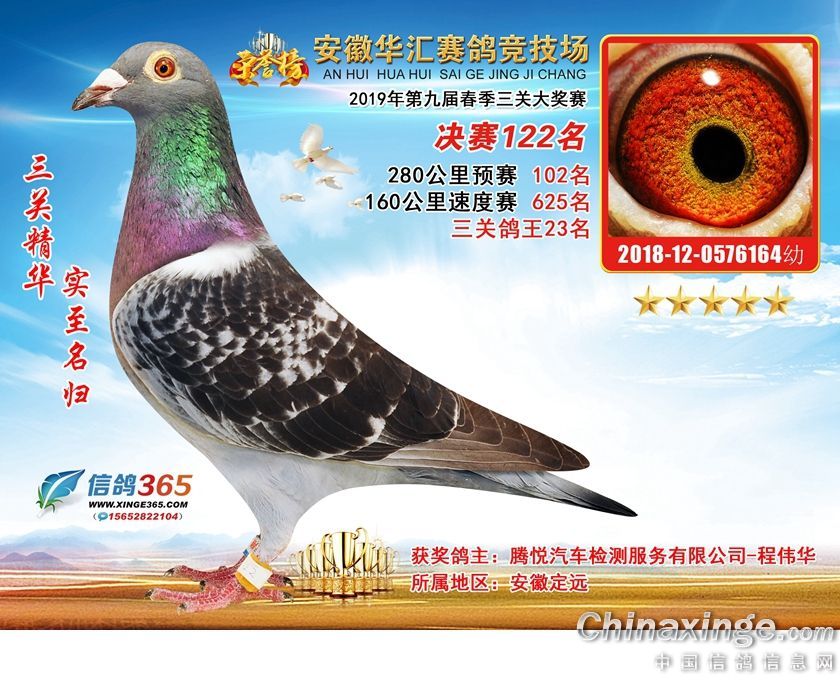 作品说明: 2019年安徽华汇赛鸽竞技场获奖鸽121-150名