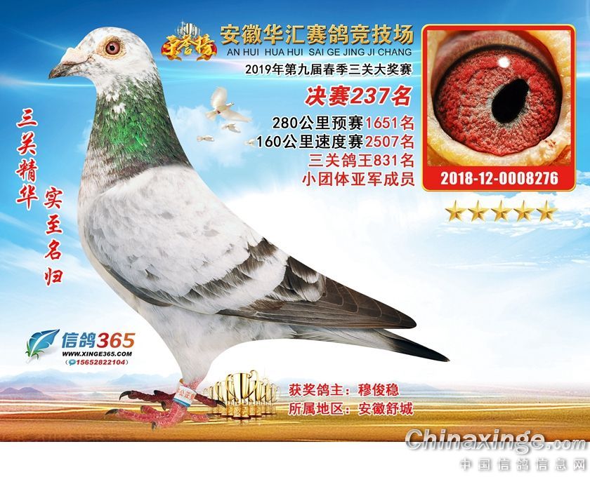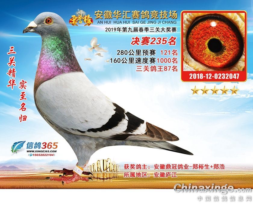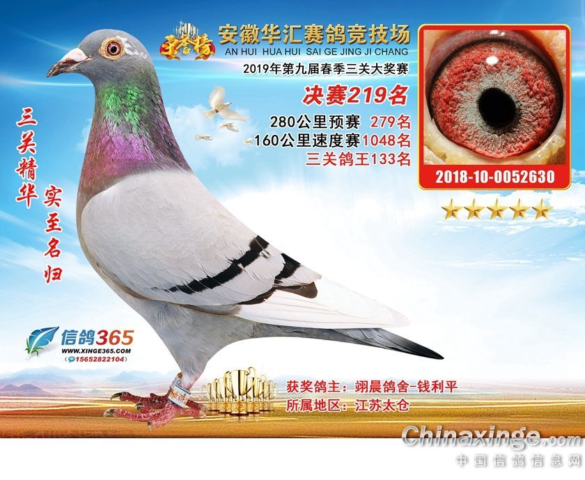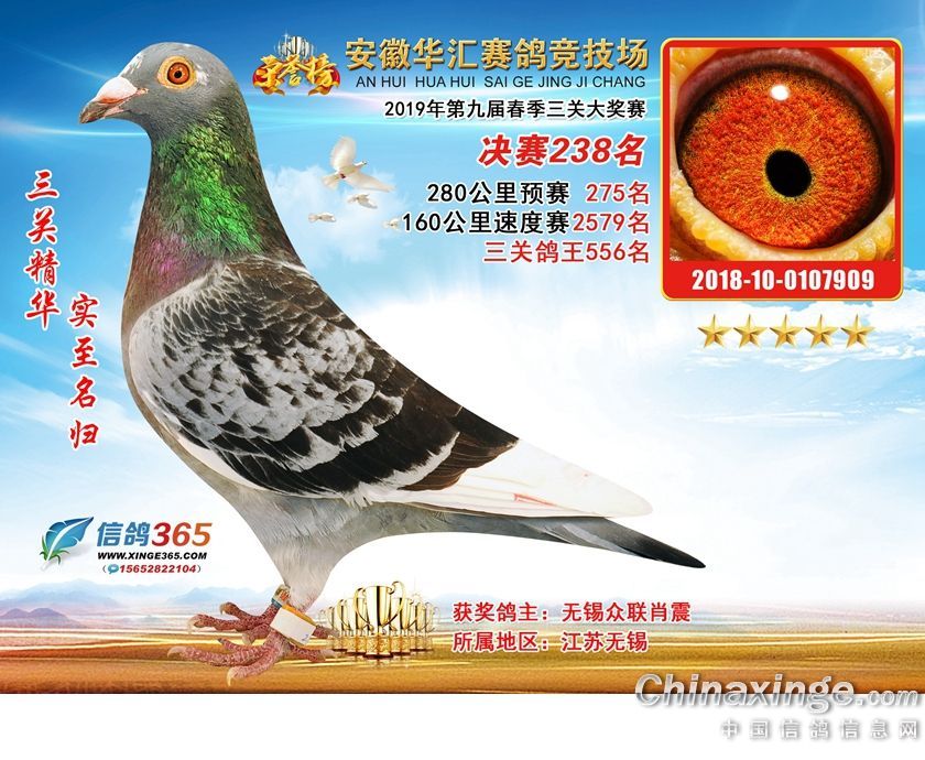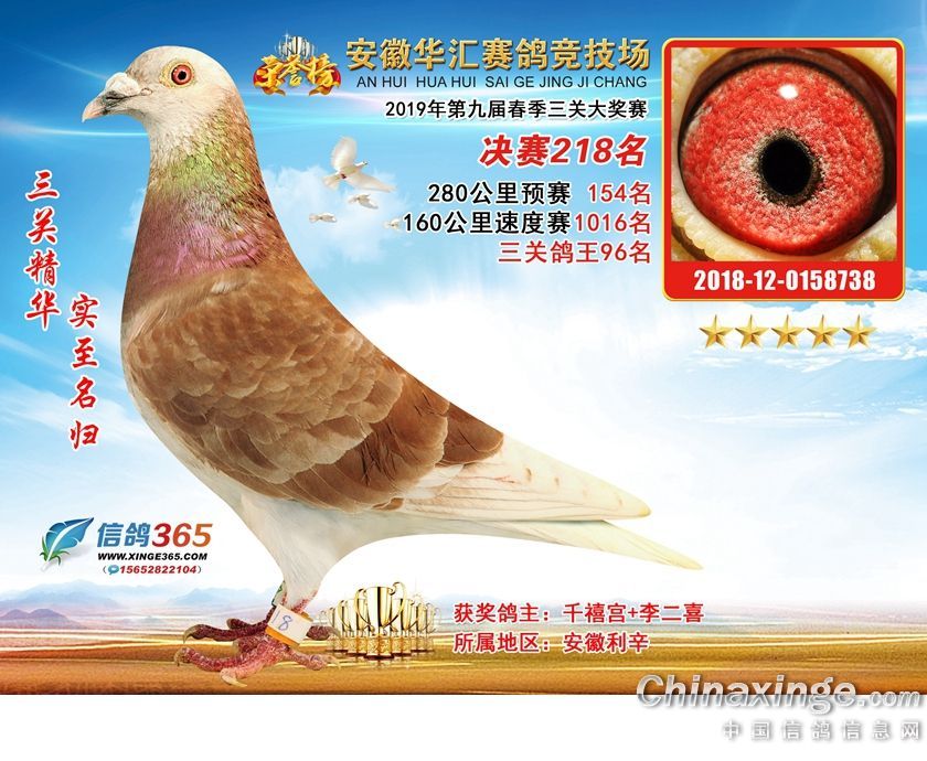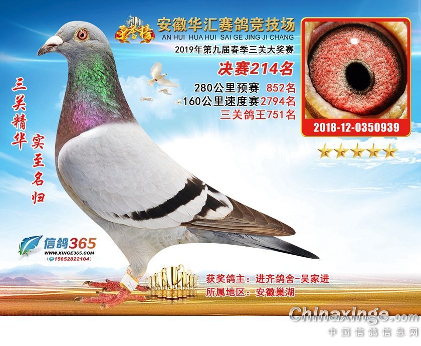 作品说明: 2019年安徽华汇赛鸽竞技场获奖鸽211-240名